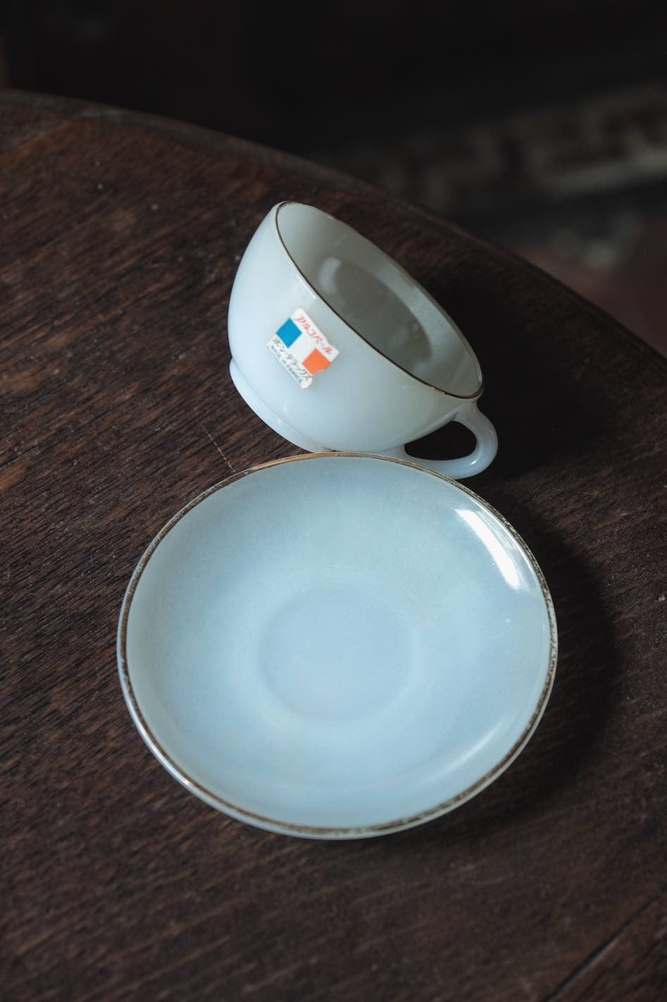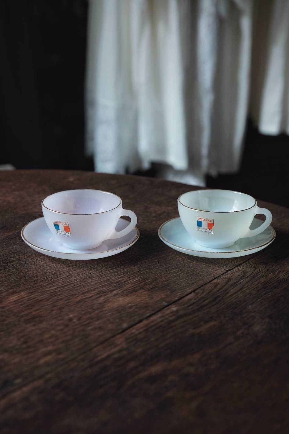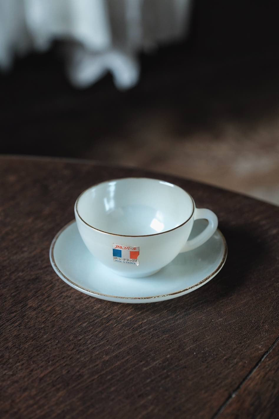 法國製• Arcopal 蛋白石奶玻璃咖啡杯碟 (140ml)