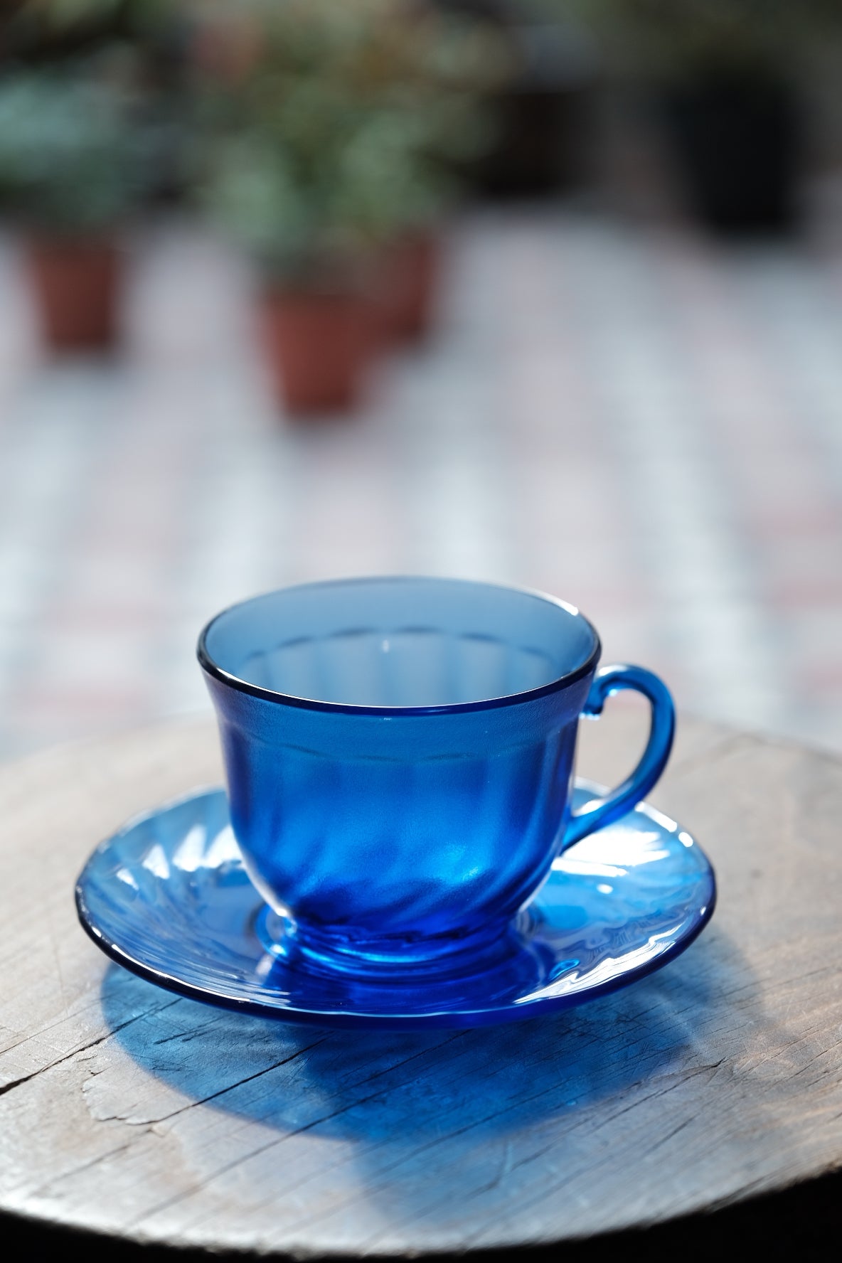 法國製• Arcoroc klein blue磨砂玻璃咖啡杯碟 (210ml)