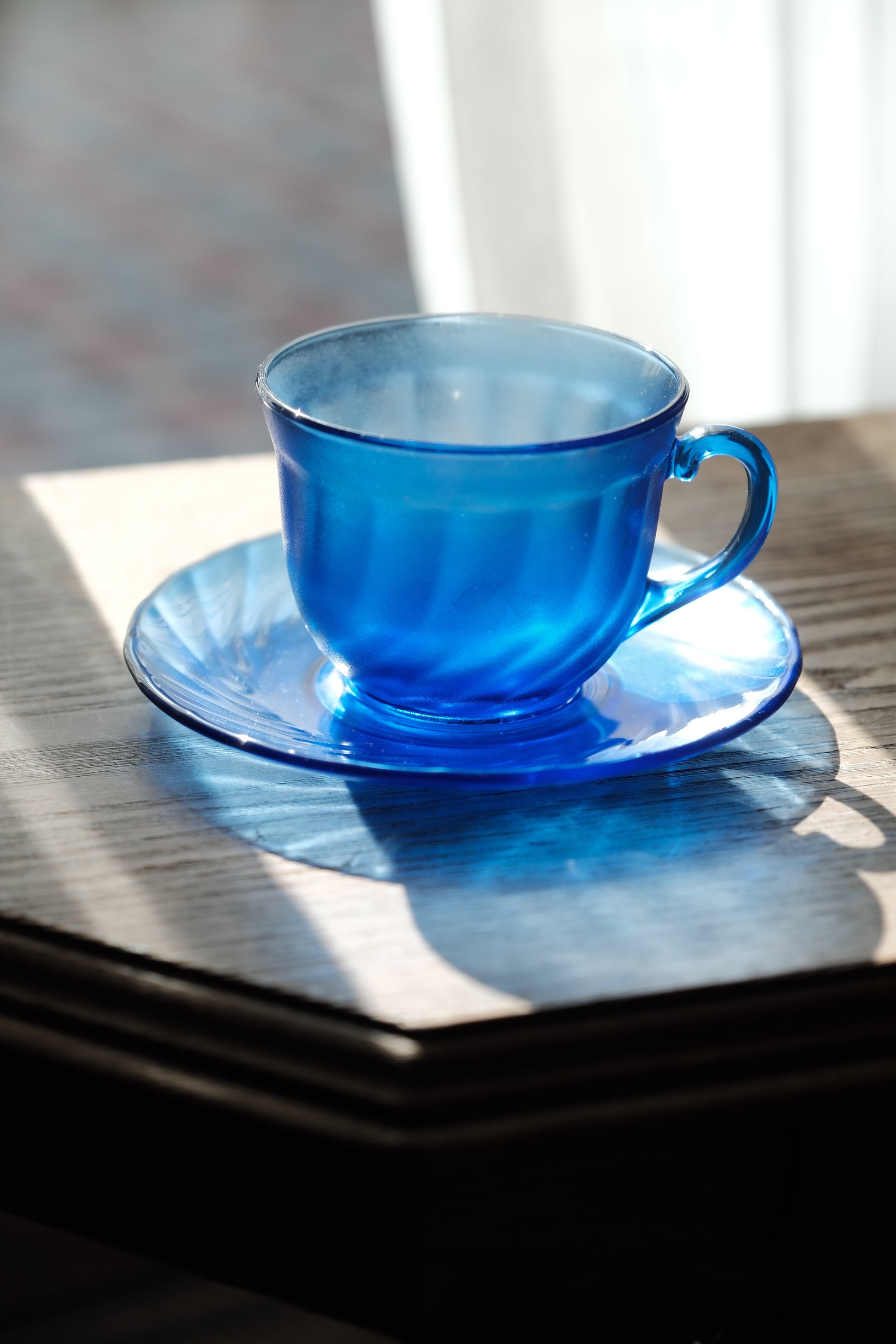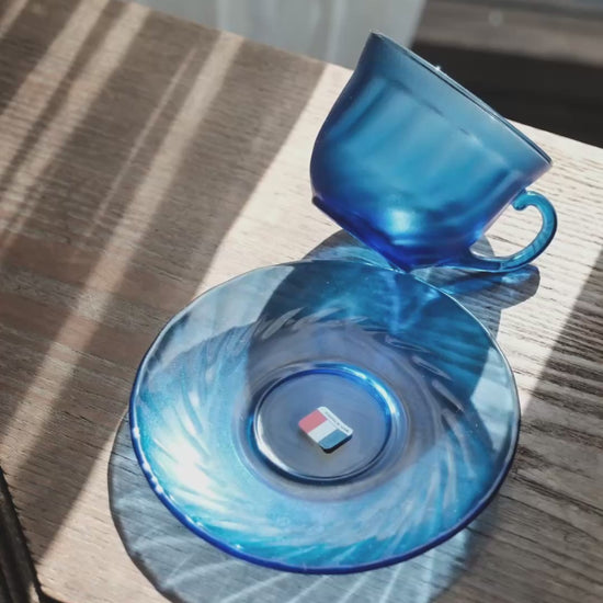 法國製• Arcoroc klein blue磨砂玻璃咖啡杯碟 (210ml)