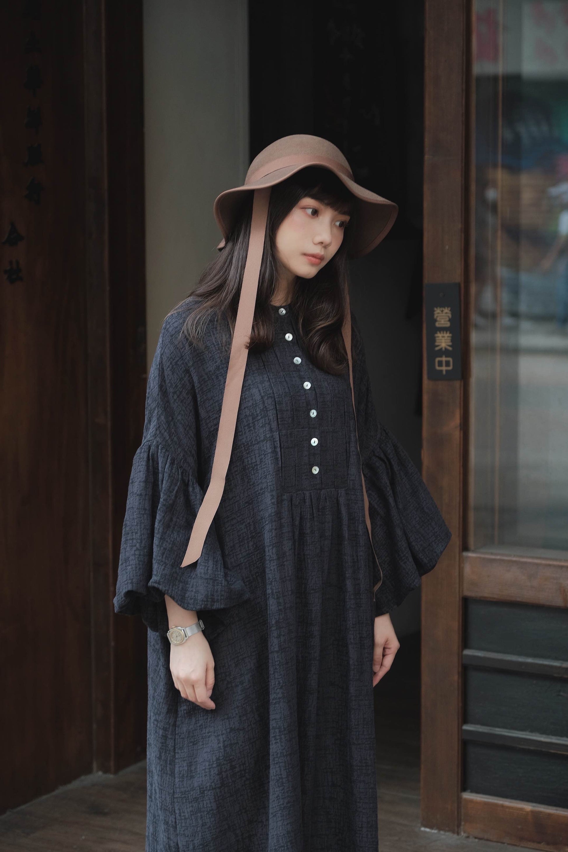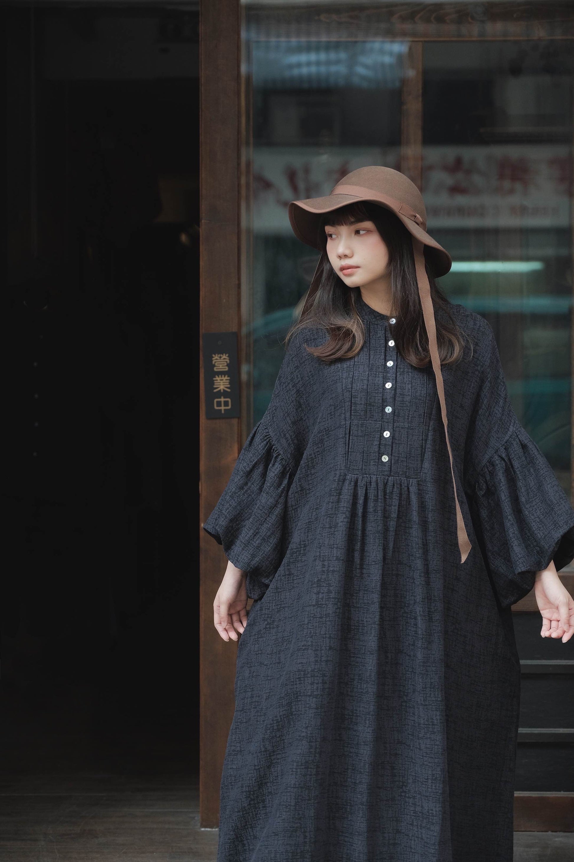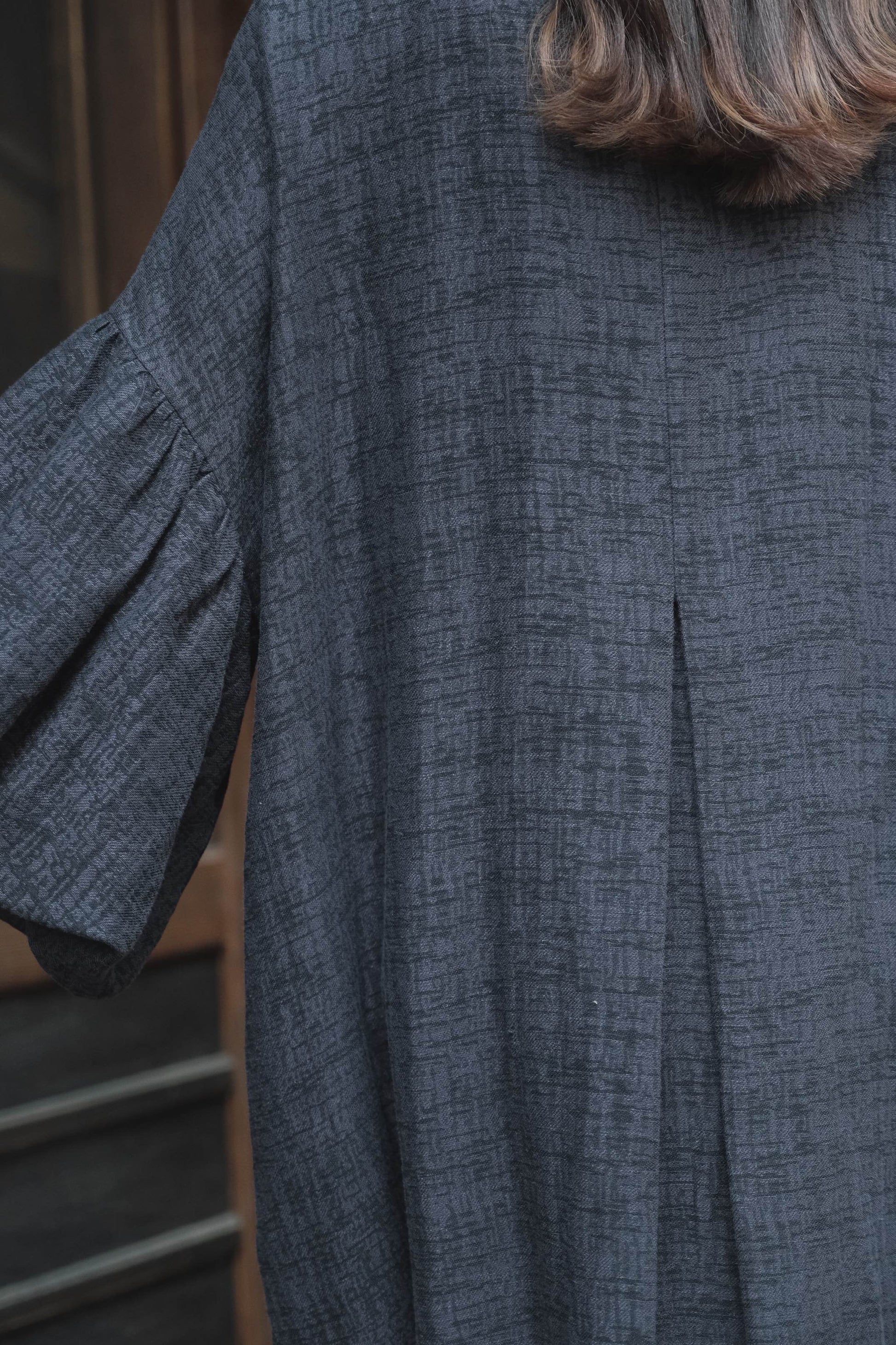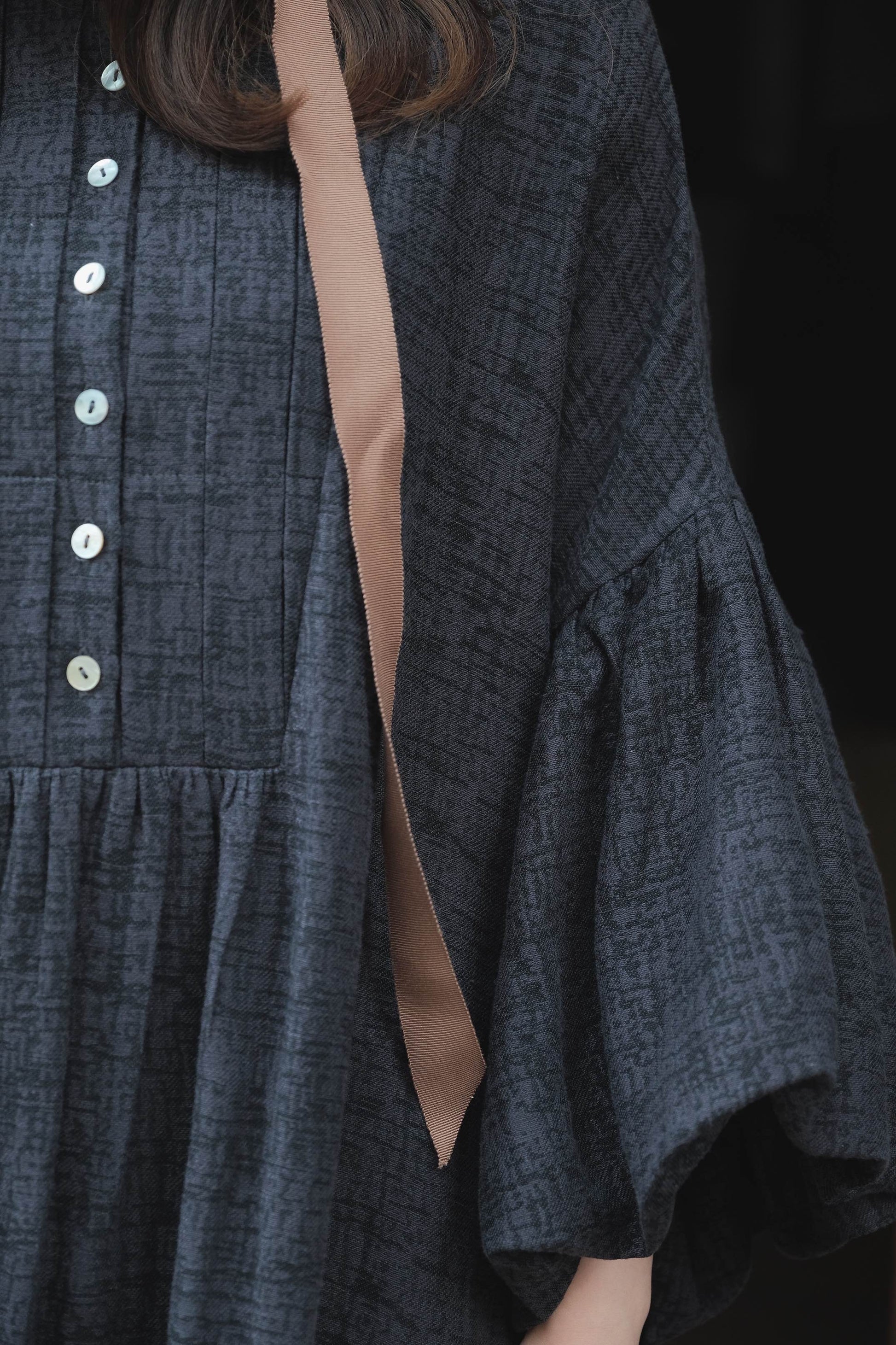 落肩設計,大泡袖風琴摺,中腰碎摺