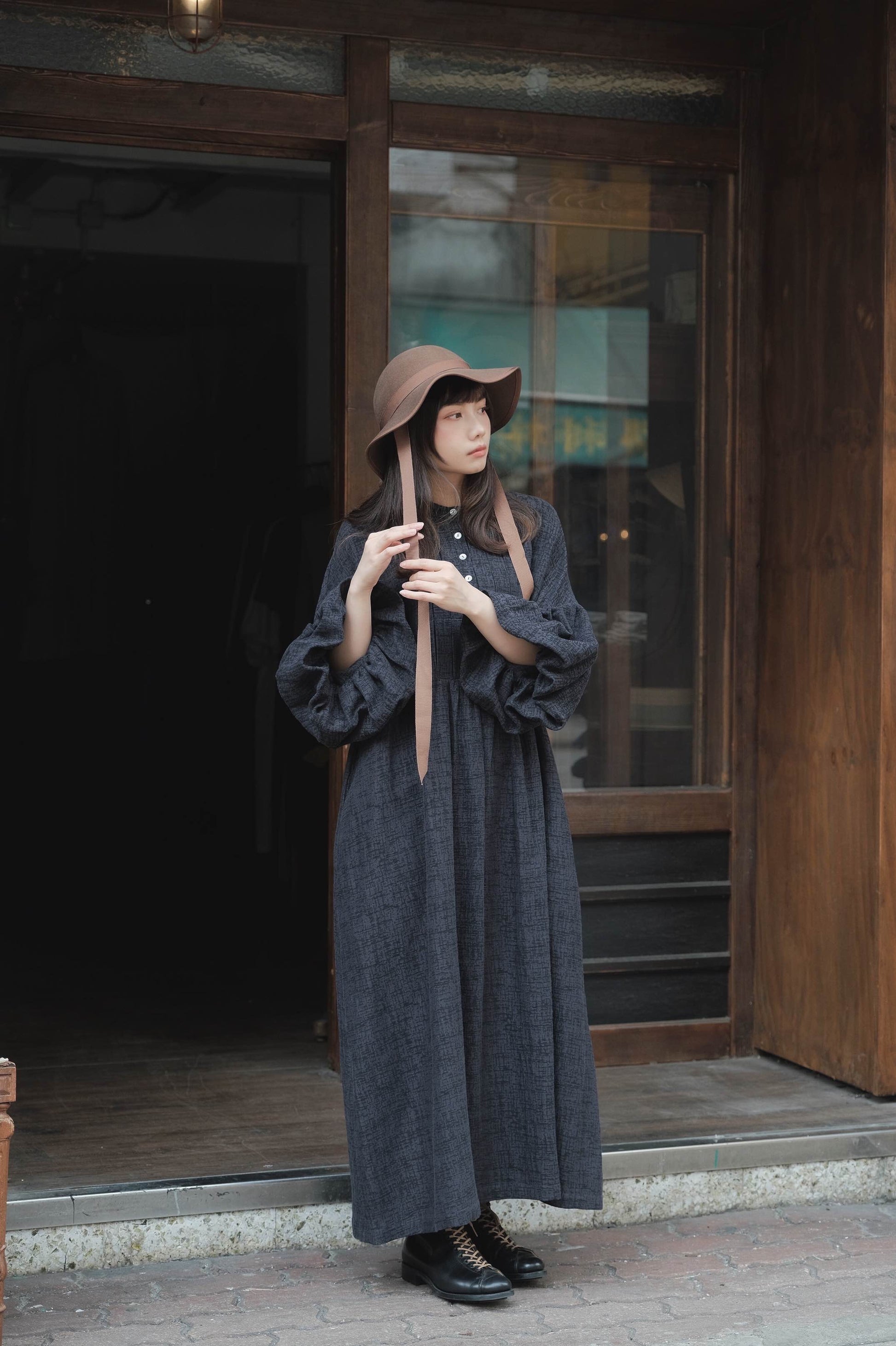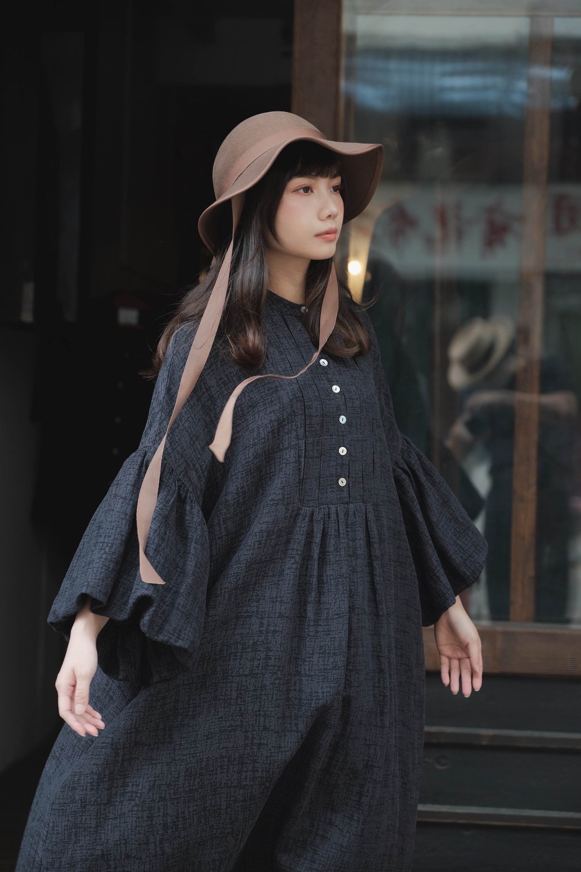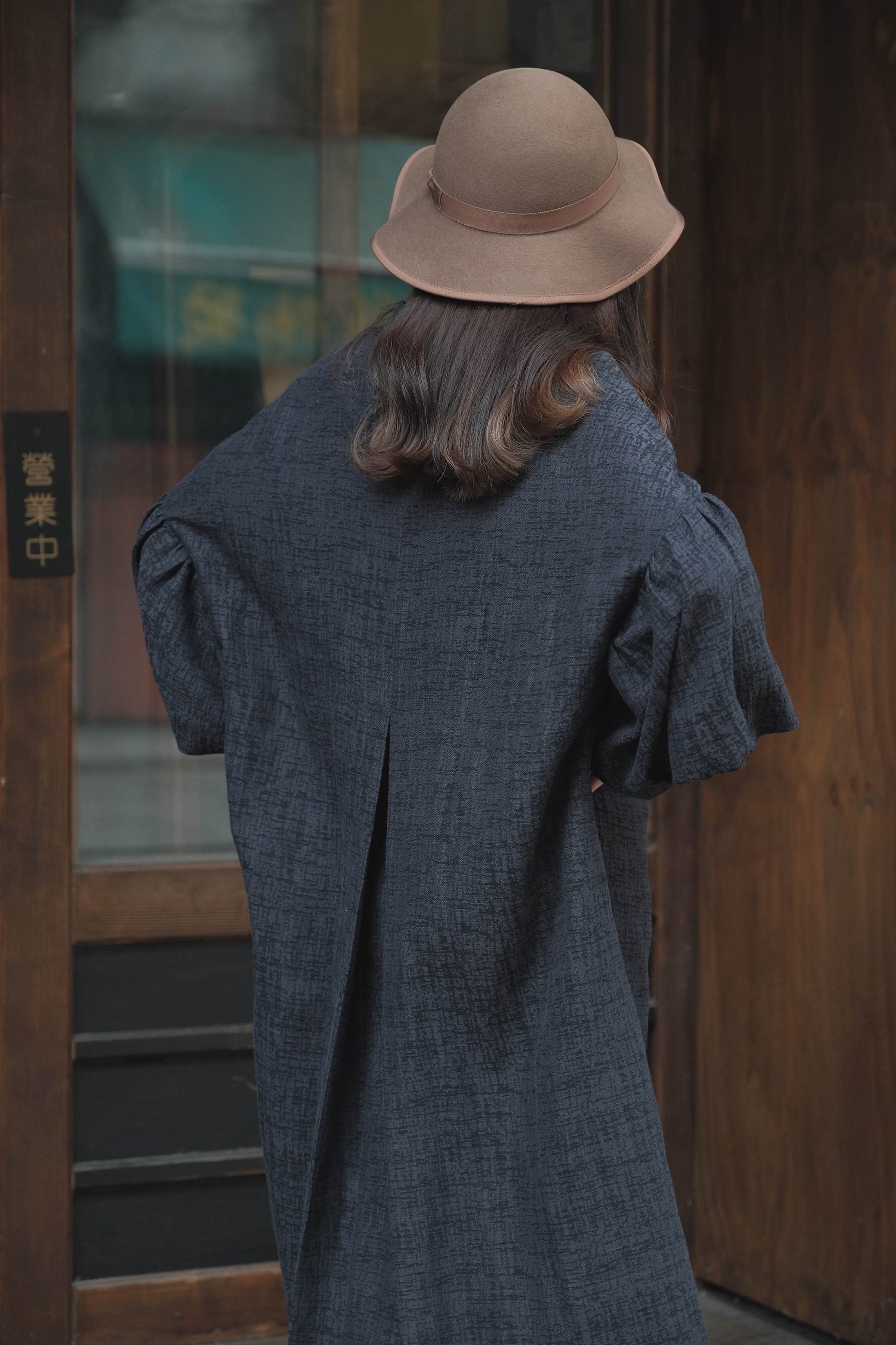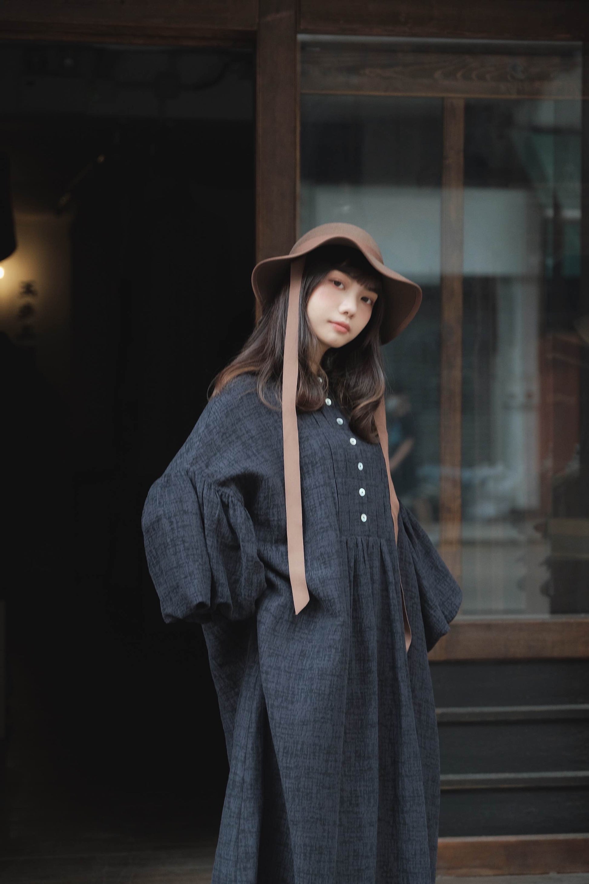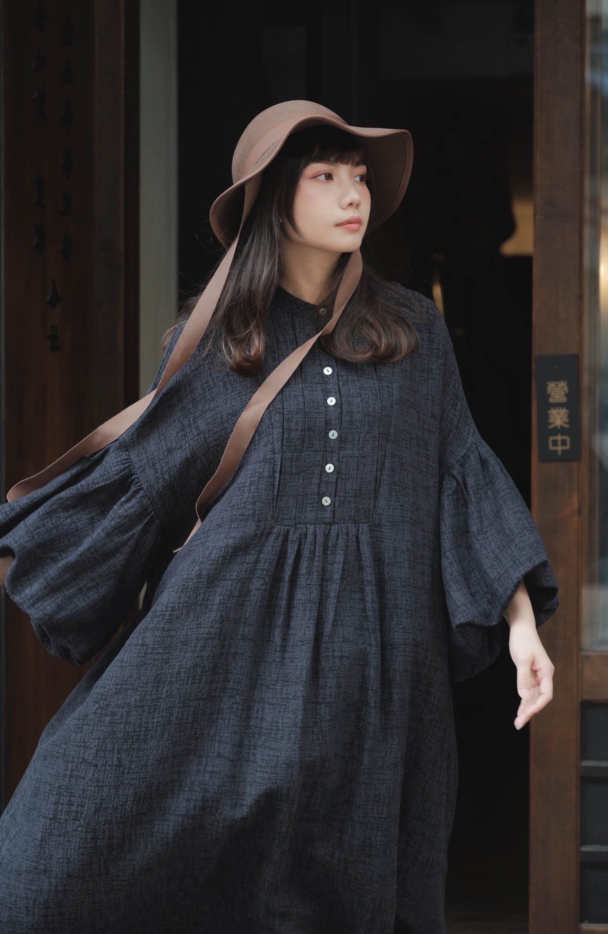 落肩設計,大泡袖風琴摺,中腰碎摺