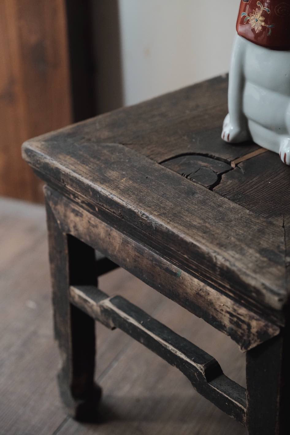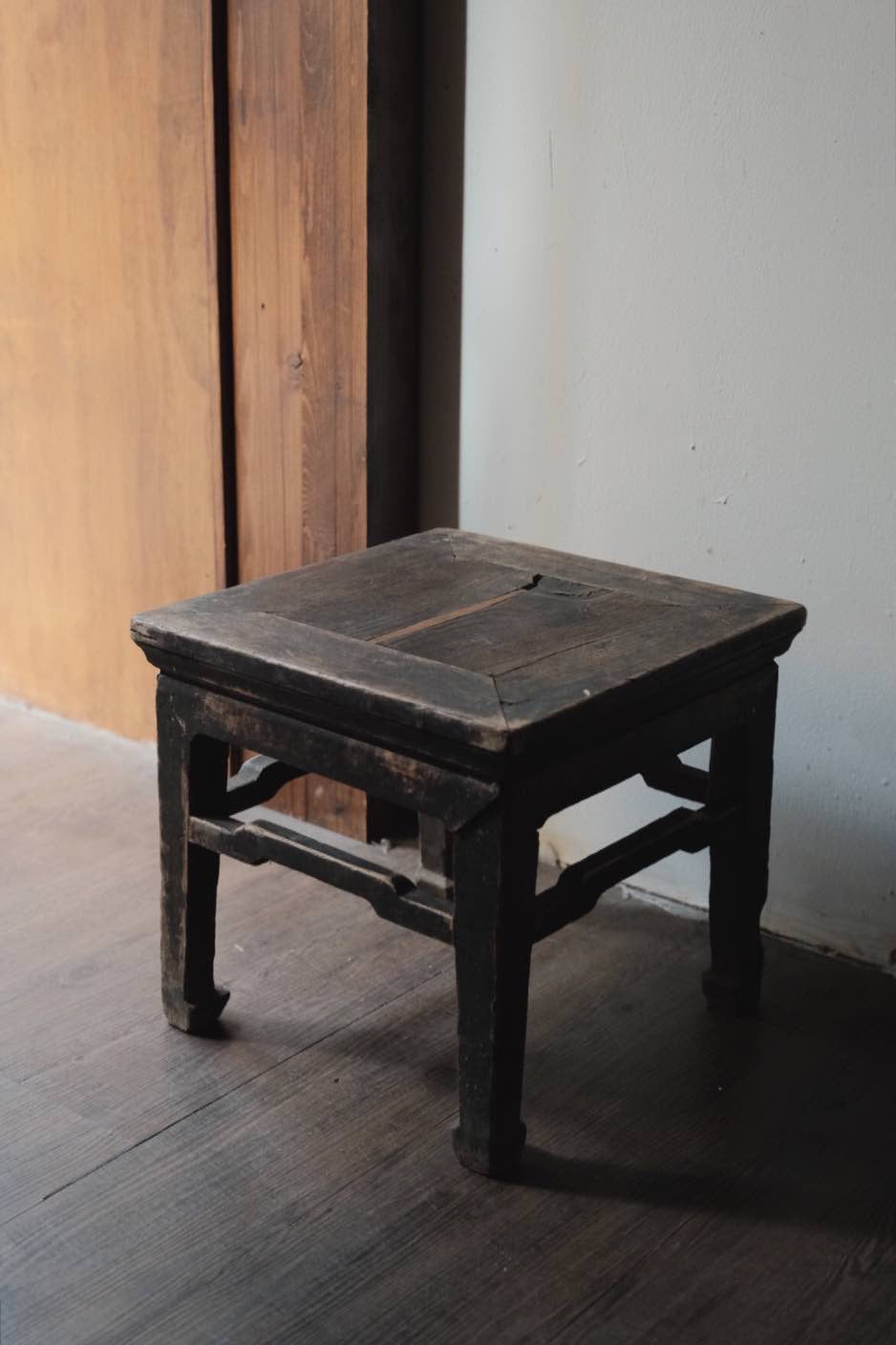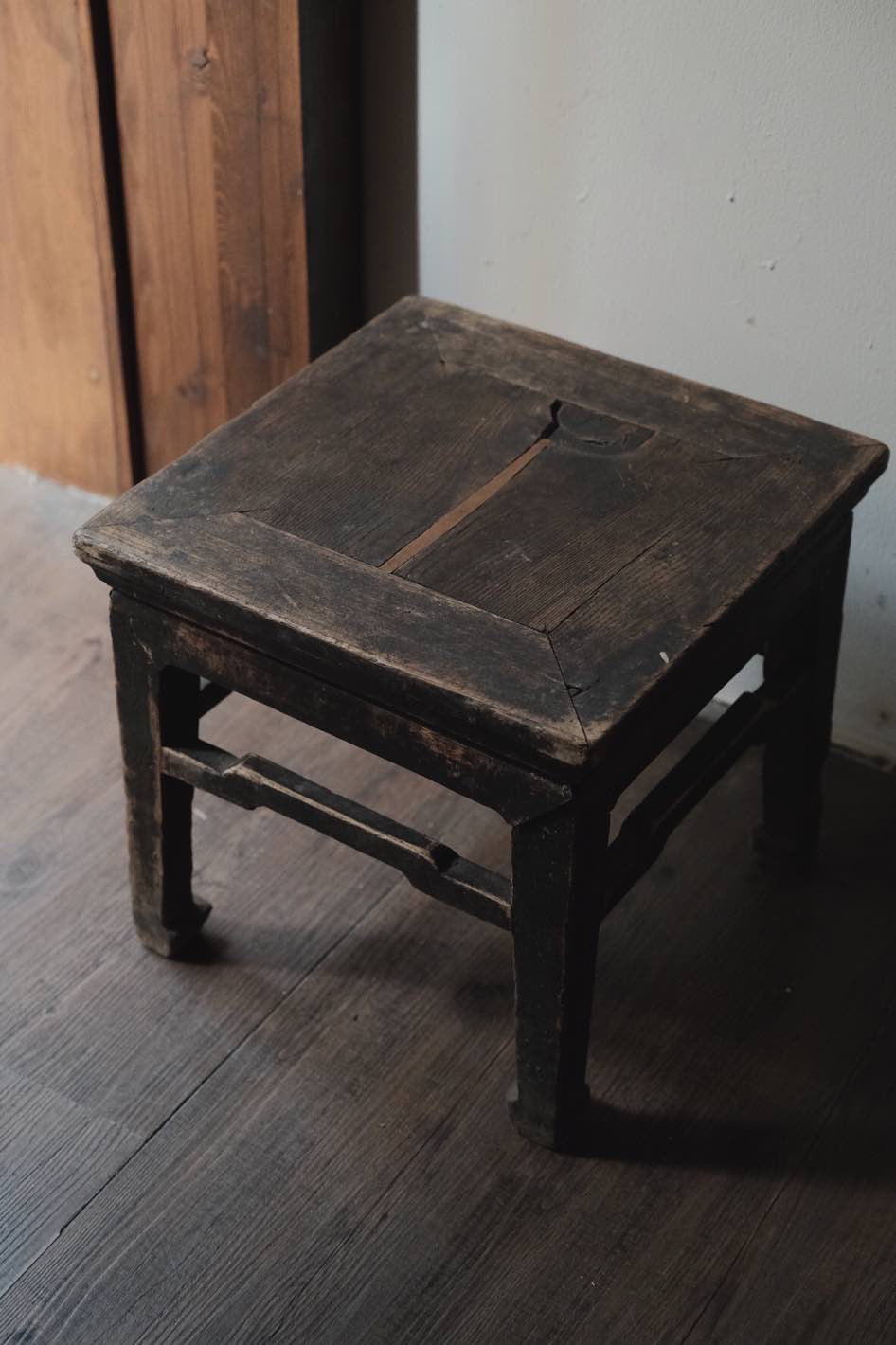 結實穩固,面板為櫸木,束足為柳安木,花盆架或者底座都可或直接用做矮凳使用,面板有修補痕跡。