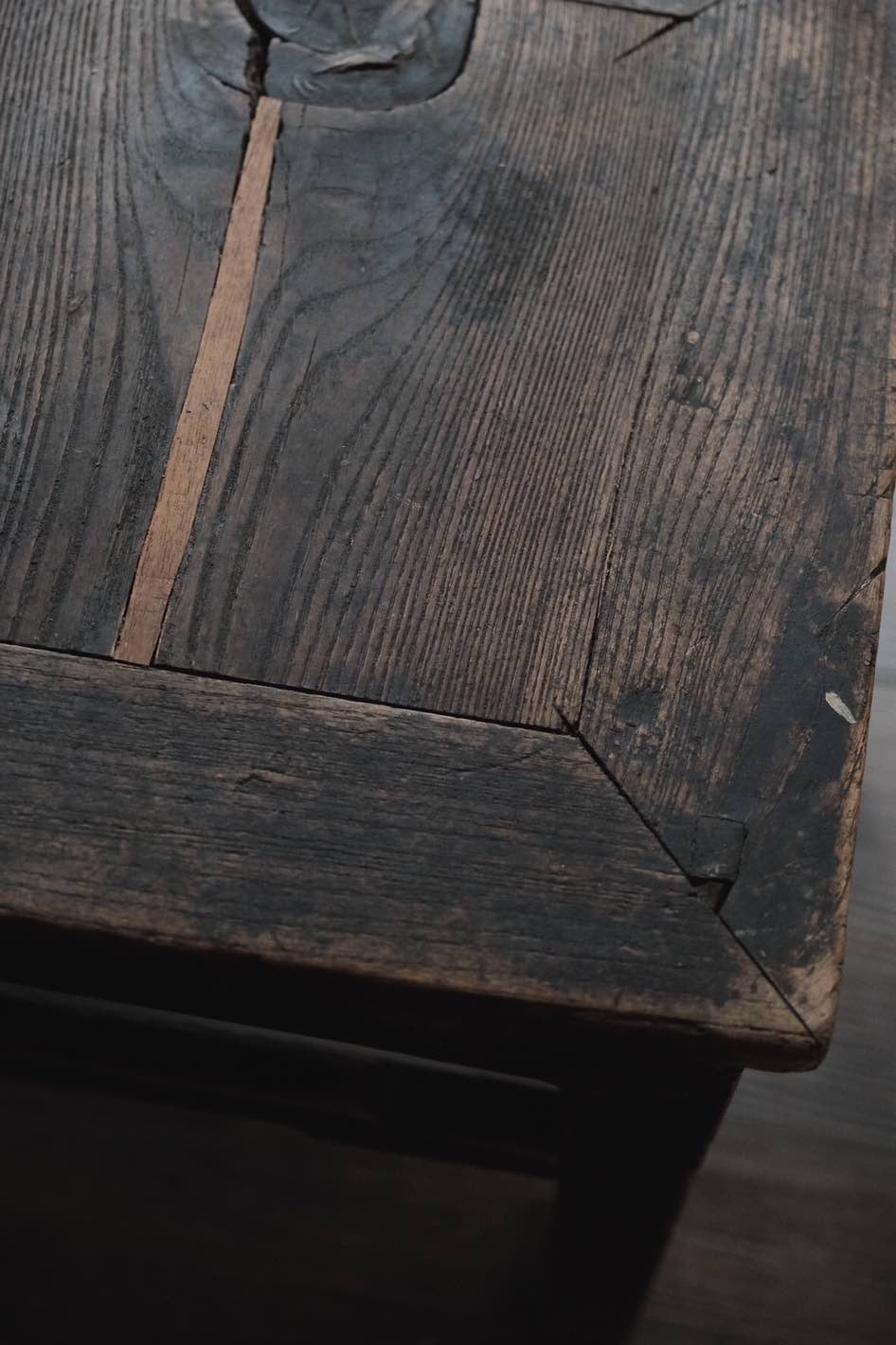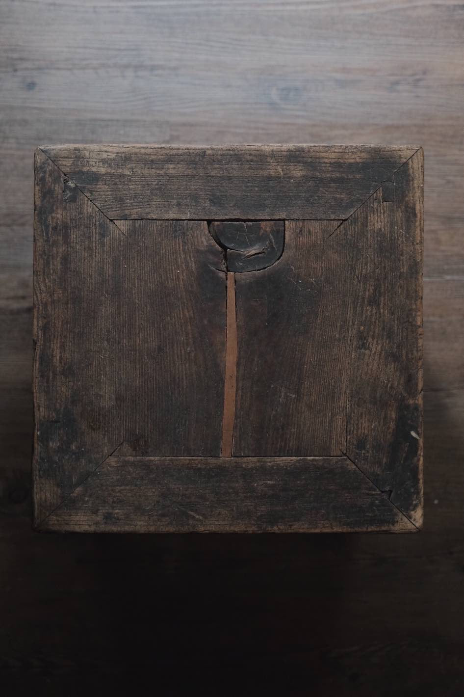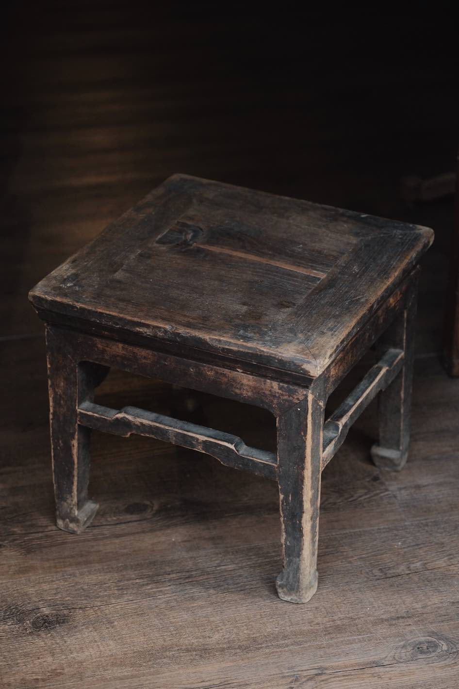 結實穩固,面板為櫸木,束足為柳安木,花盆架或者底座都可或直接用做矮凳使用,面板有修補痕跡。