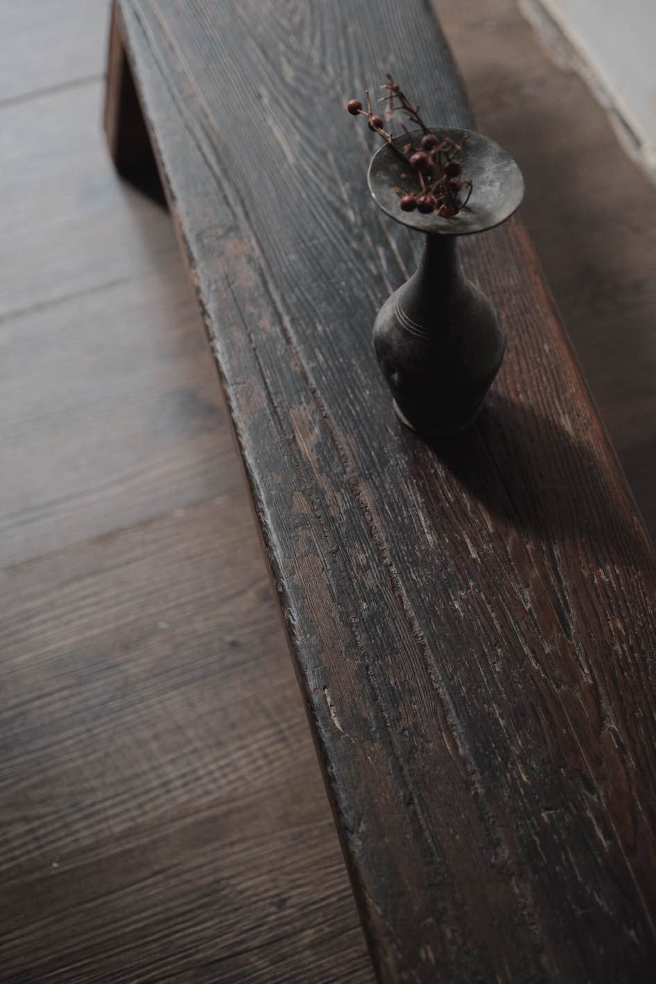 整體形制規整,木板厚實,穩固可立即便用,可攞花盤配景。四腿有打磨痕跡。