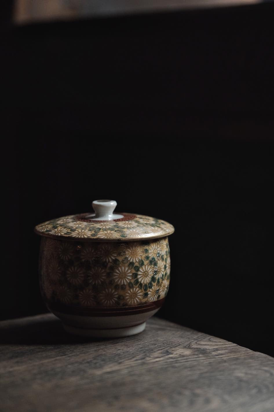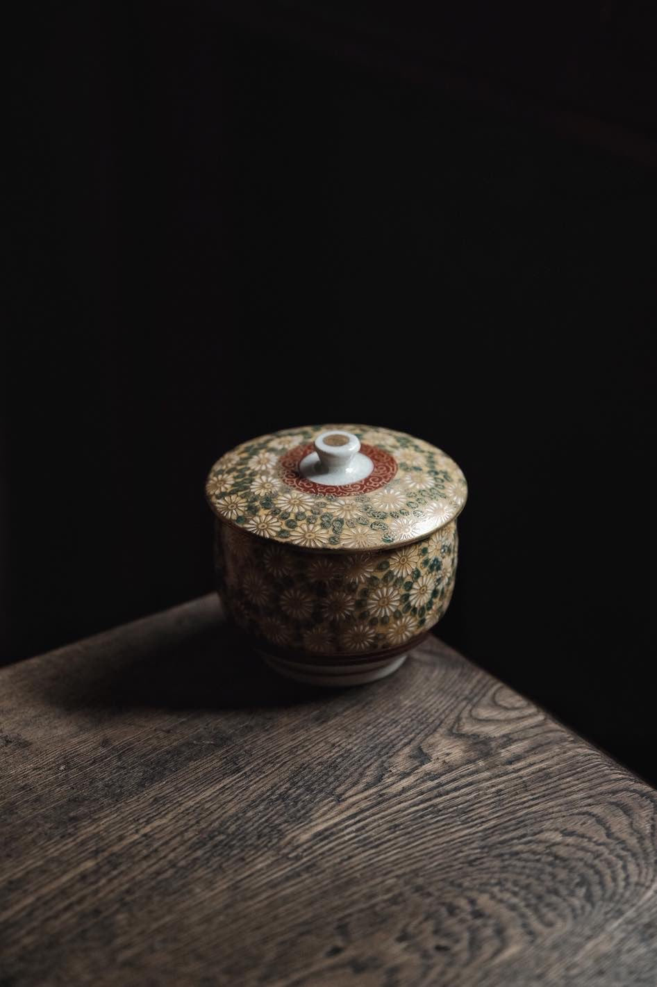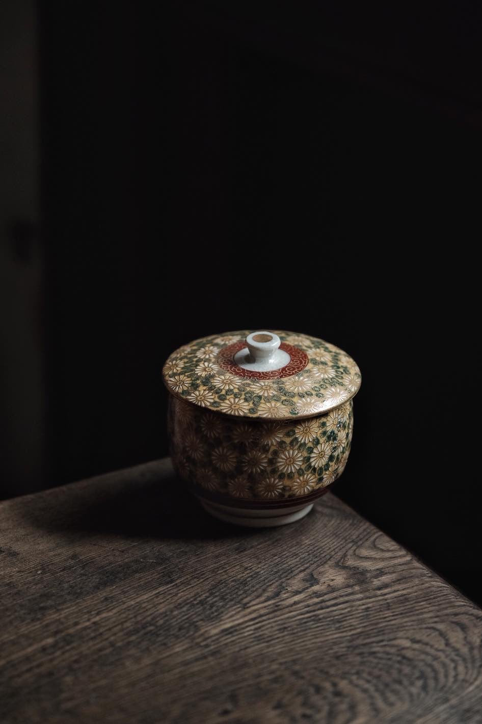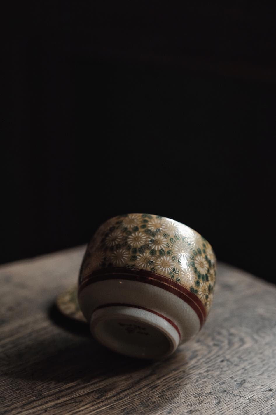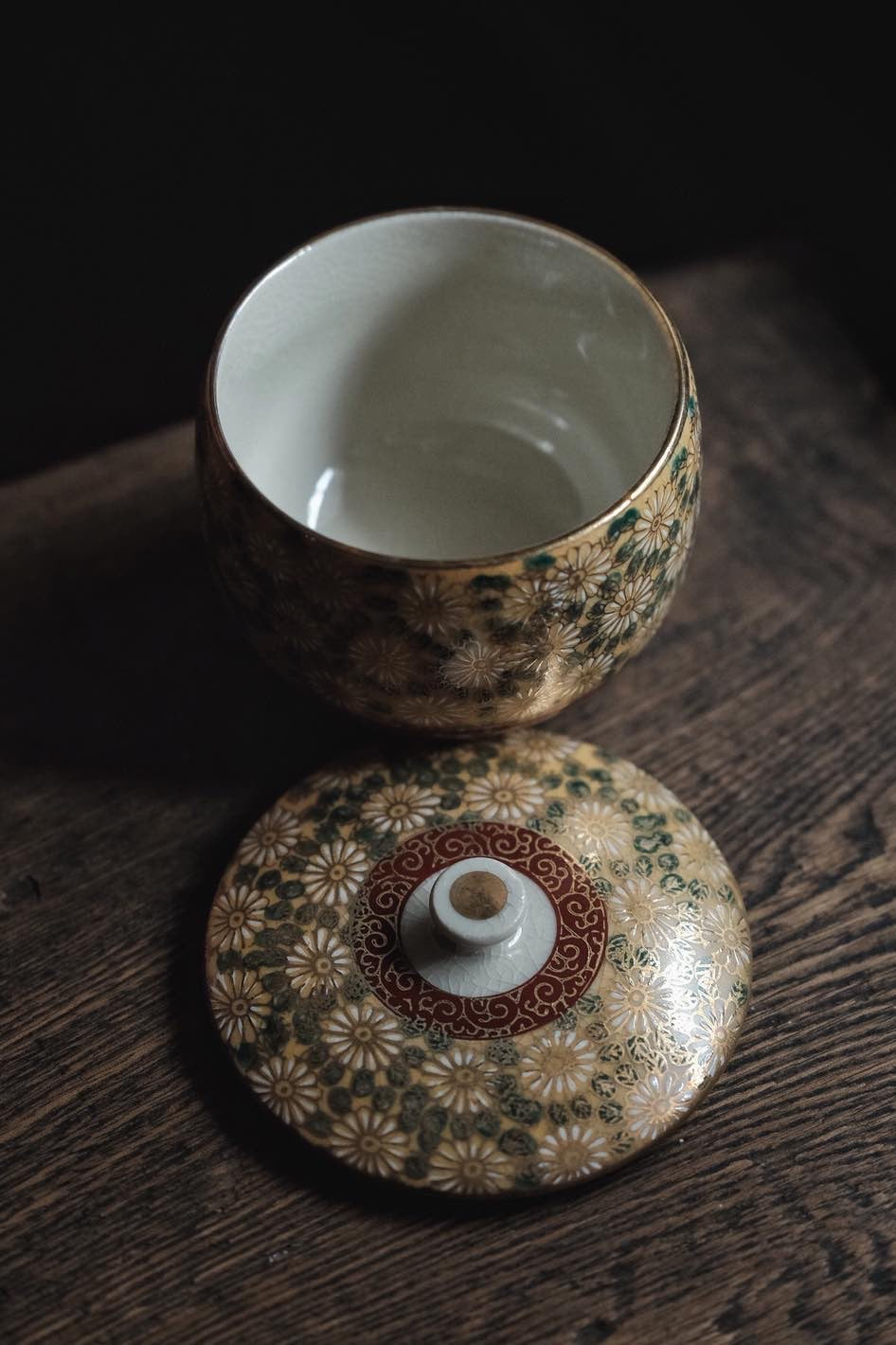 日本九谷燒百花不落地赤繪描金蓋杯(180ml)