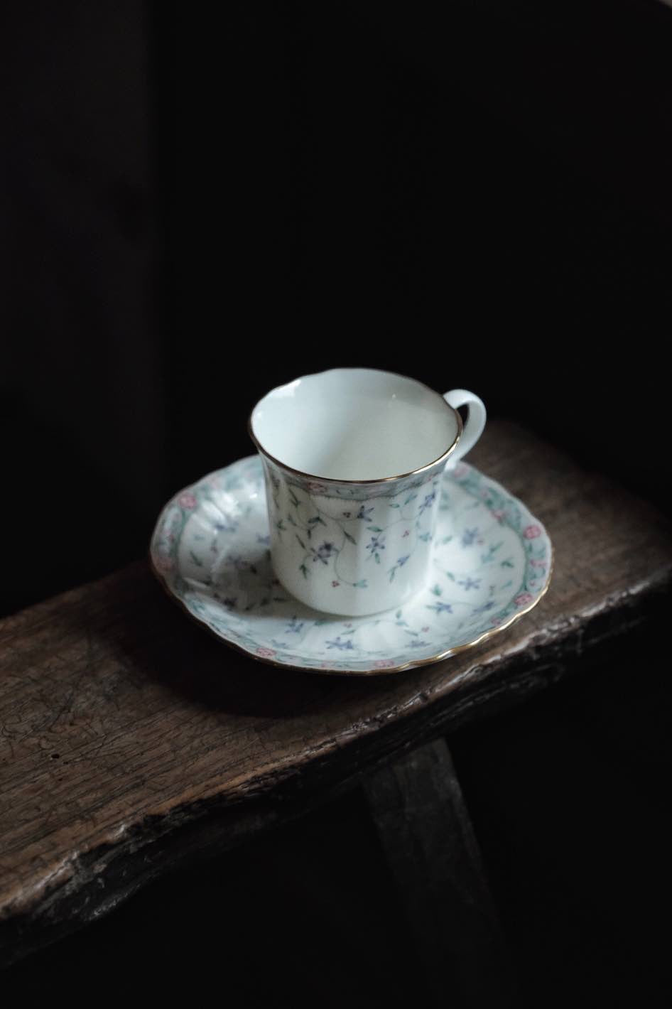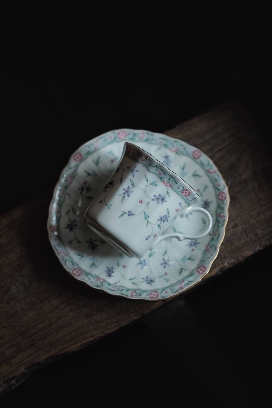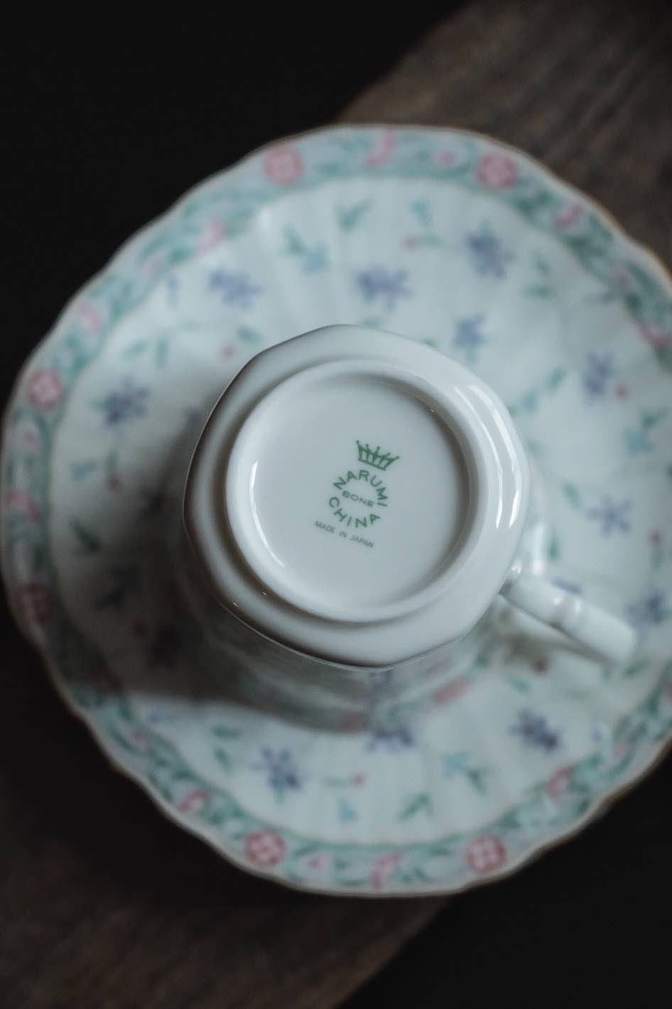日本製嗚海NARUMI 內繪花卉圖描金骨瓷杯連碟(190ml)