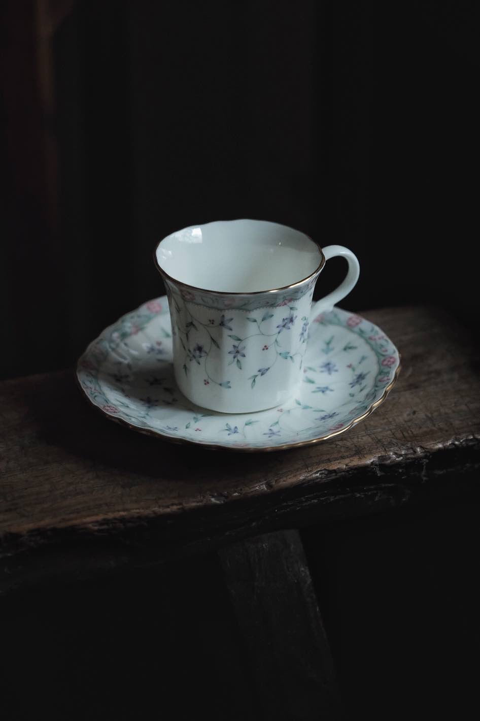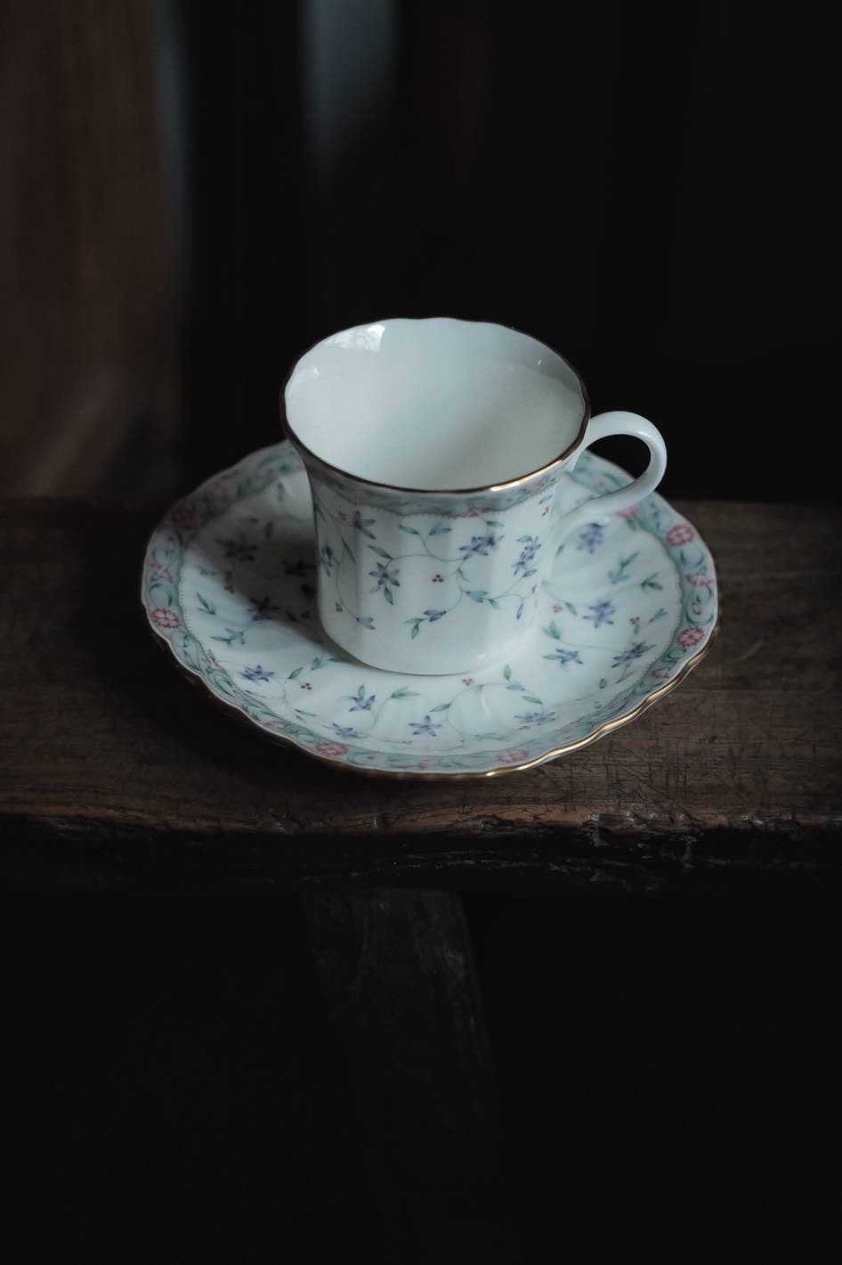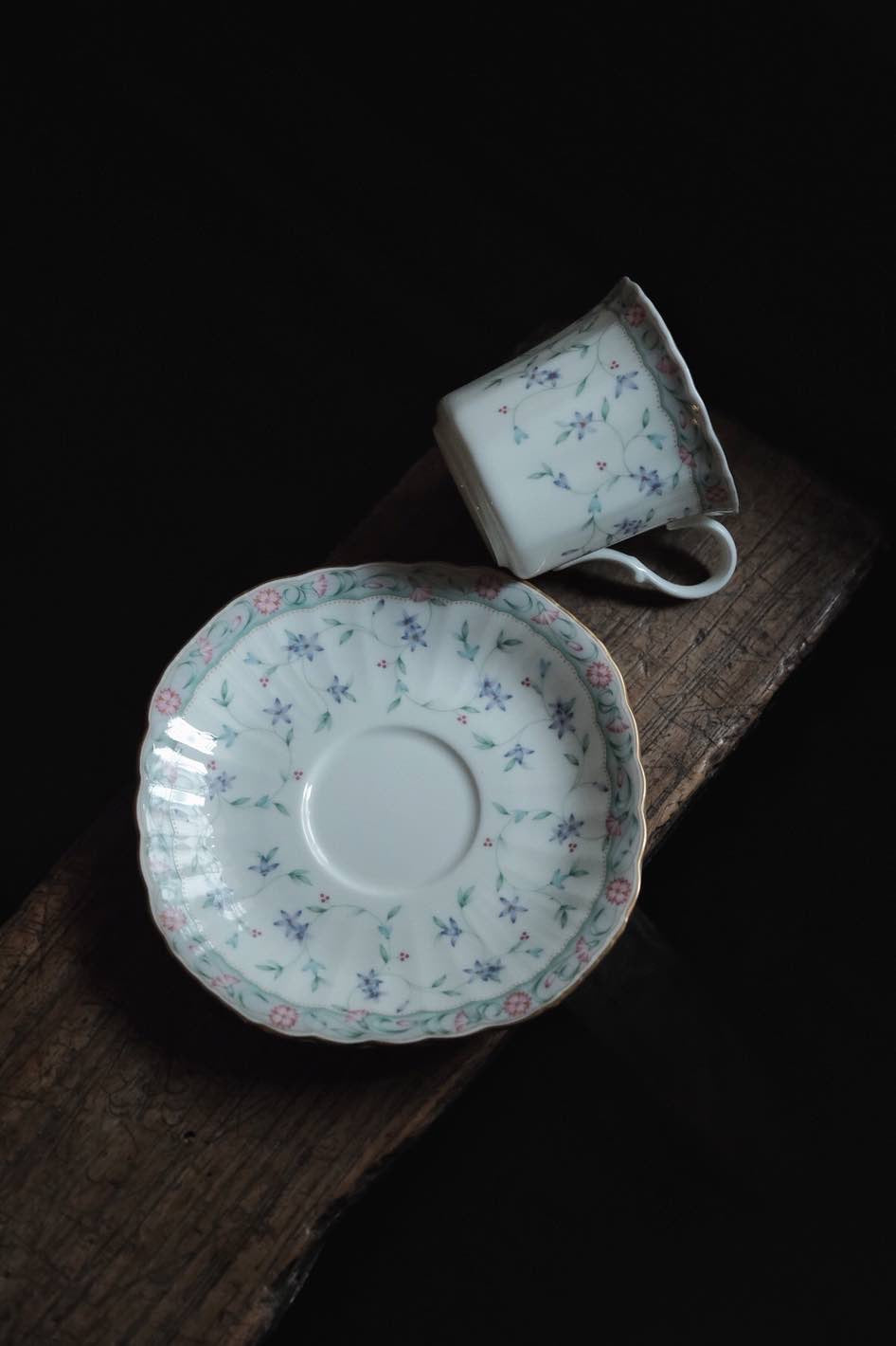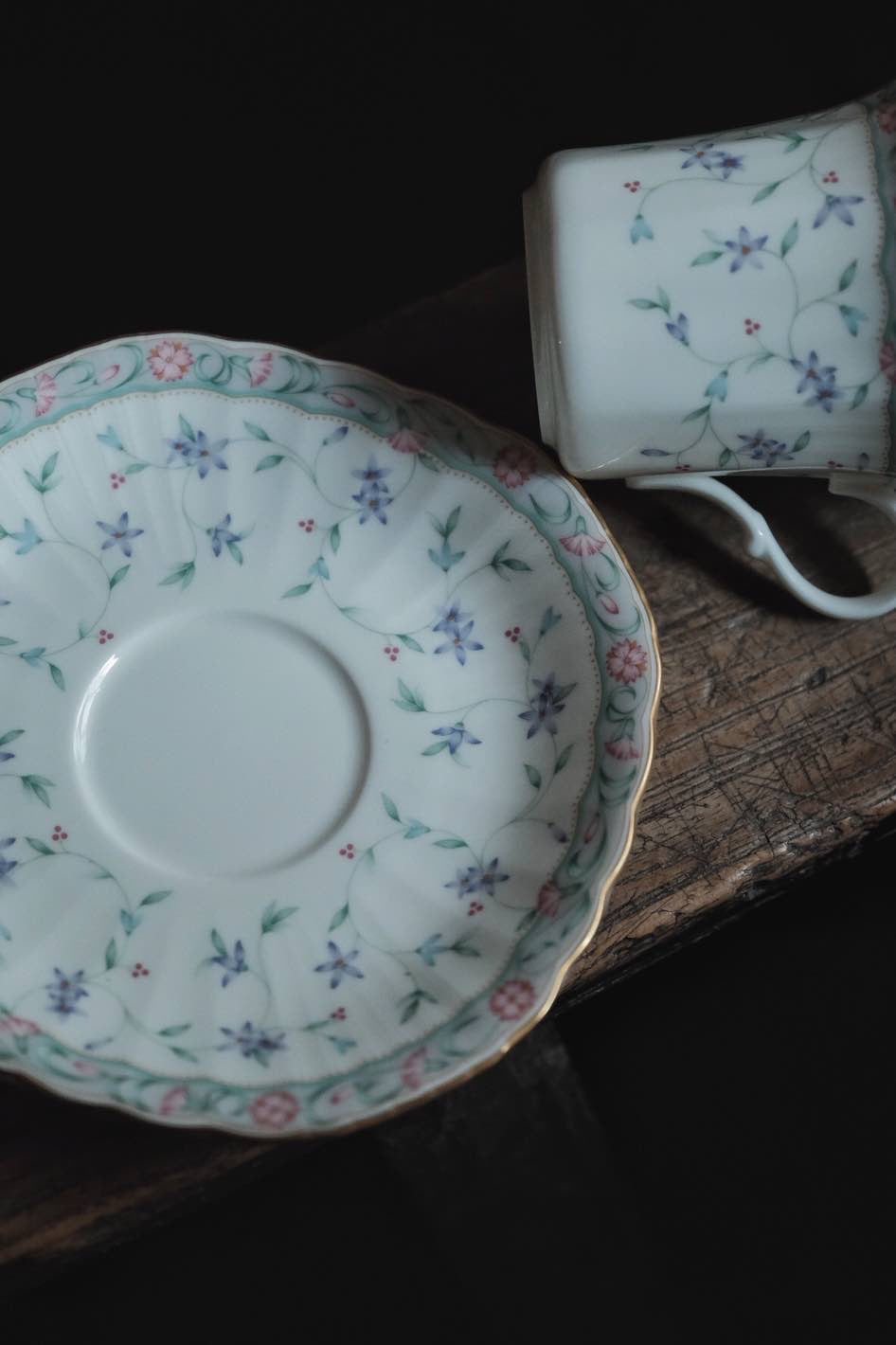 日本製嗚海NARUMI 內繪花卉圖描金骨瓷杯連碟(190ml)