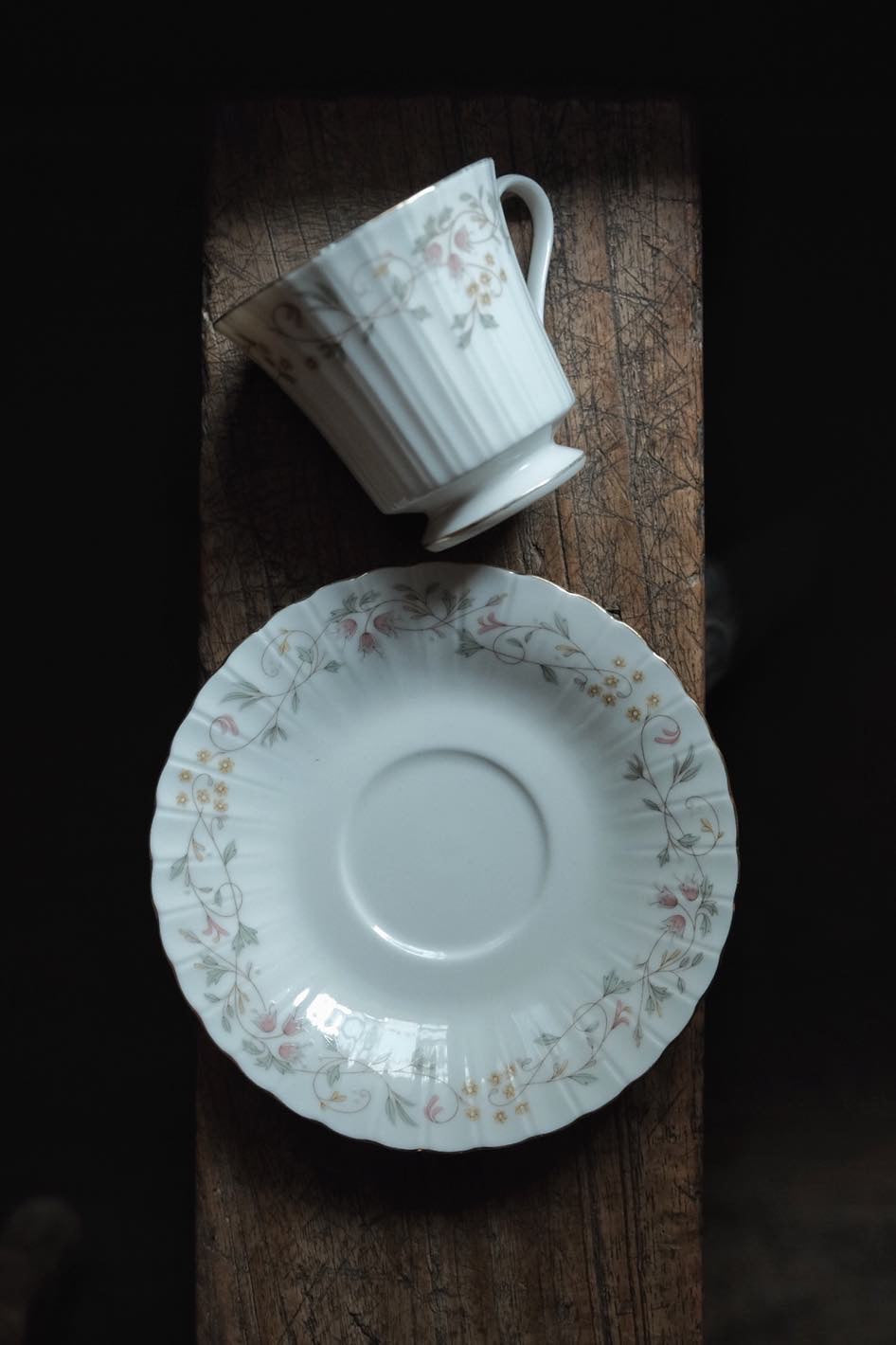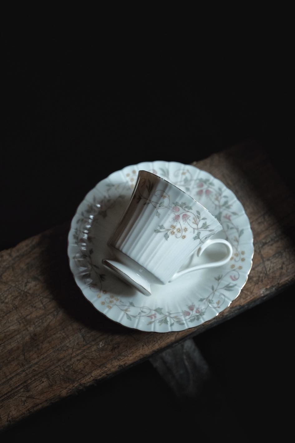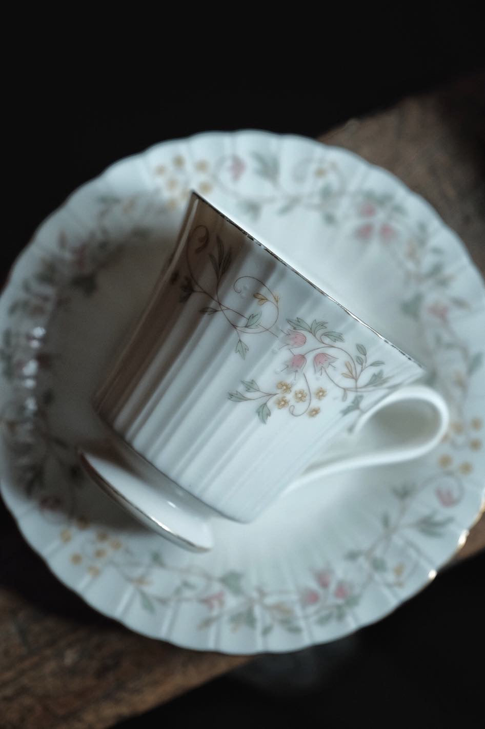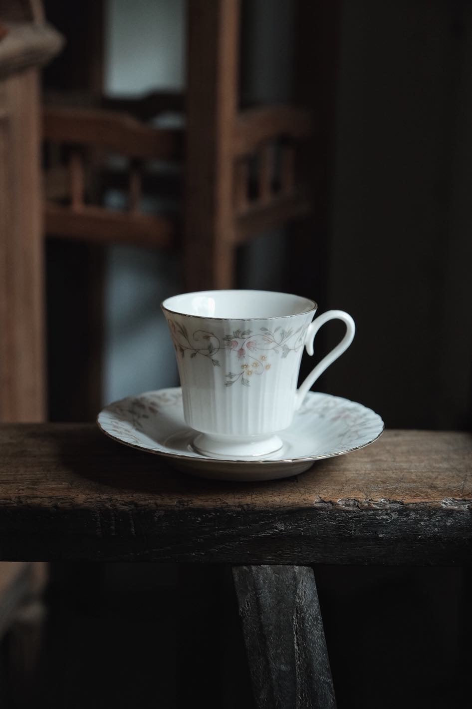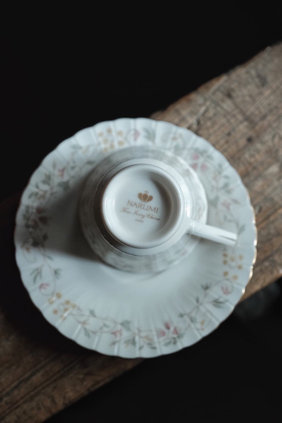 日本製嗚海NARUMI 花卉描金高身細瓷杯連碟(180ml)