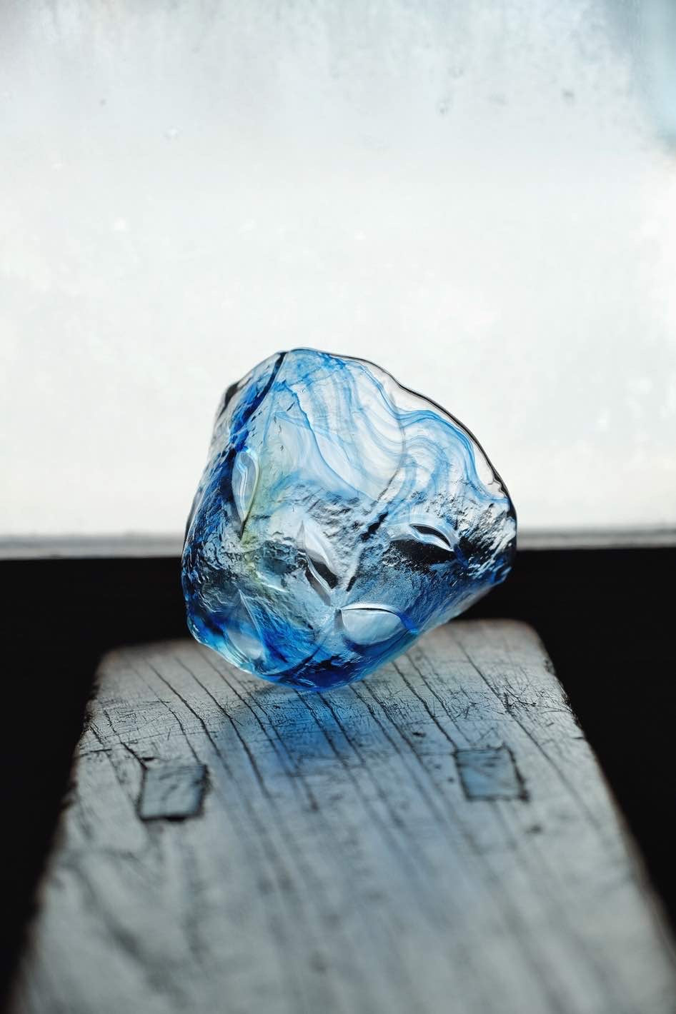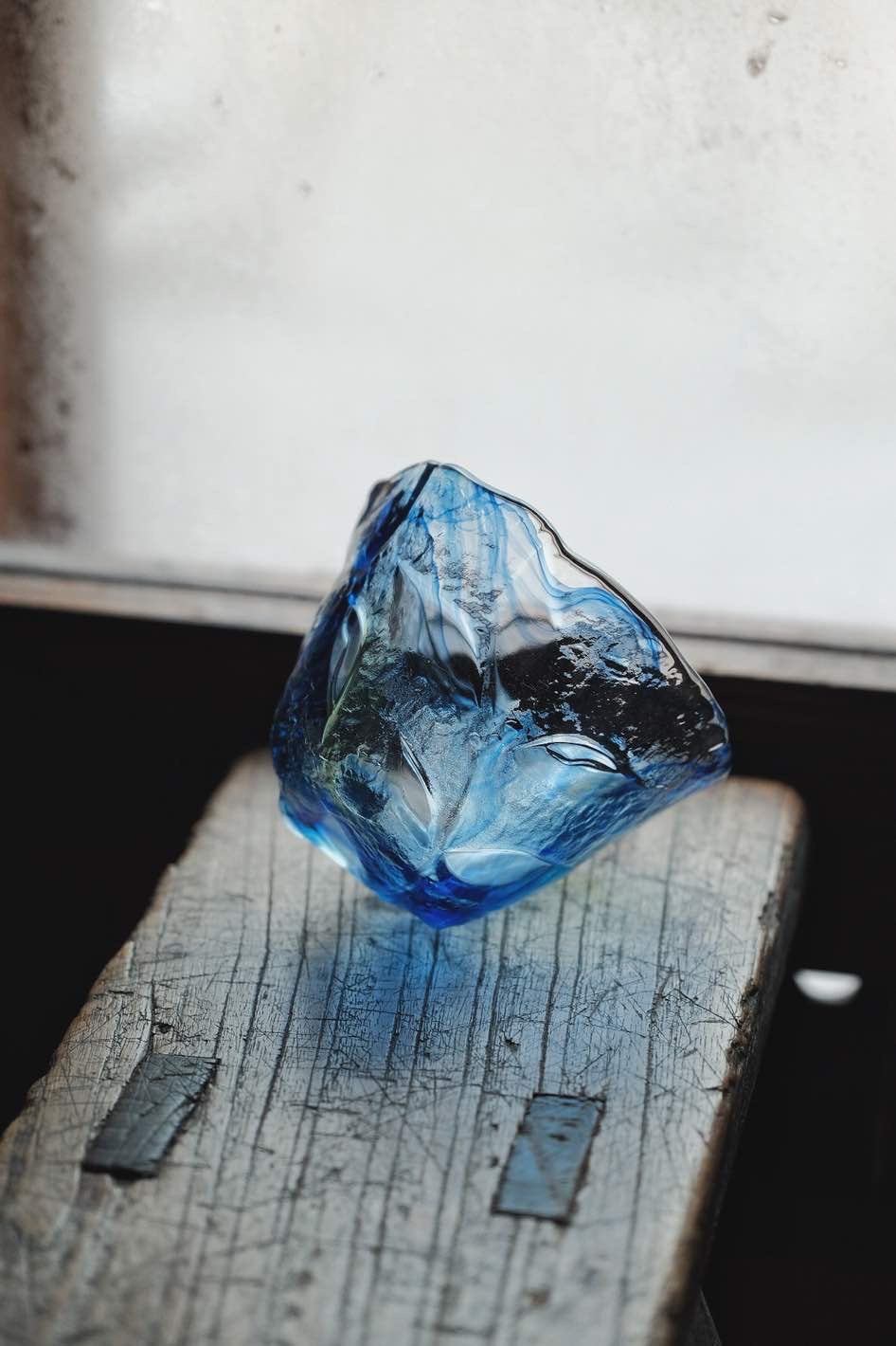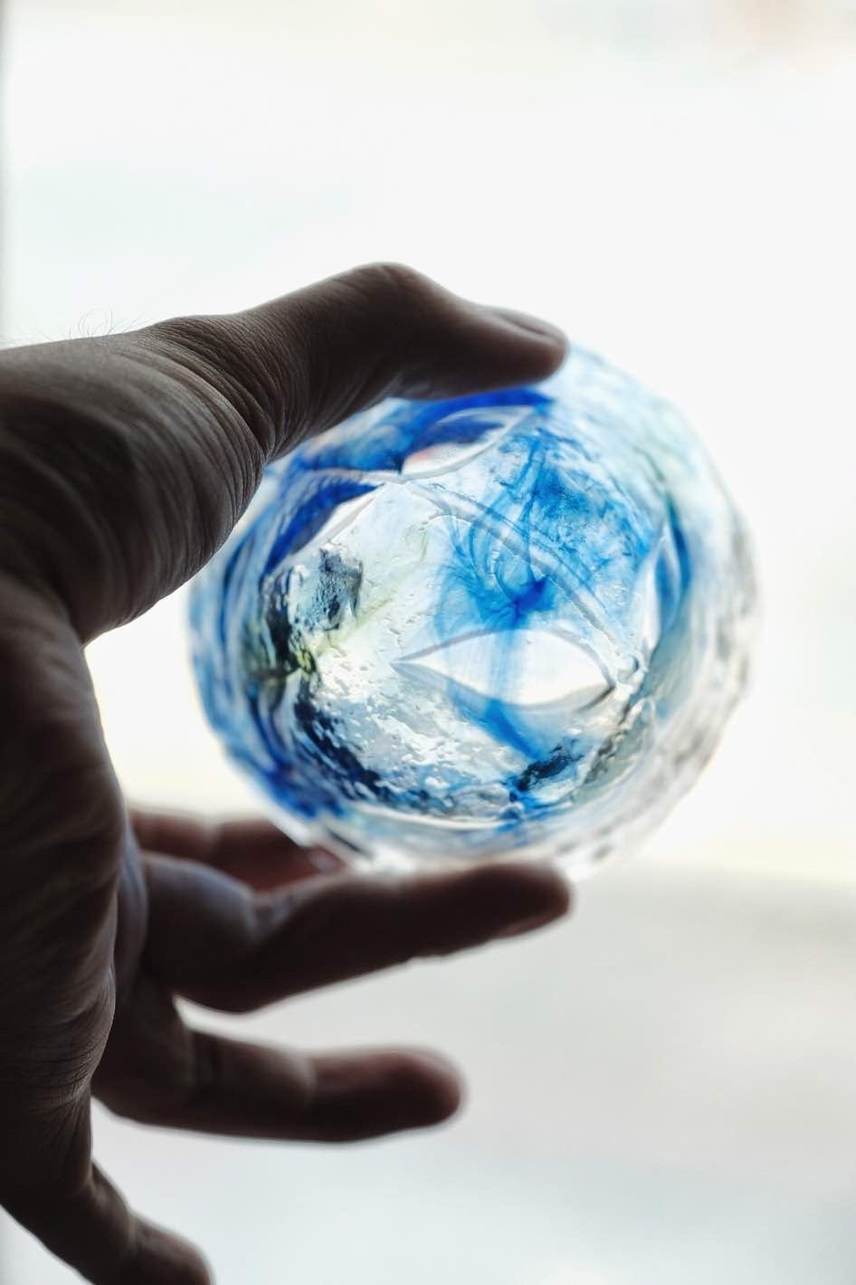 琉璃大杯或沾麵汁碗使用,三足設計,杯身反刻櫻花花瓣凹凸質感,幻彩三色,似海洋魅影