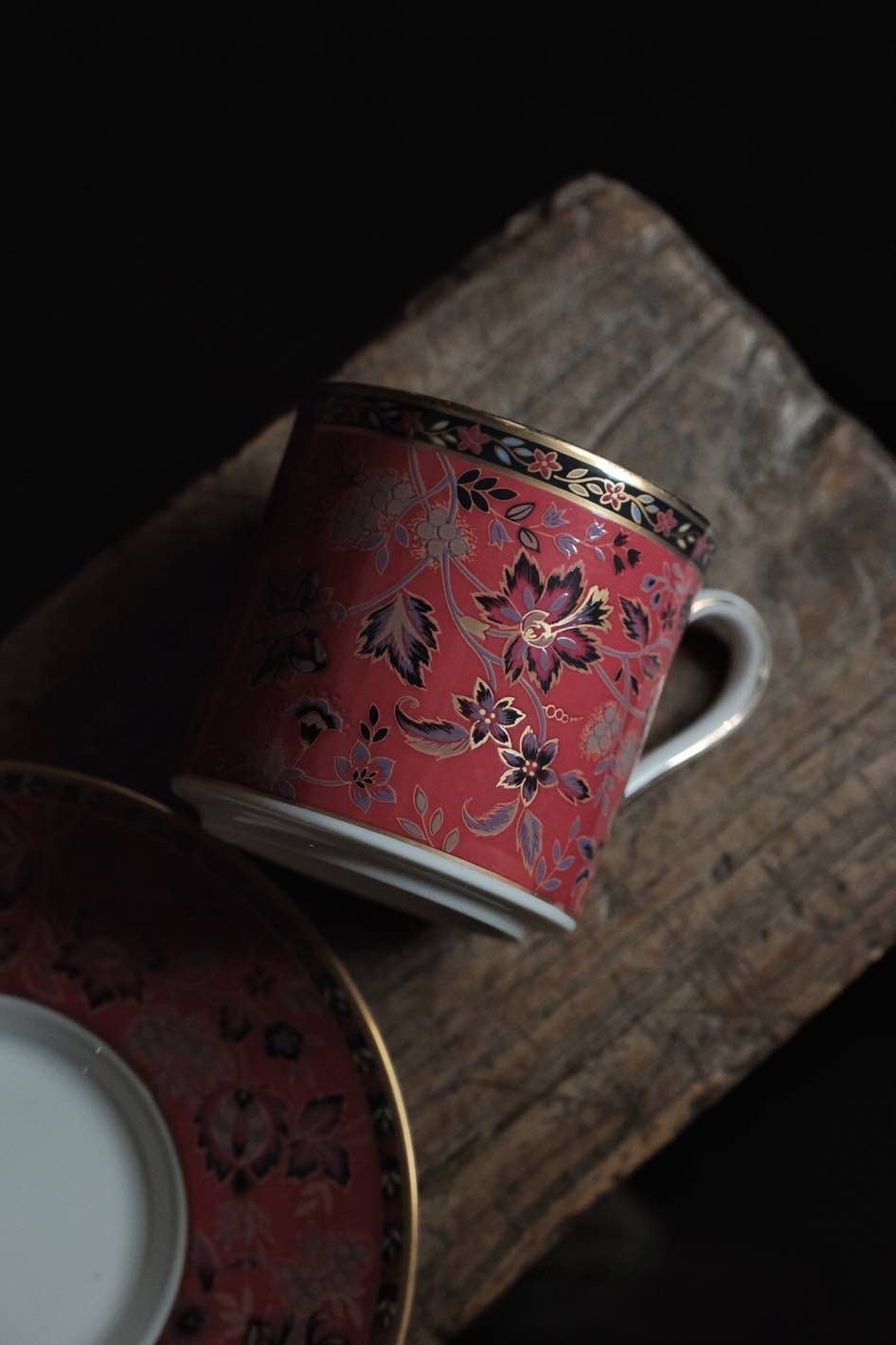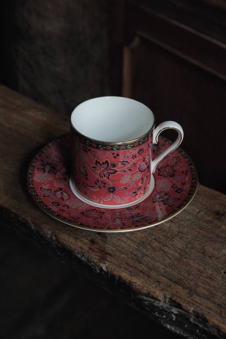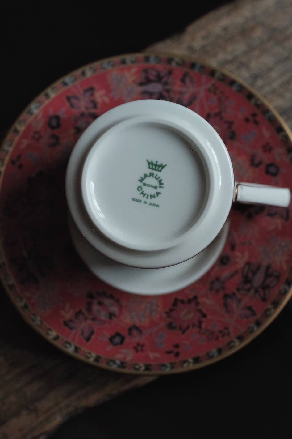 日本製嗚海NARUMI 稀有色花卉圖描金骨瓷杯連碟(190ml)