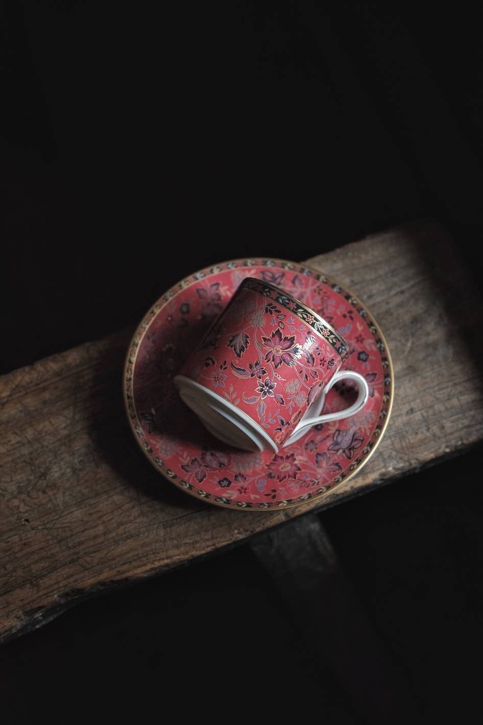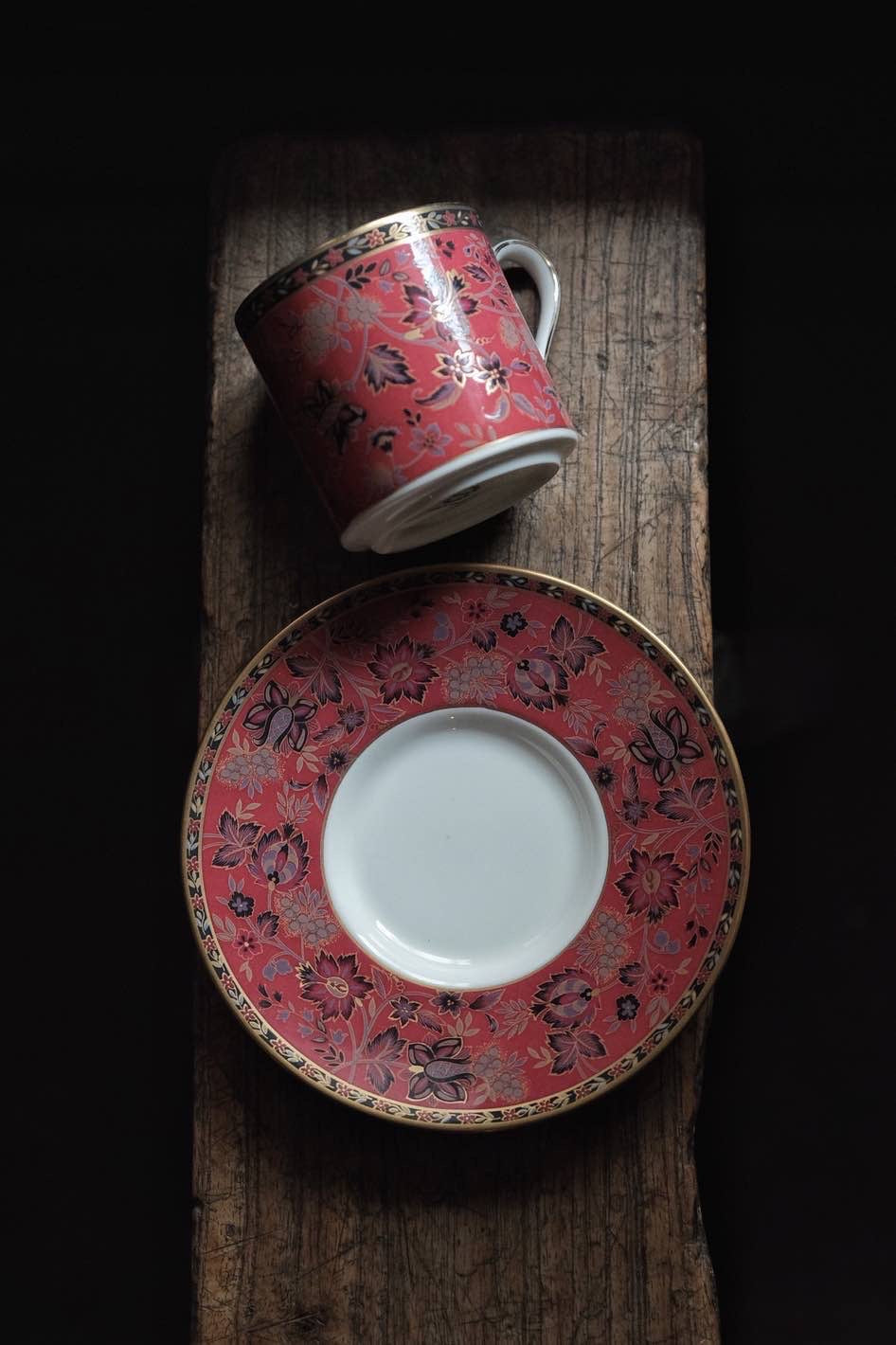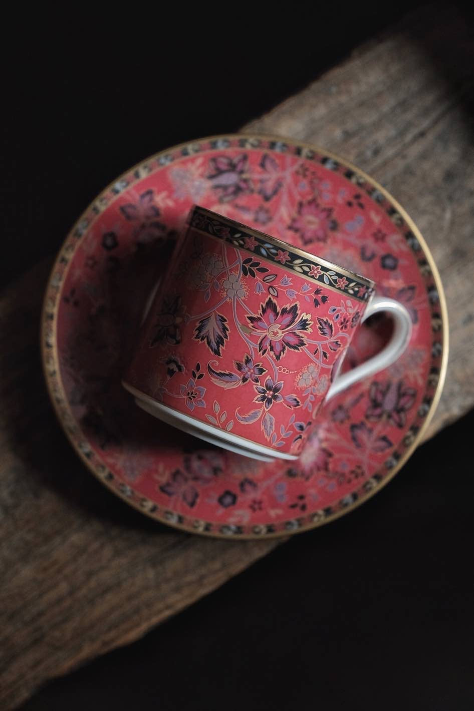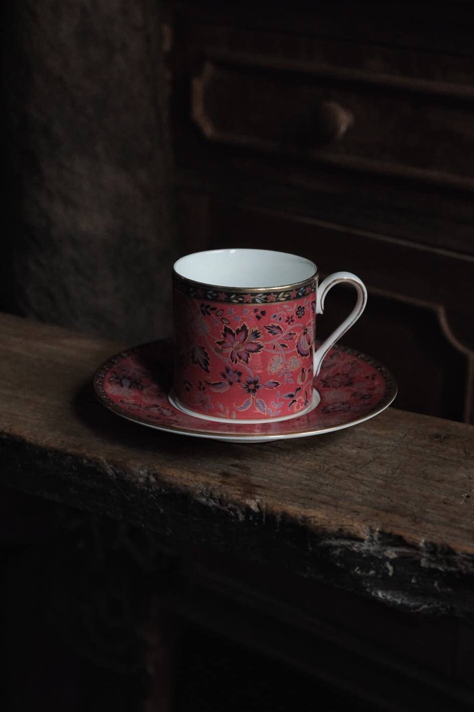 日本製嗚海NARUMI 稀有色花卉圖描金骨瓷杯連碟(190ml)