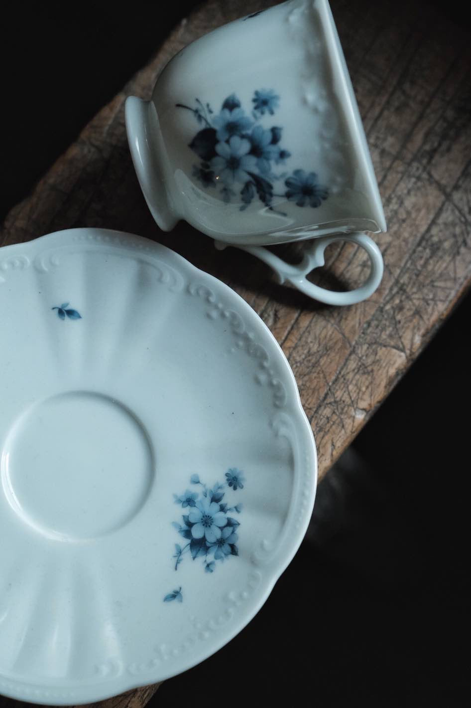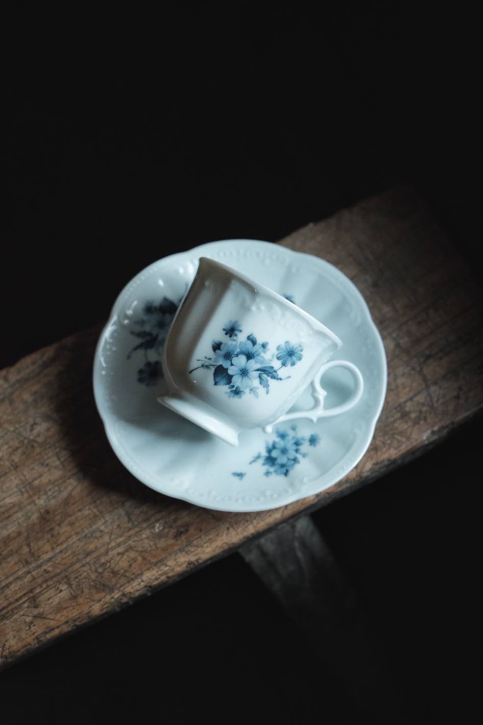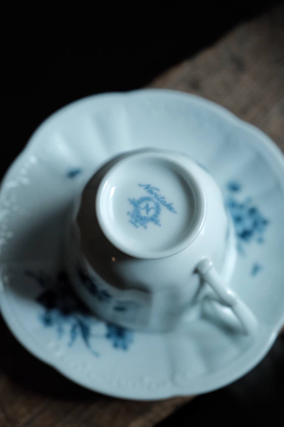 日本製Noritake則武花青花付浮雕瓷杯連碟(180ml)
