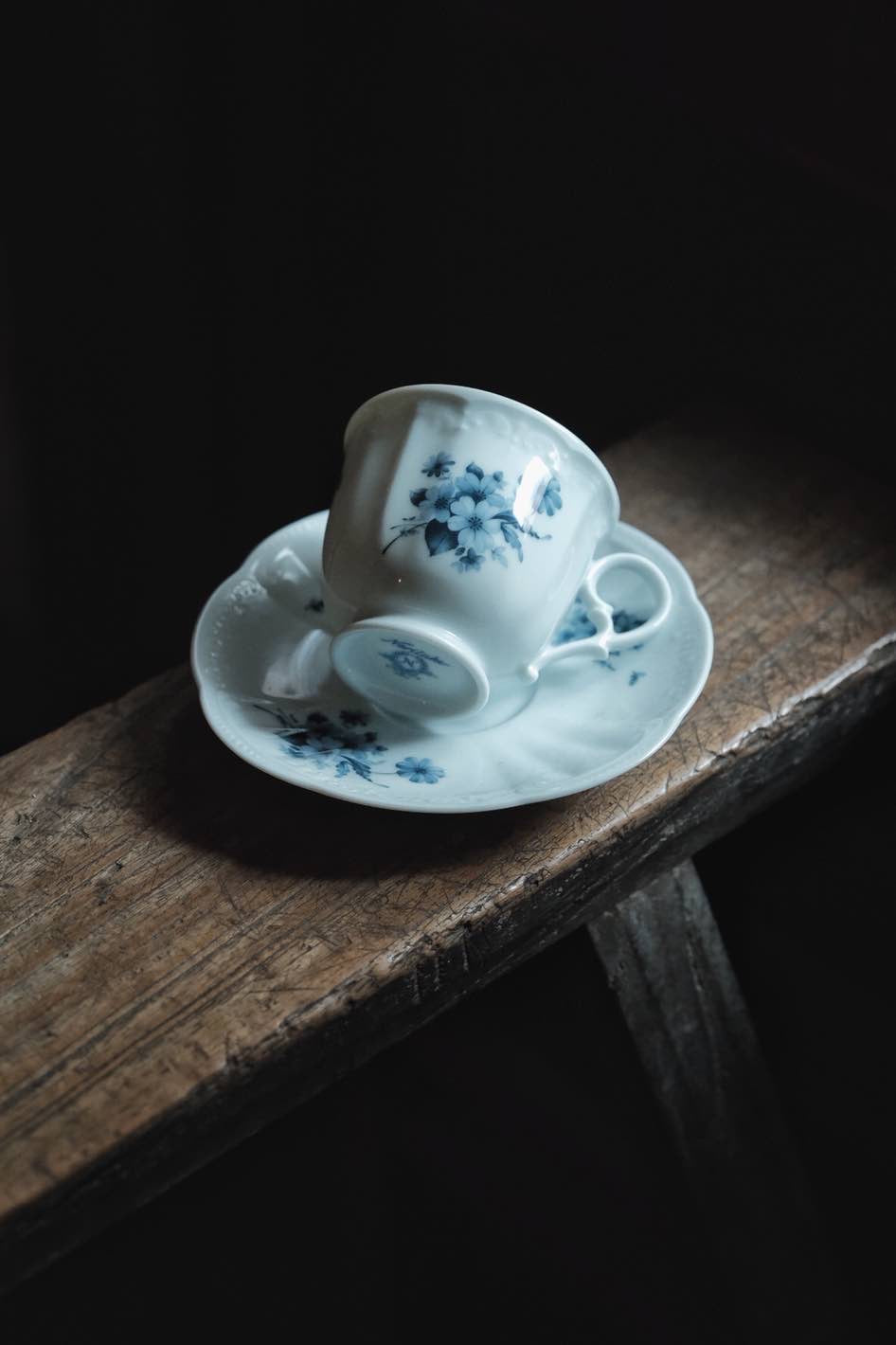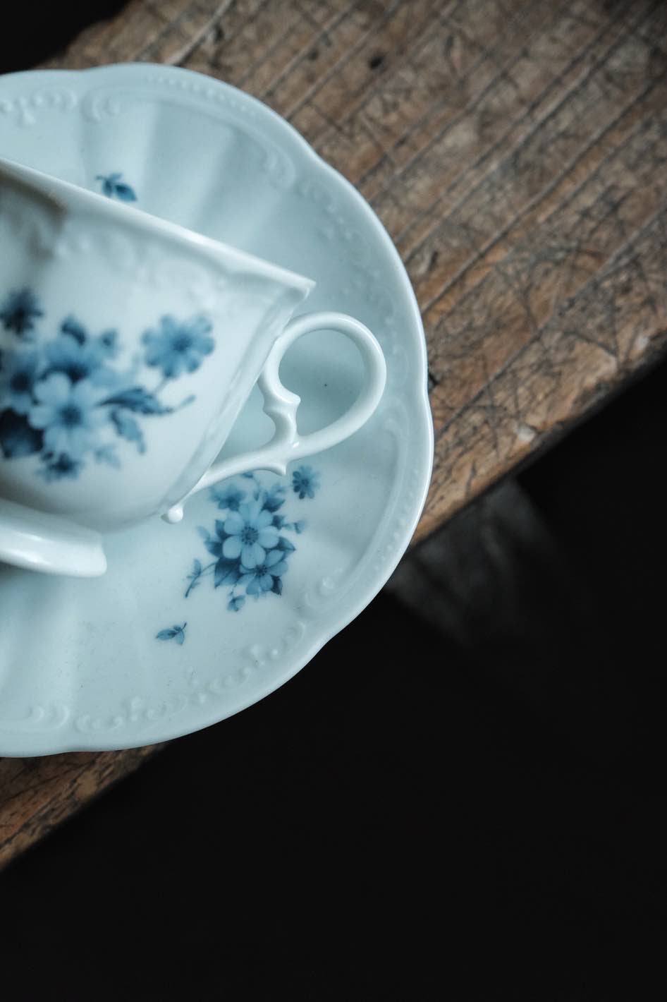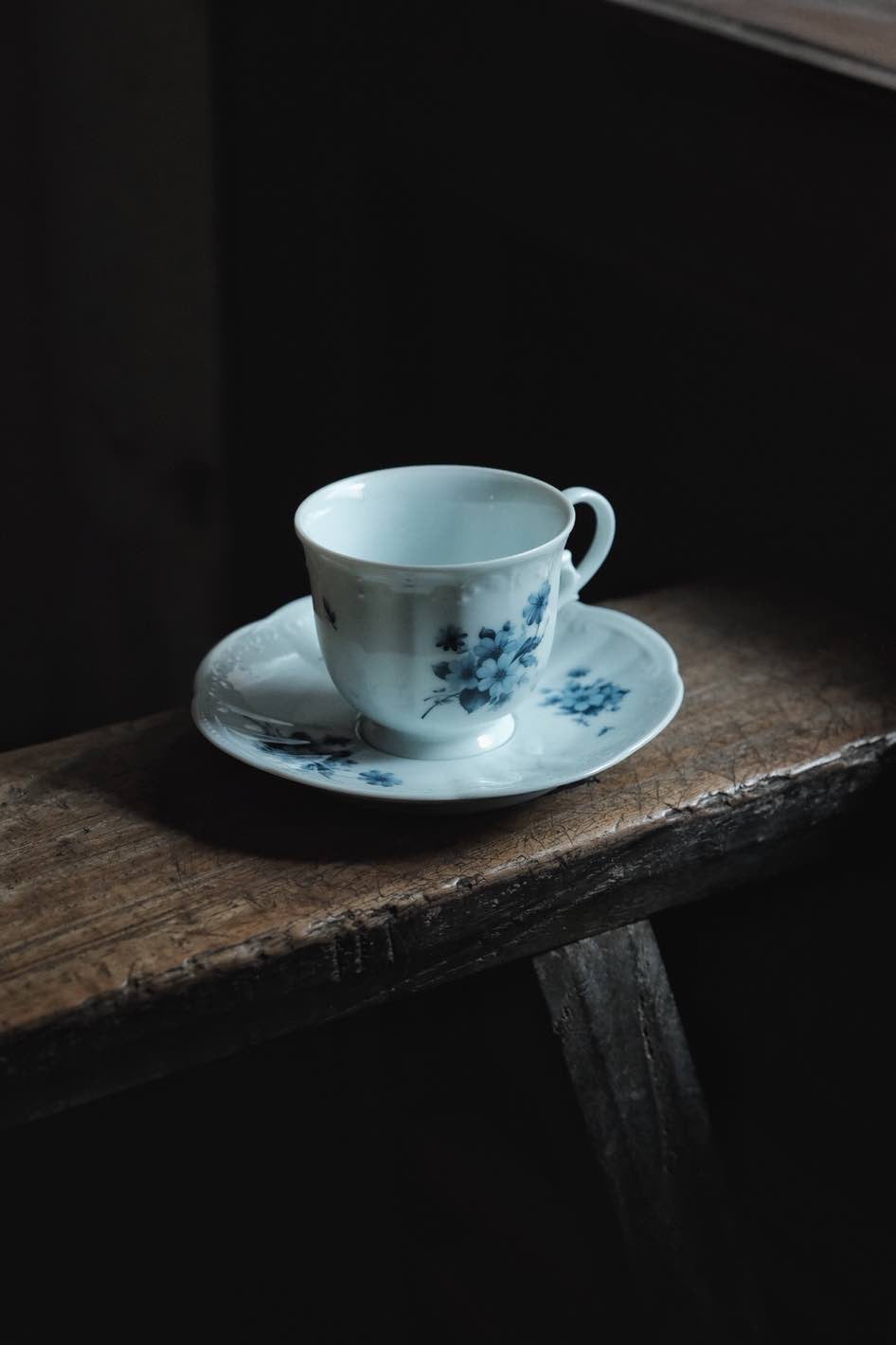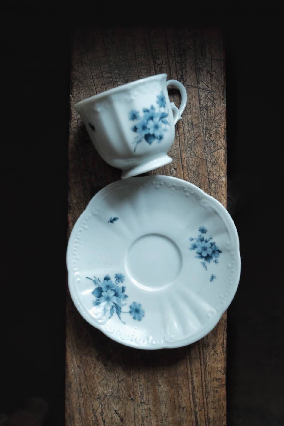 日本製Noritake則武花青花付浮雕瓷杯連碟(180ml)