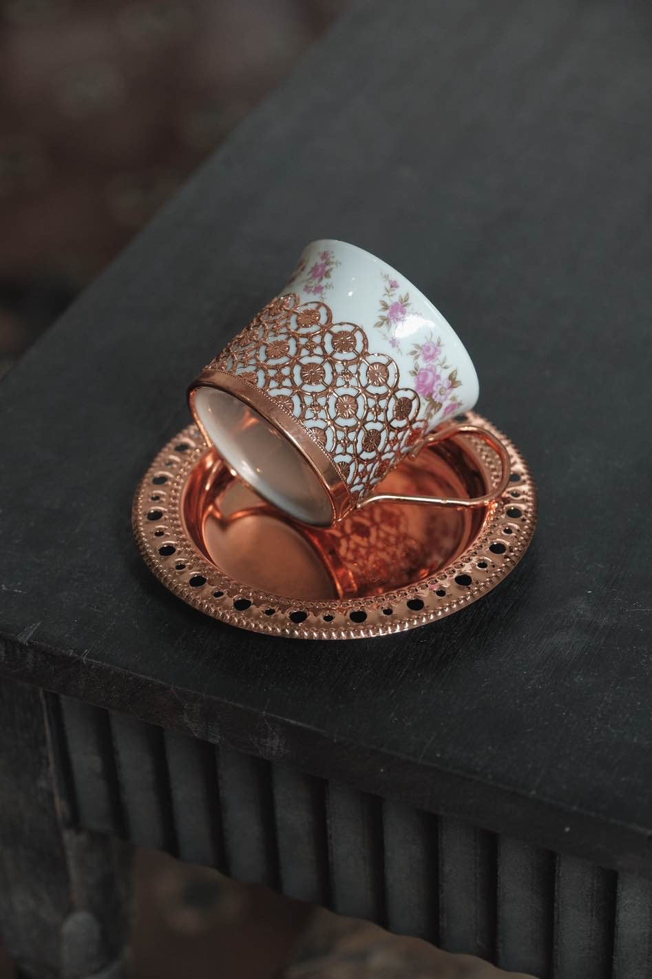 日本製 · 紅銅鏤空花陶瓷杯碟一套(150ml)