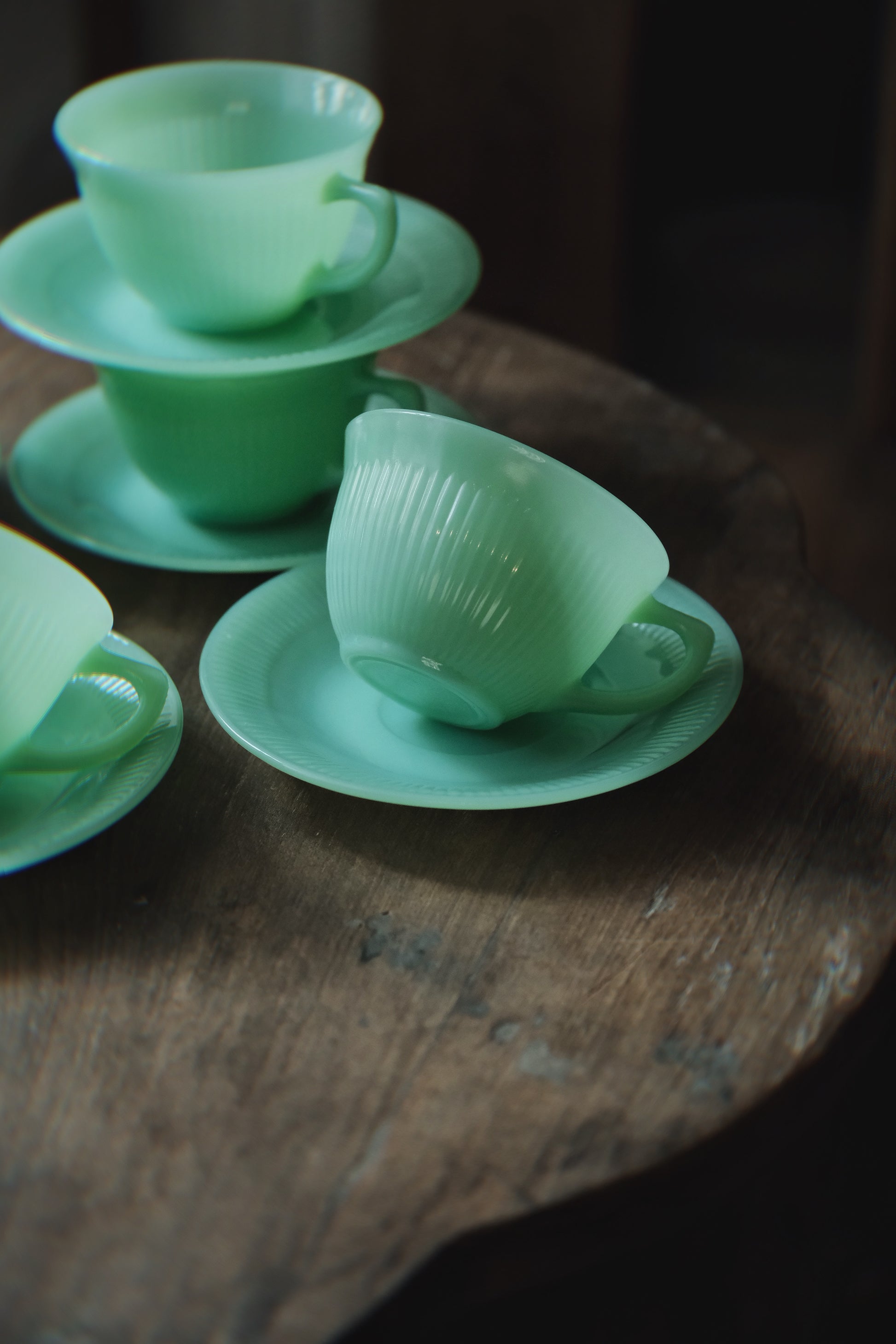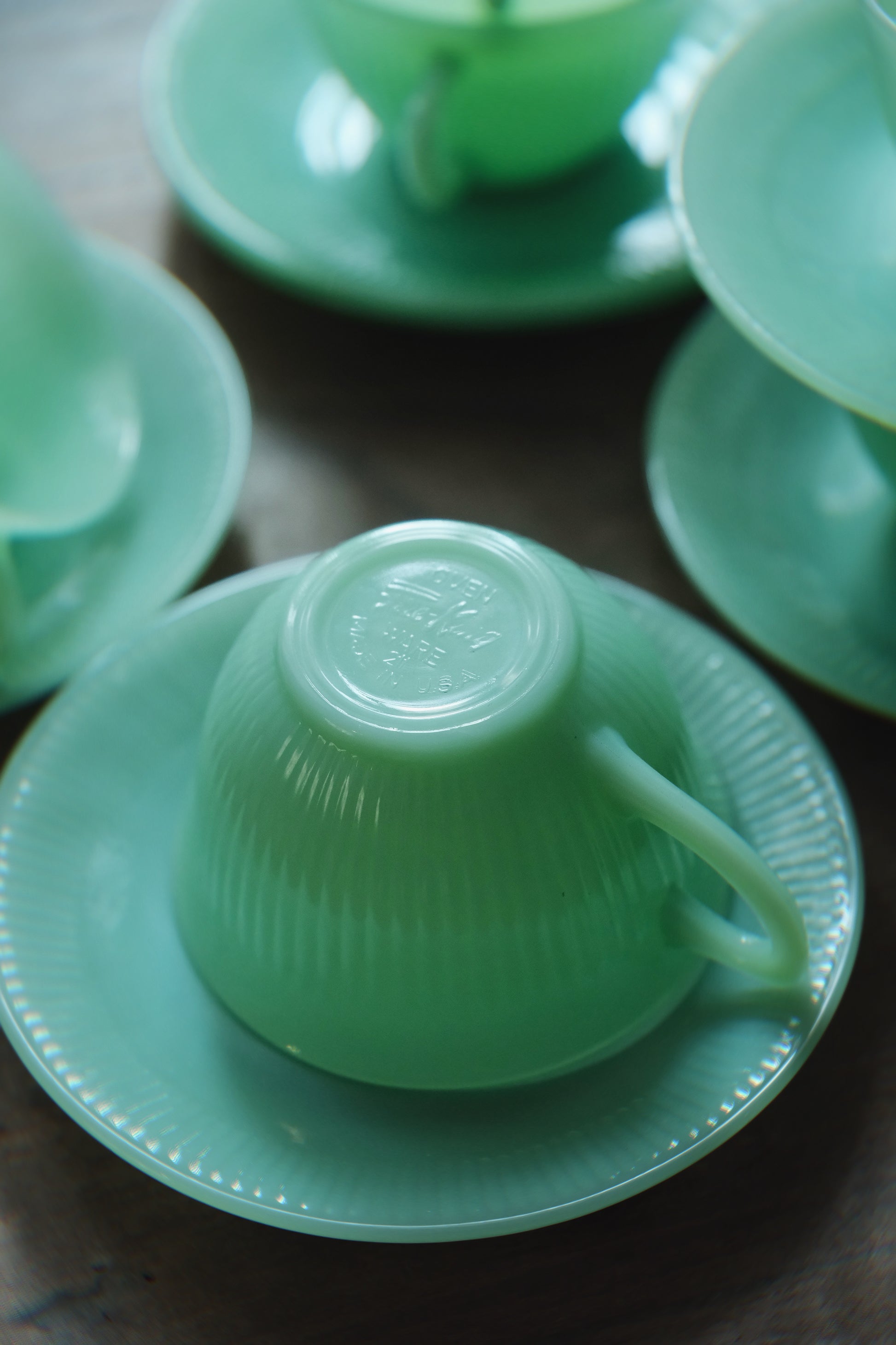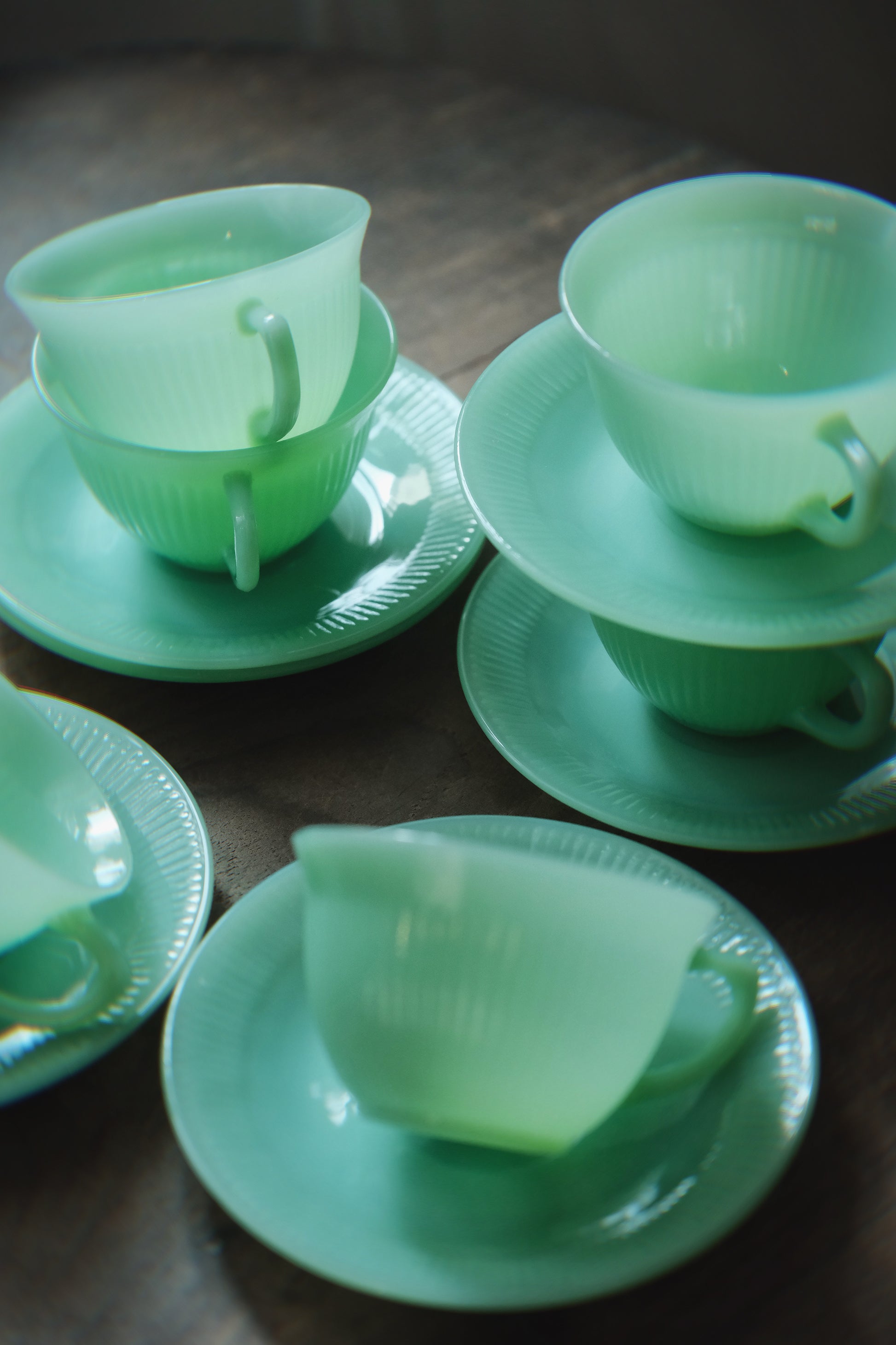 美國製·1960’s Fireking jane ray jadeite 杯碟(220ml)