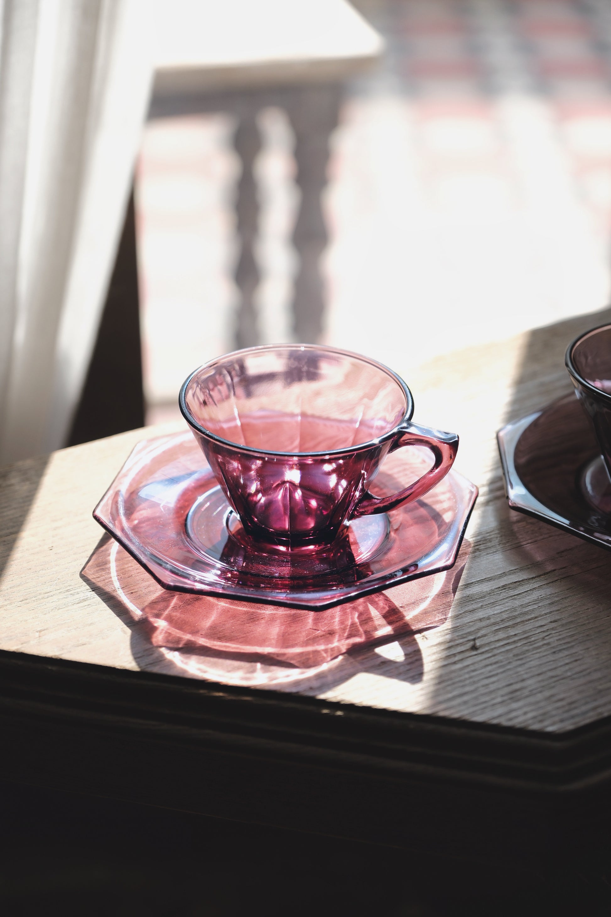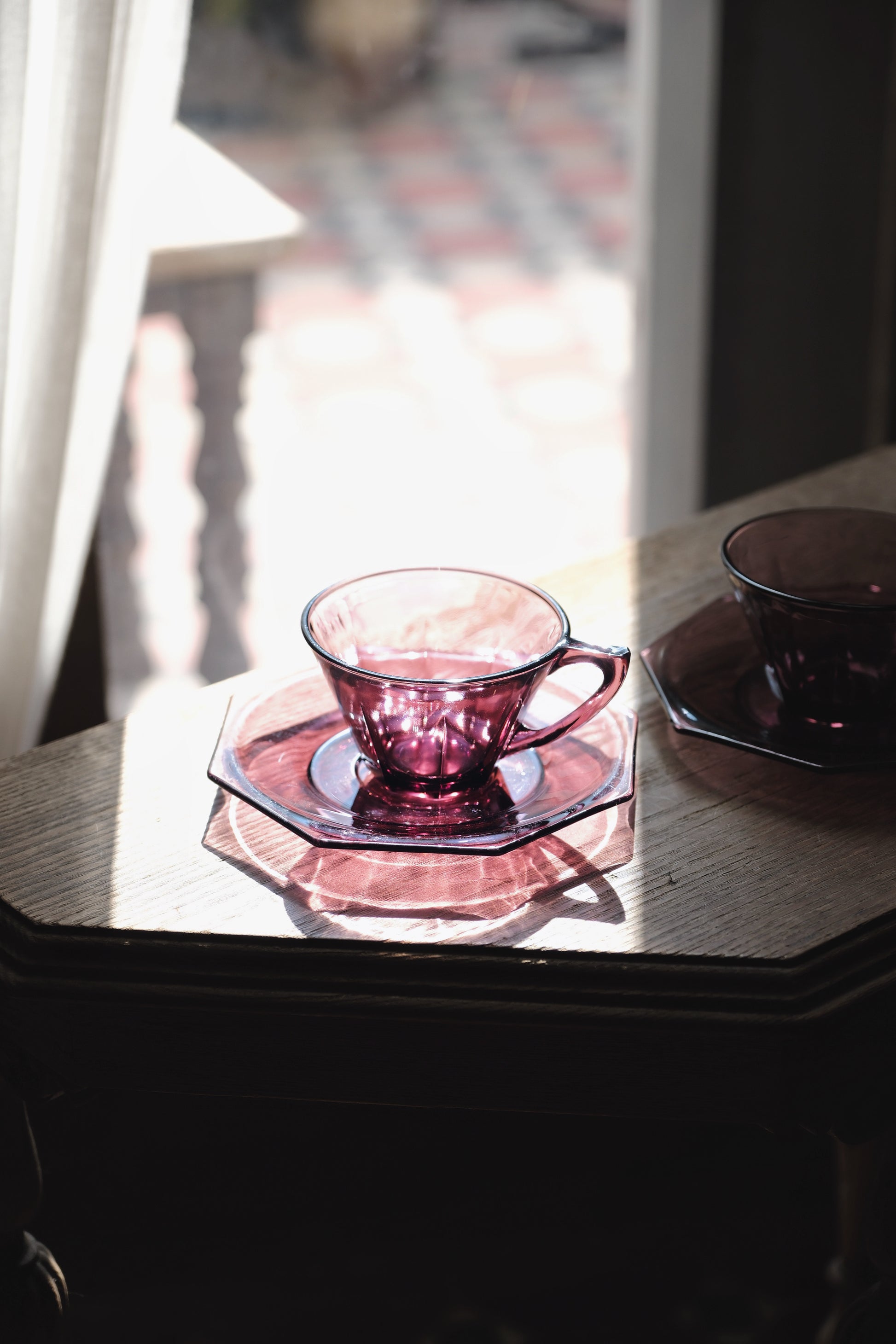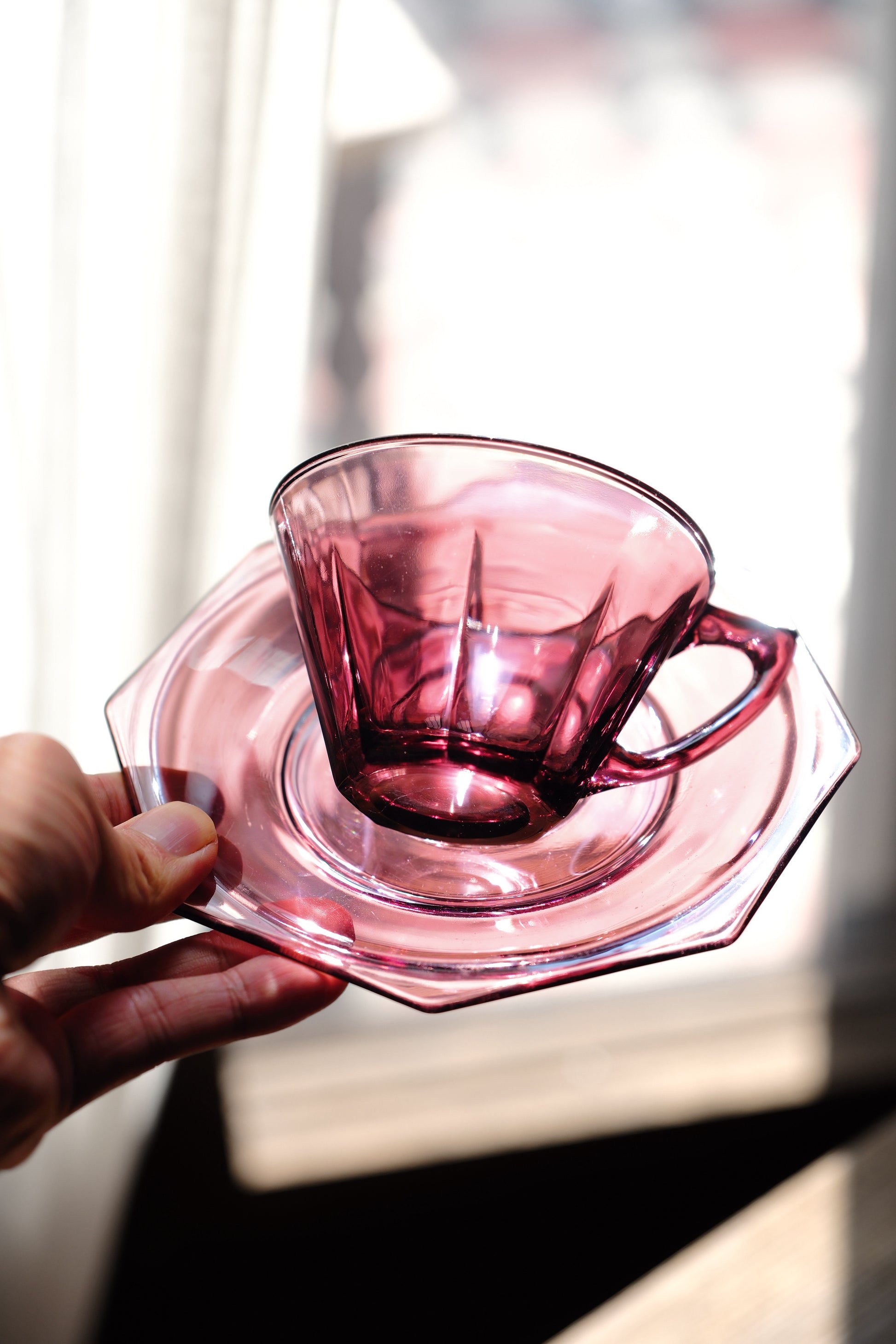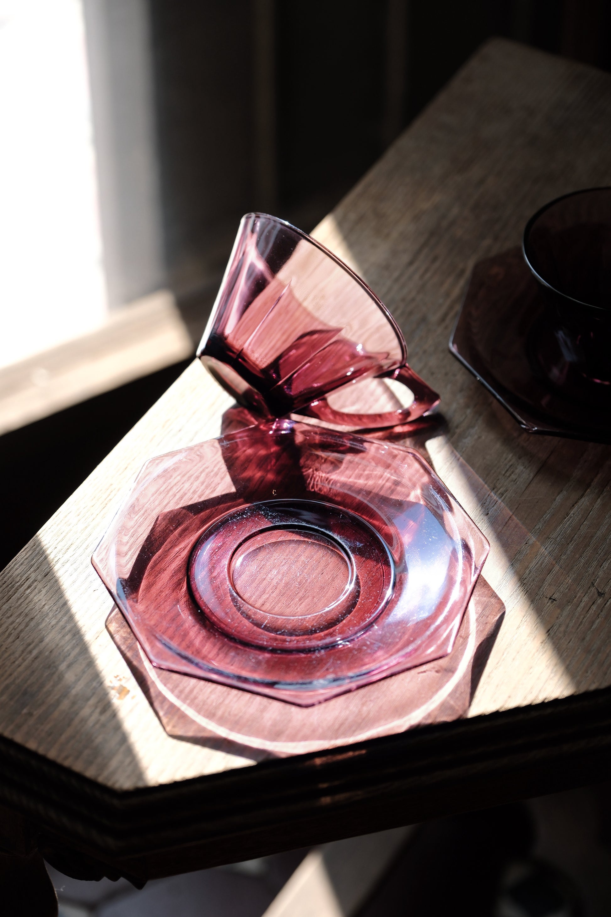 美國製 • 1960s Hazel Atlas Moroccan 紫水晶玻璃杯連碟(160cm)