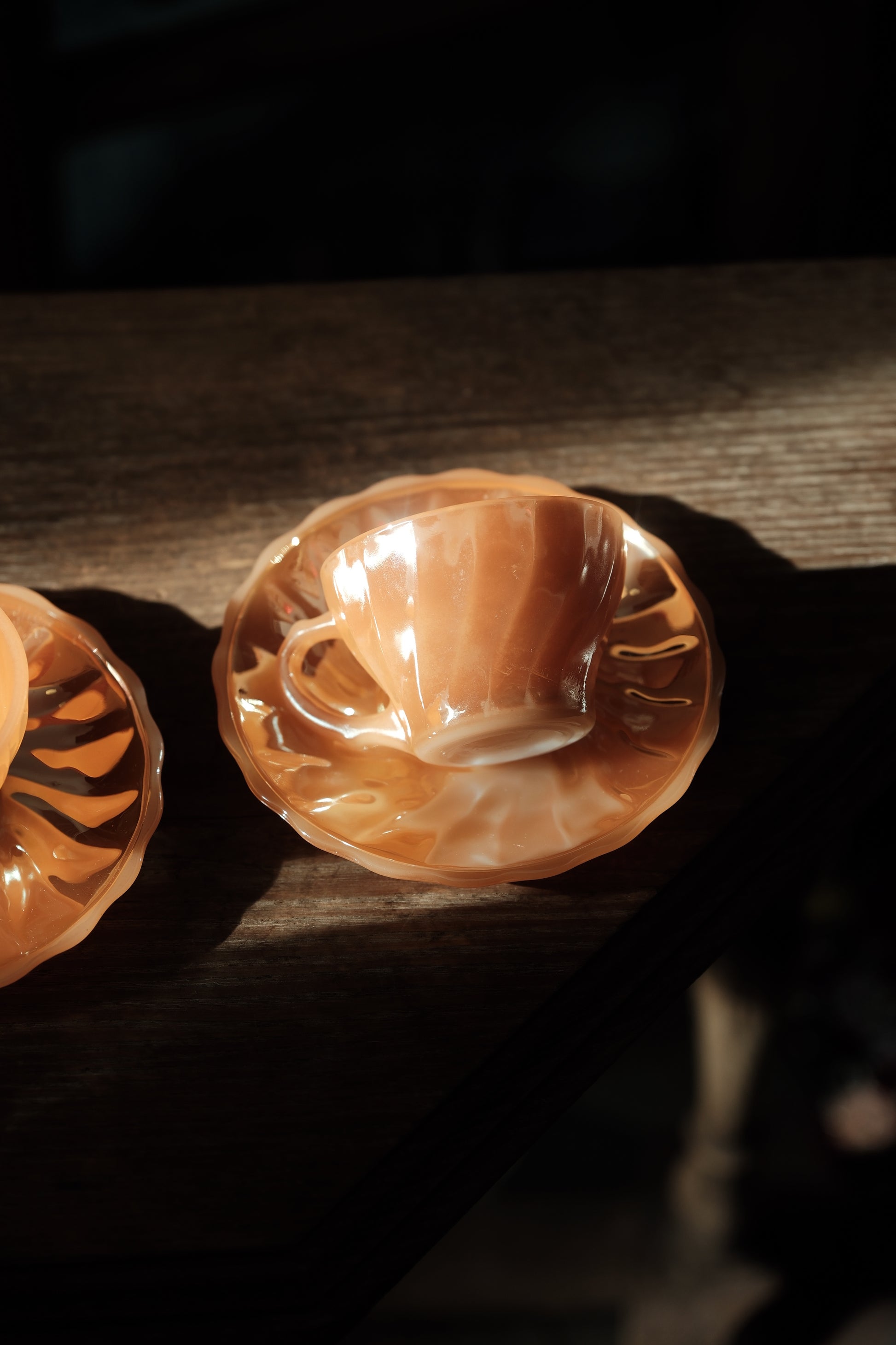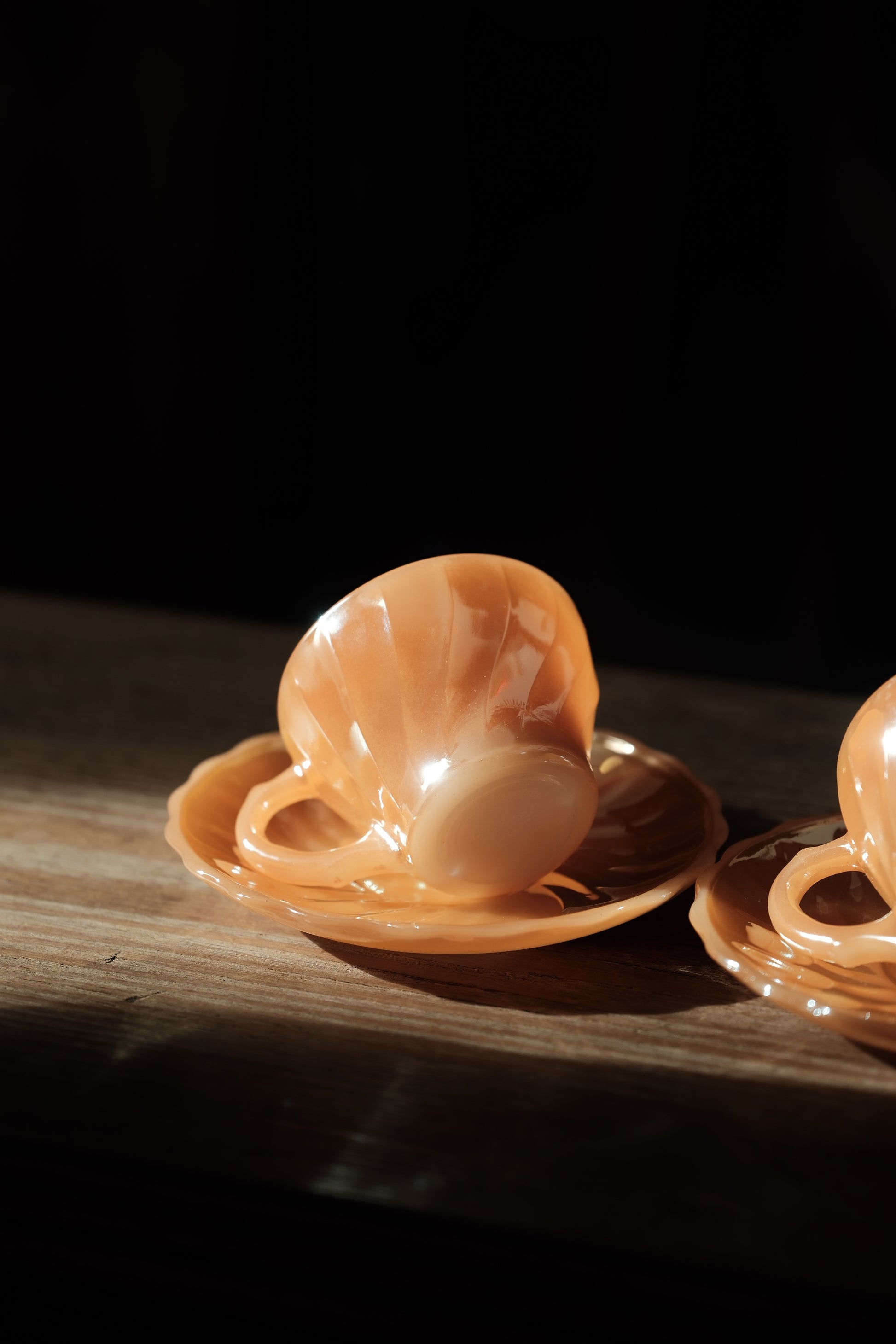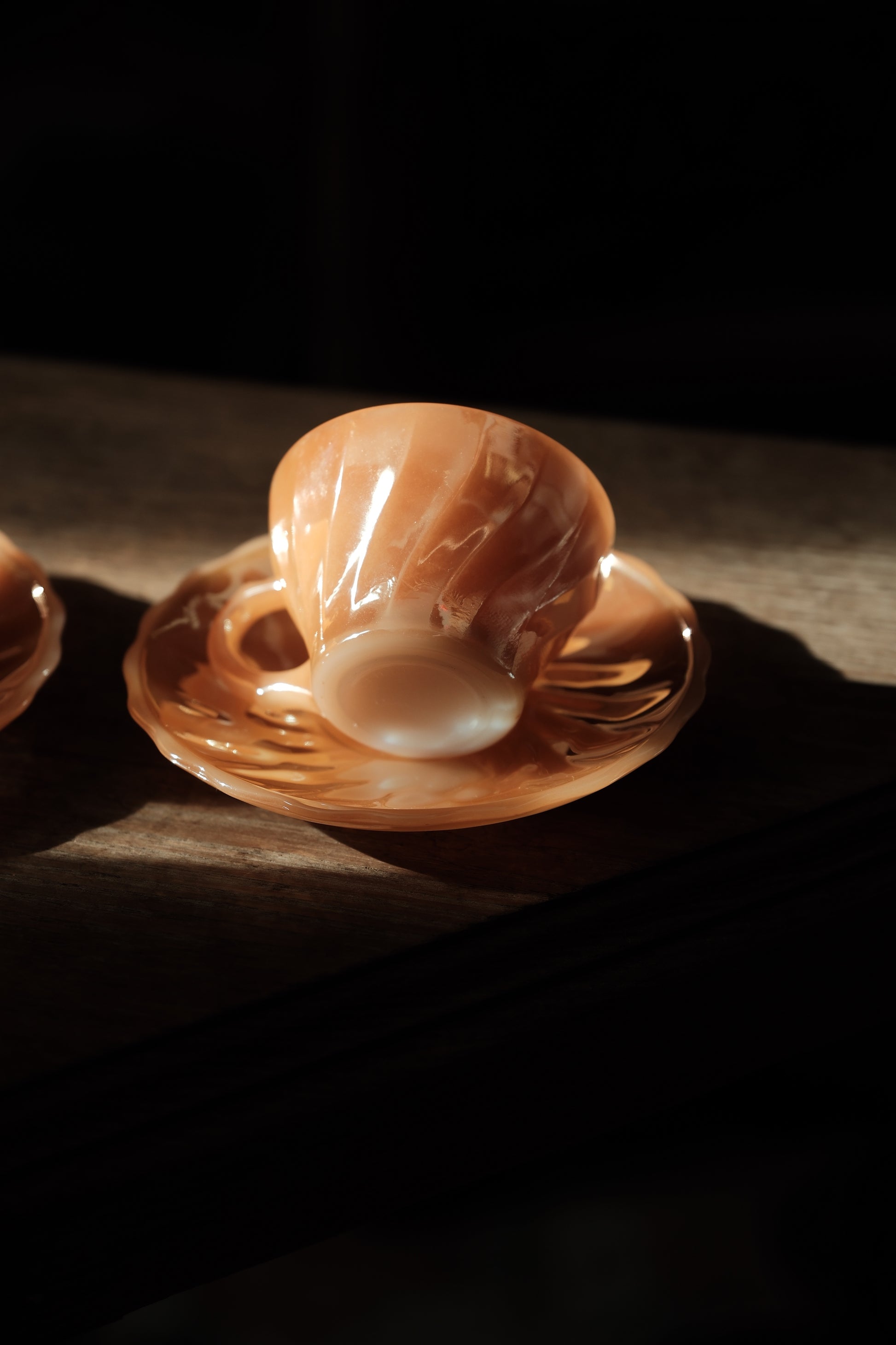 美國製• 1970年 Fire king Peach Swirl 細杯碟(90ml)
