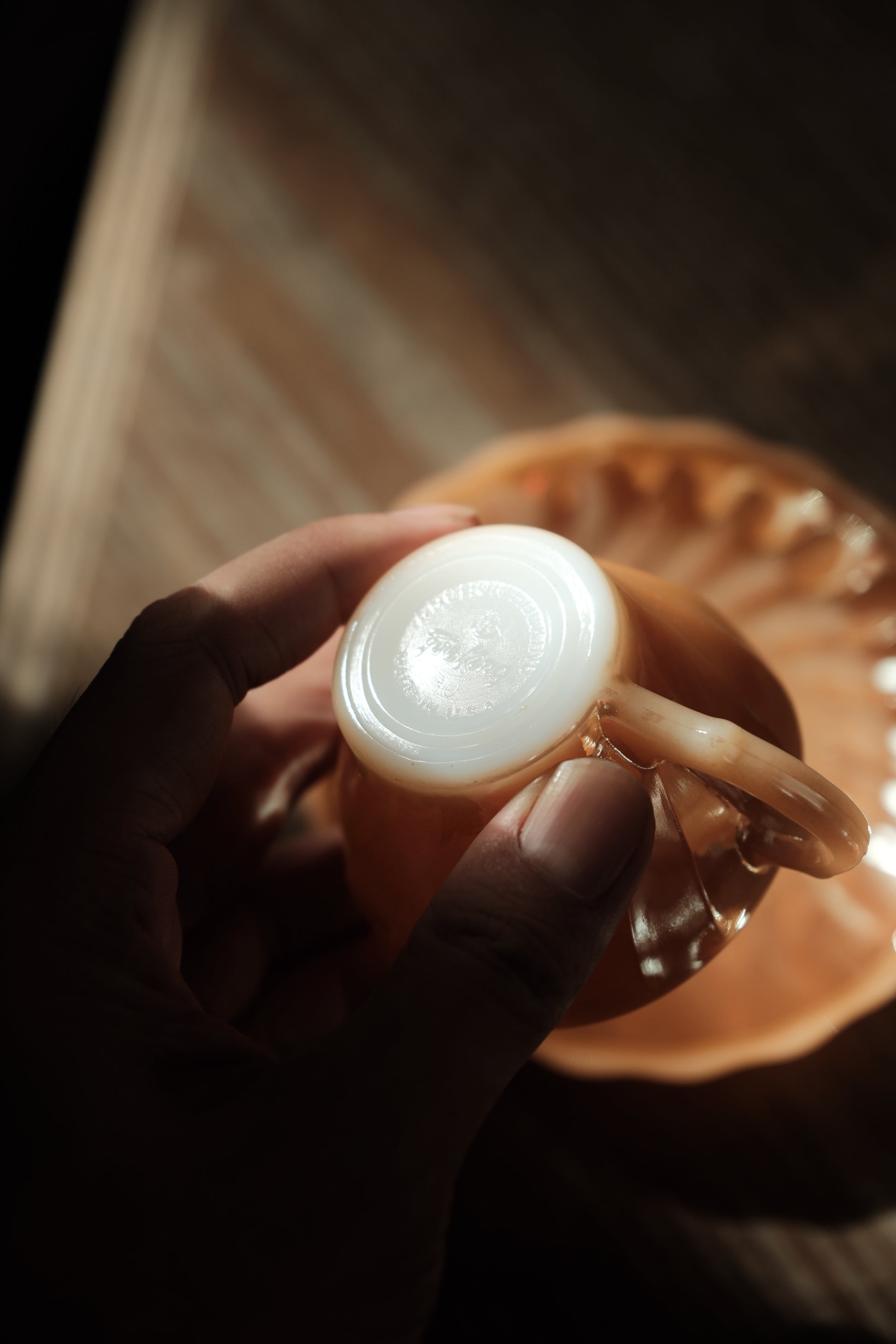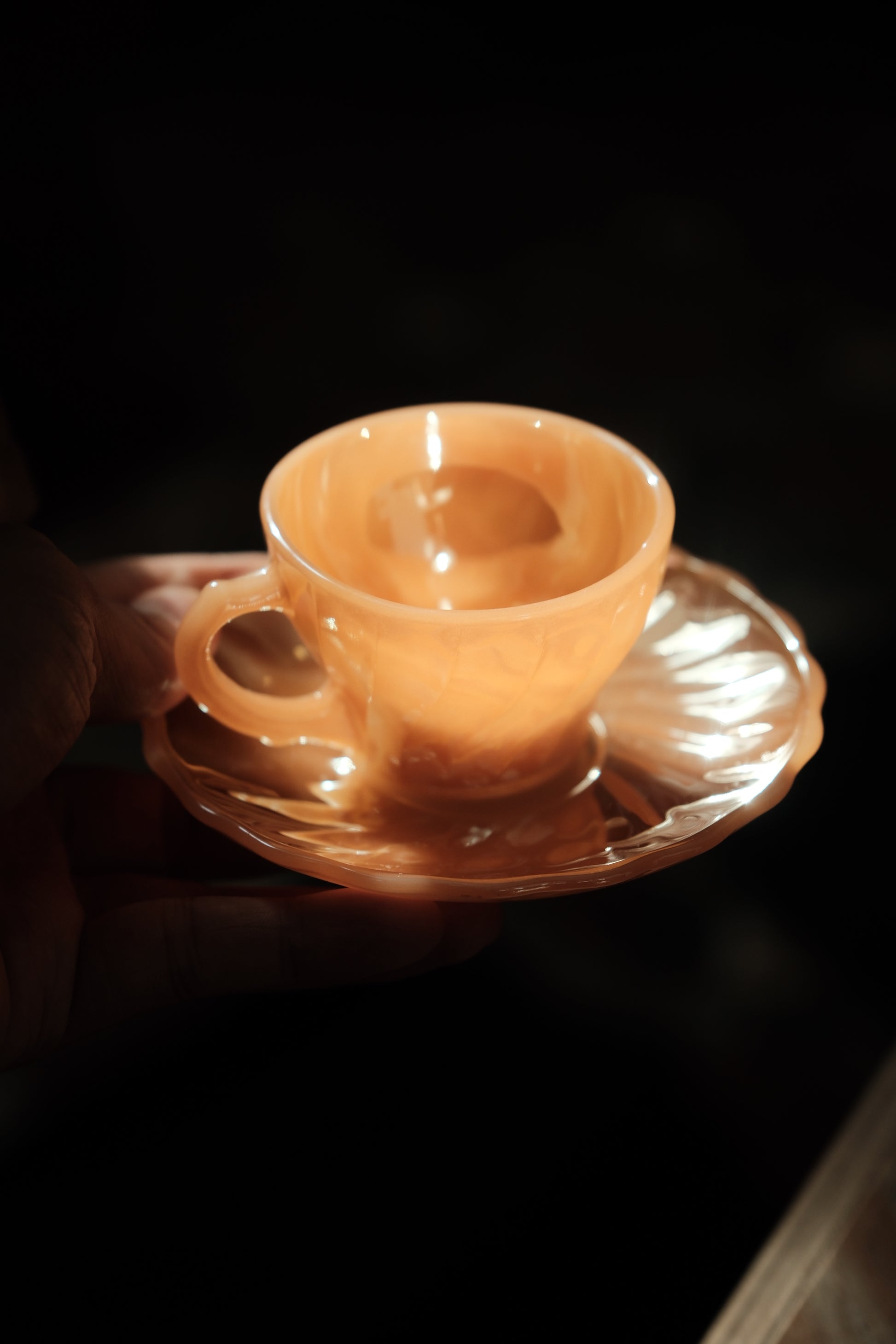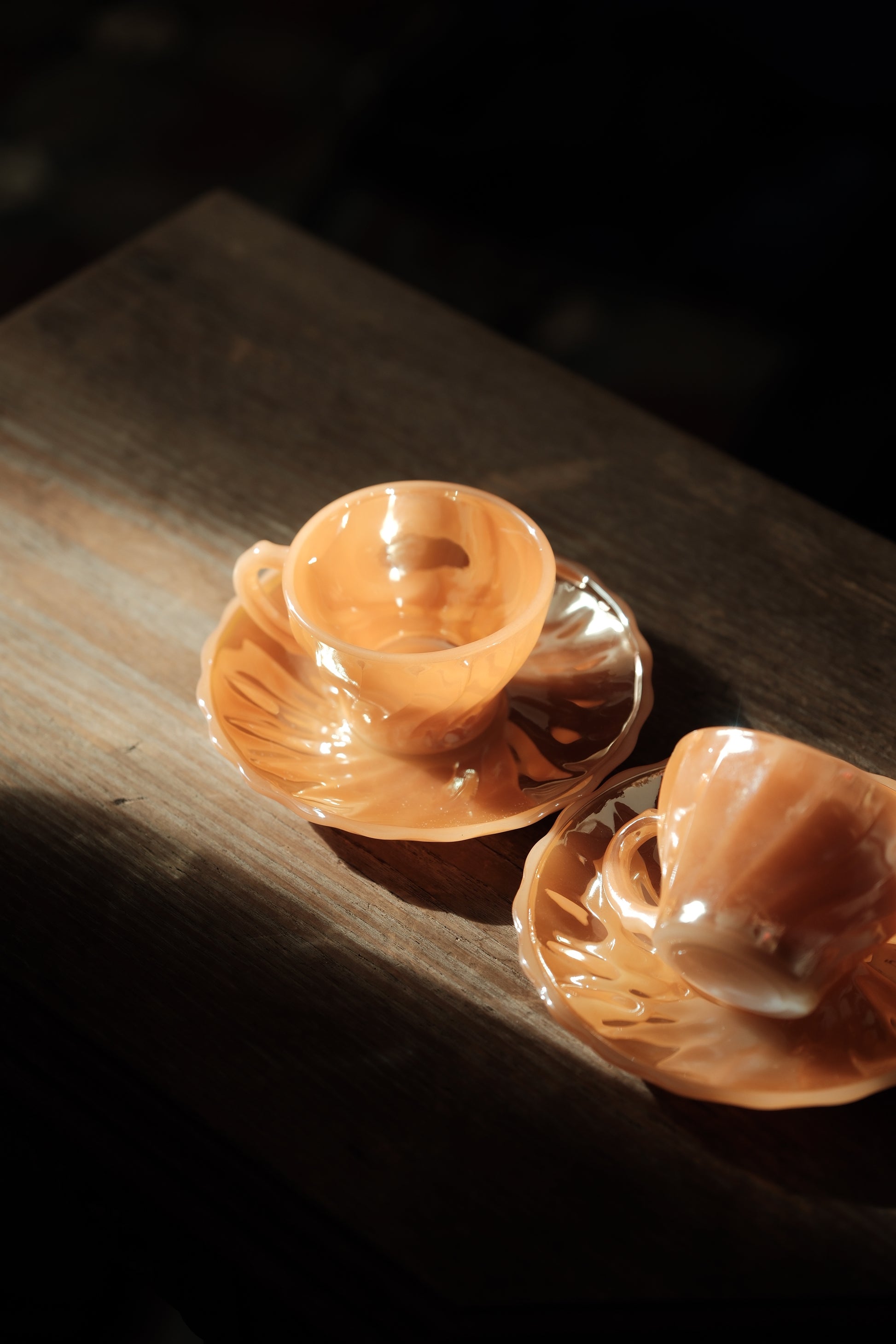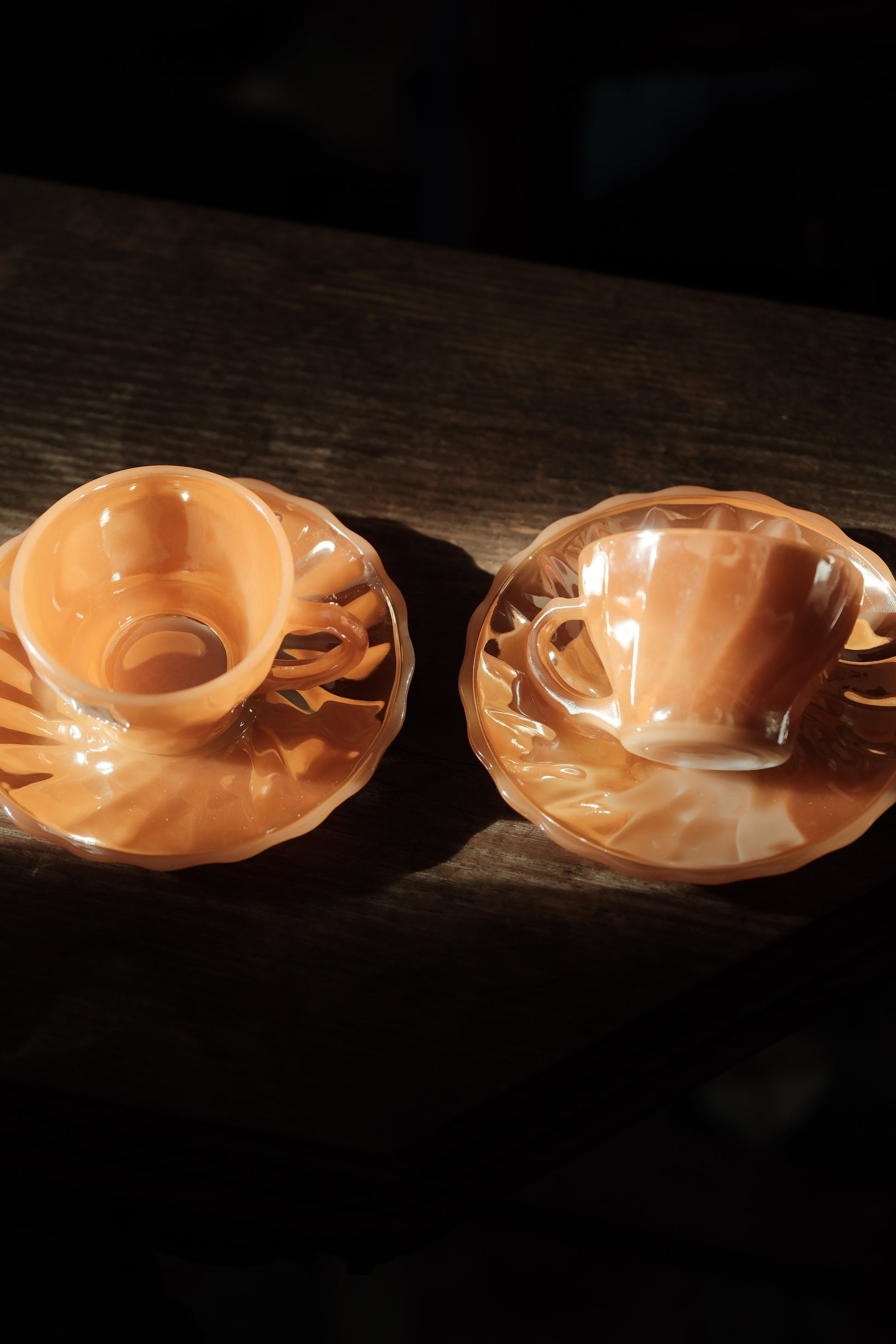 美國製• 1970年 Fire king Peach Swirl 細杯碟(90ml)