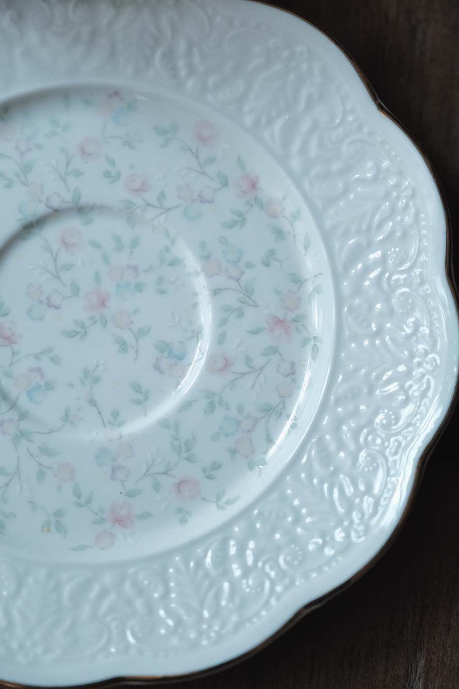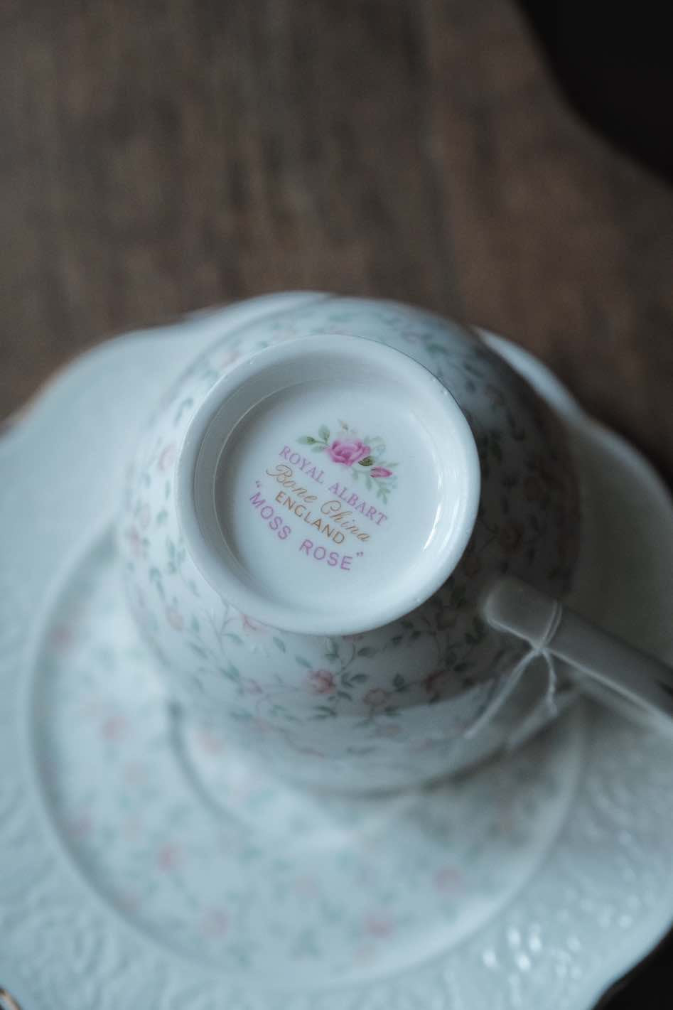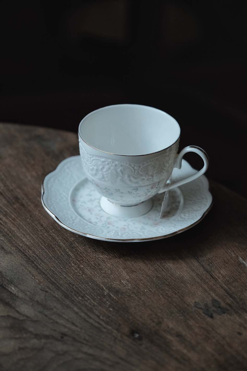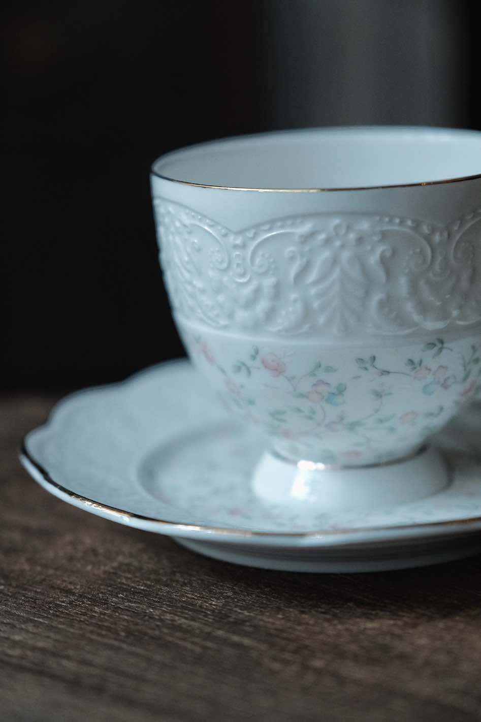 Moss rose 小碎花配浮雕草紋,雅致柔和,高足杯型,描金完整,容量大,十分適合陽光在窗邊和朋友度過下午茶敘
