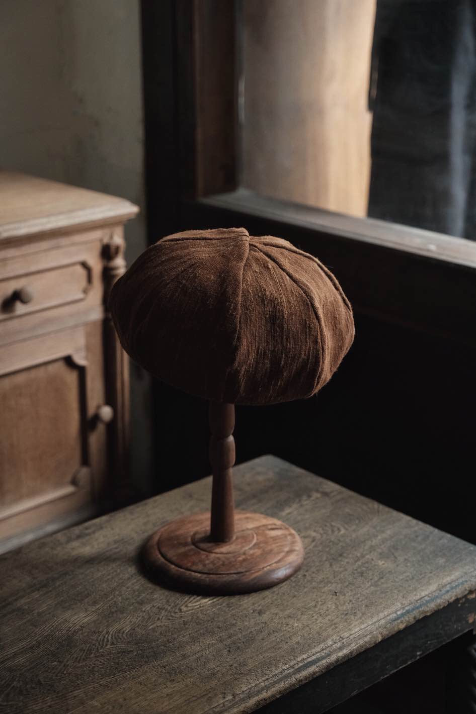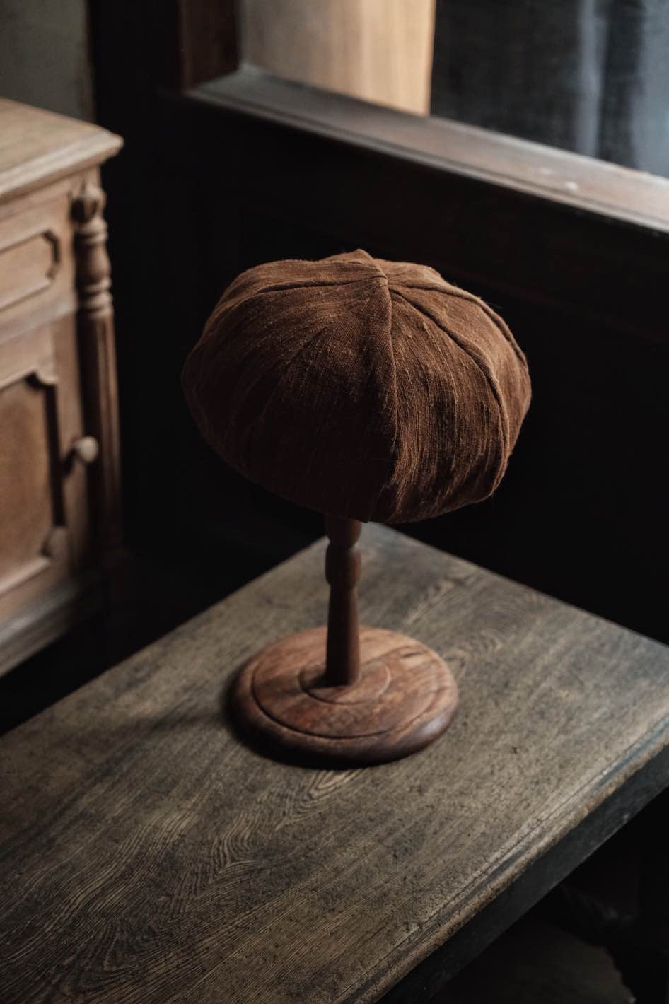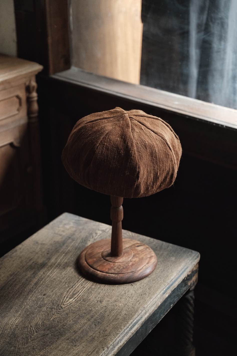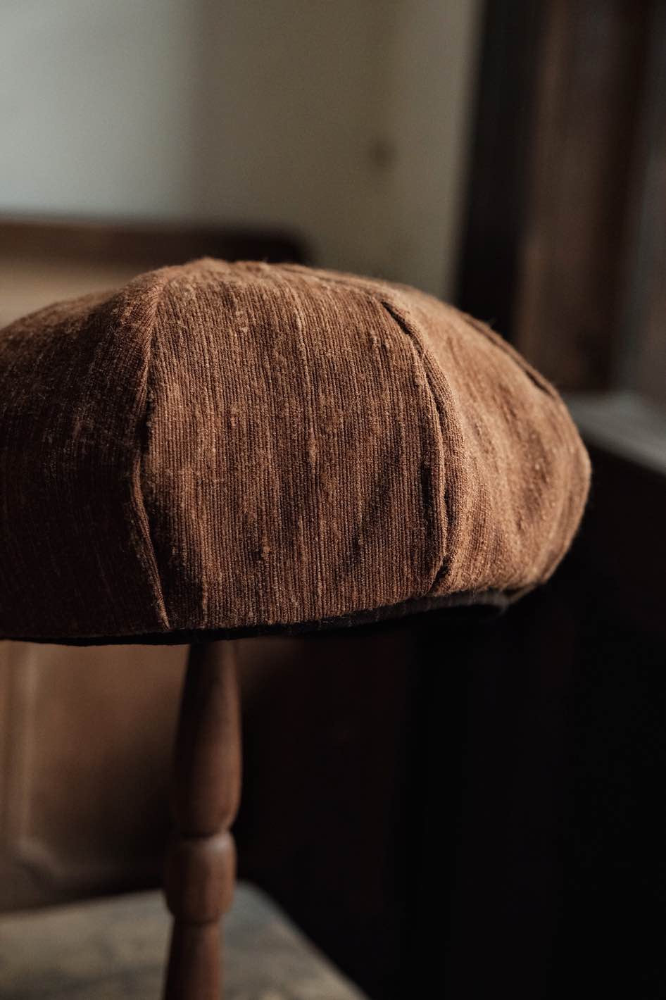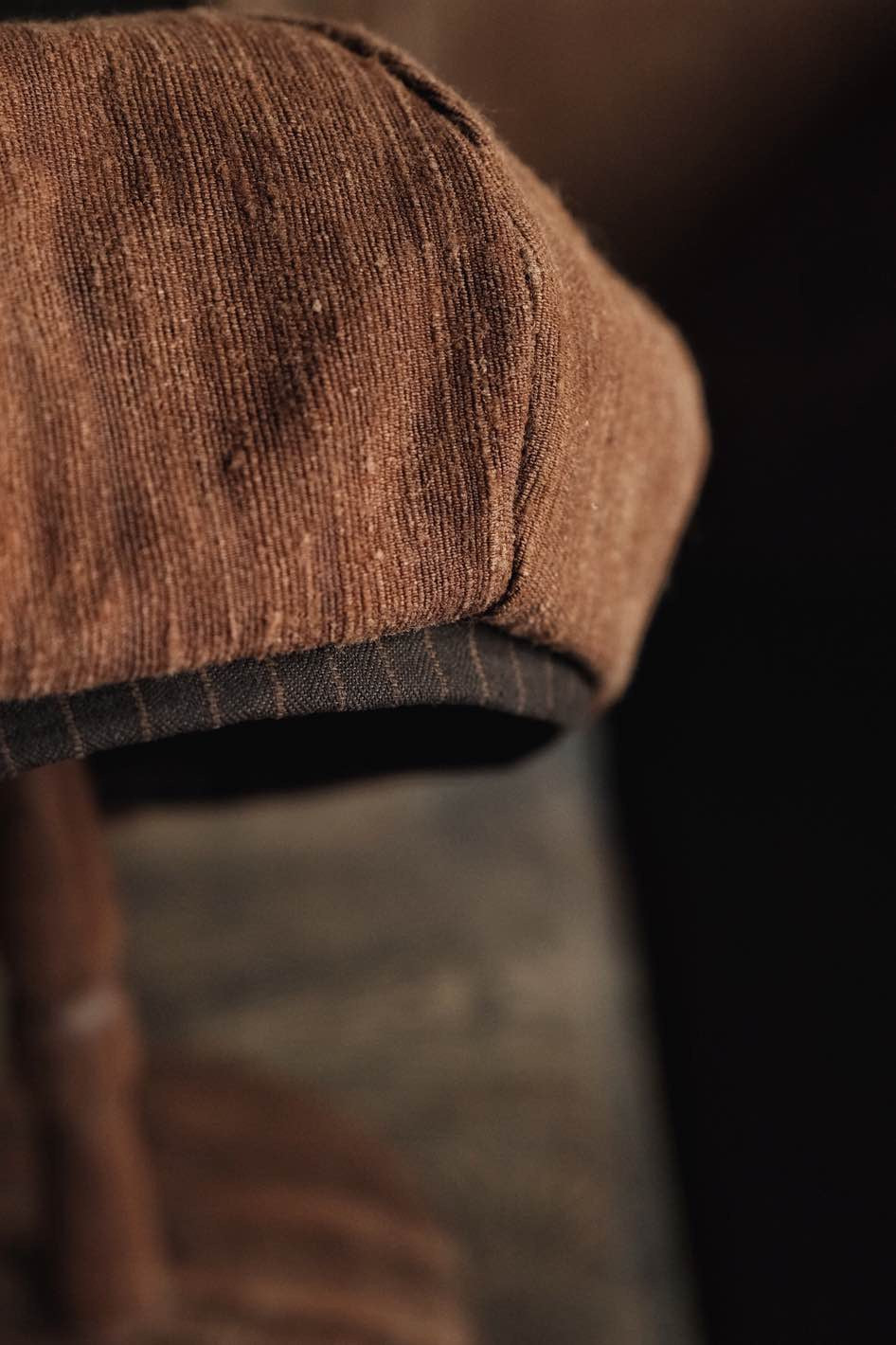 帽沿配上直條鐵媒棉布作間距色,帽內可調節帽圍大小