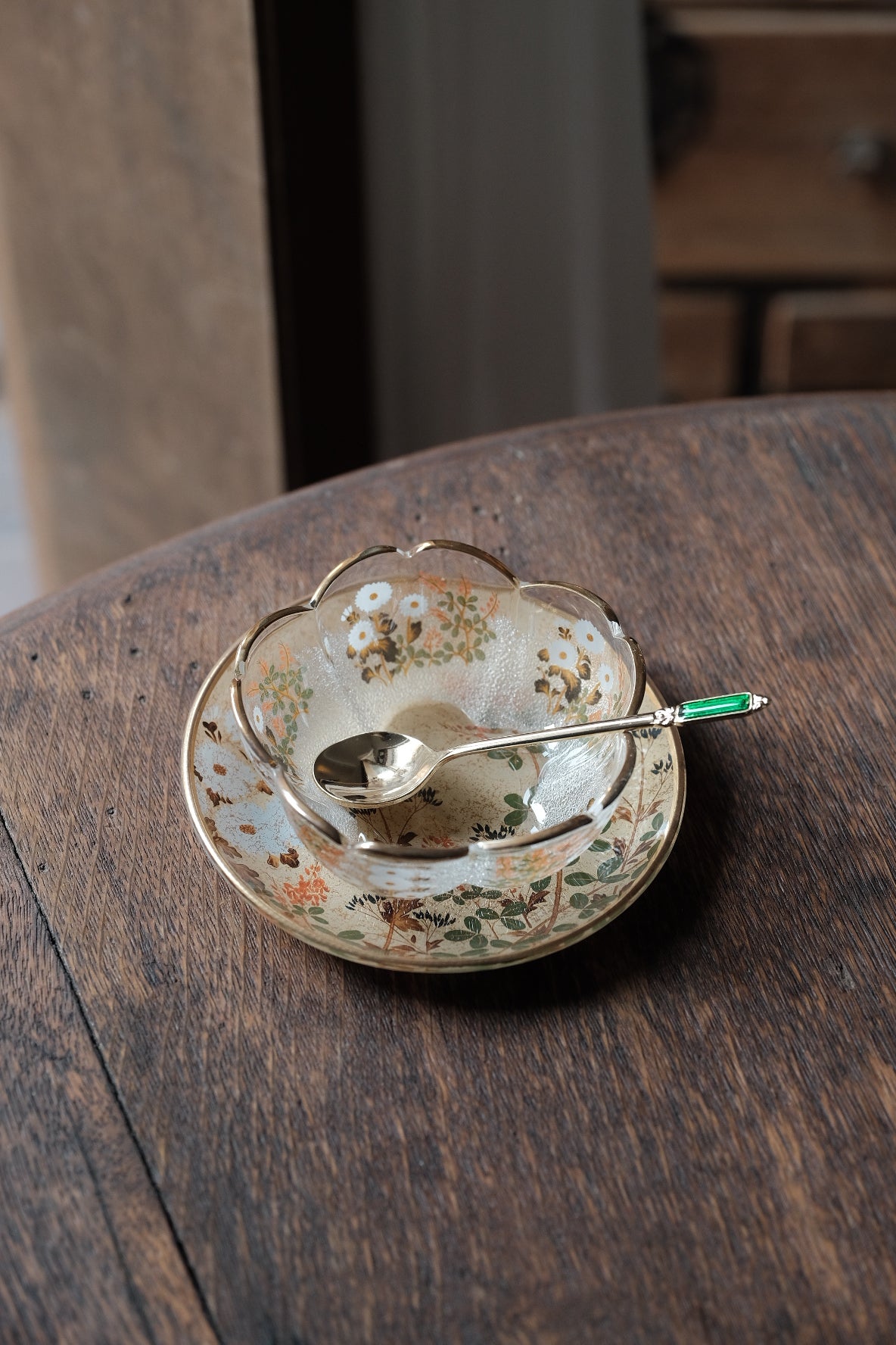 日本製•昭和描金光琳繪四季樹花缽連碟連小匙