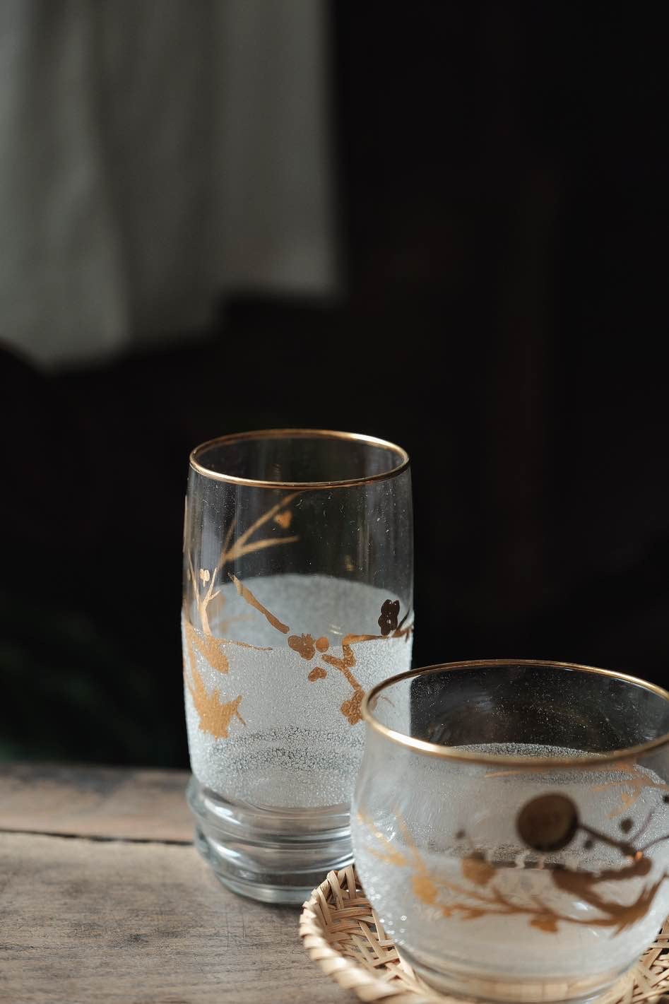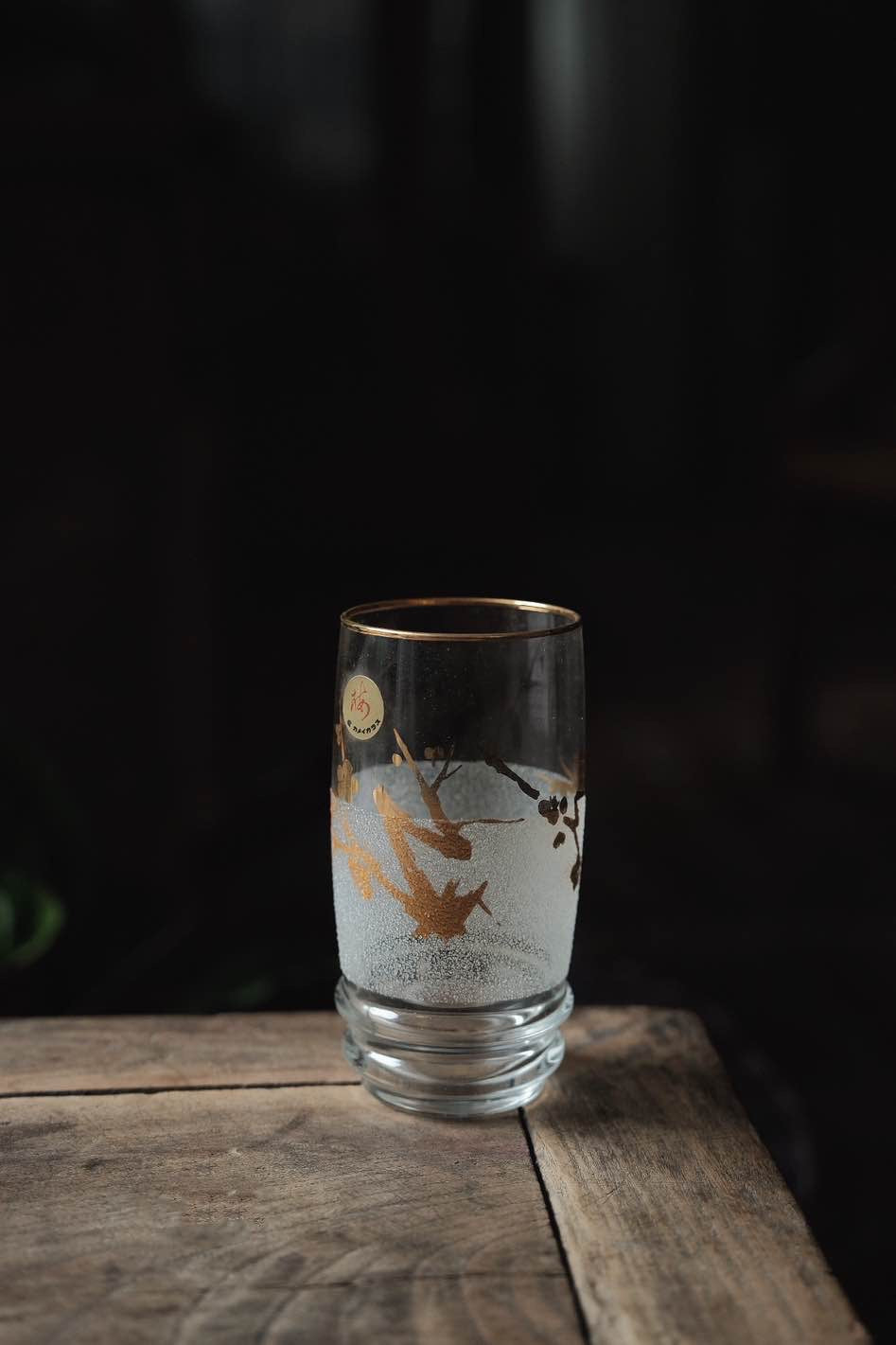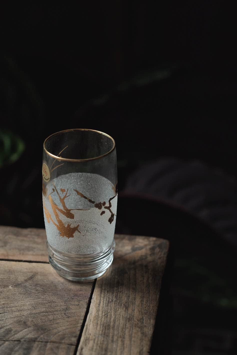 描金玻璃杯玻璃碟透光有質感,梅花圖繪,雙層圓底,杯沿描金,可用作果汁酒杯或啤酒杯使用