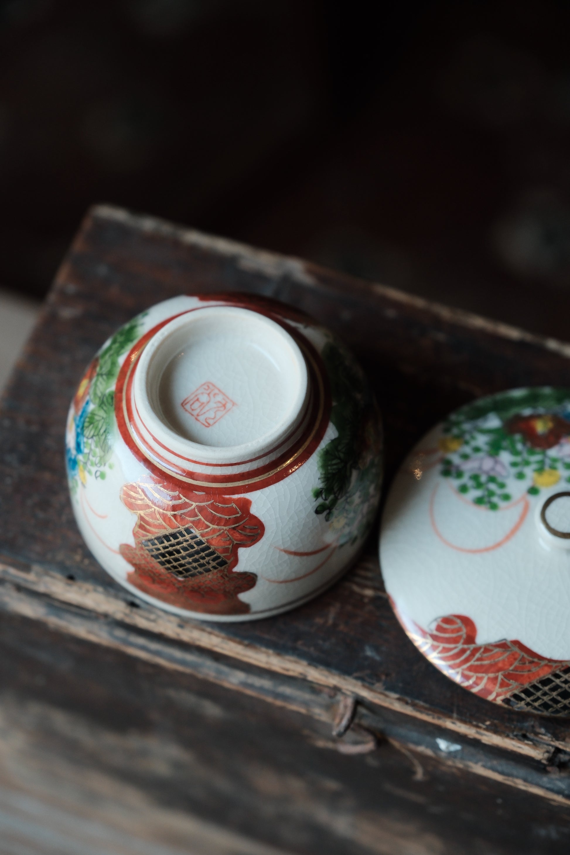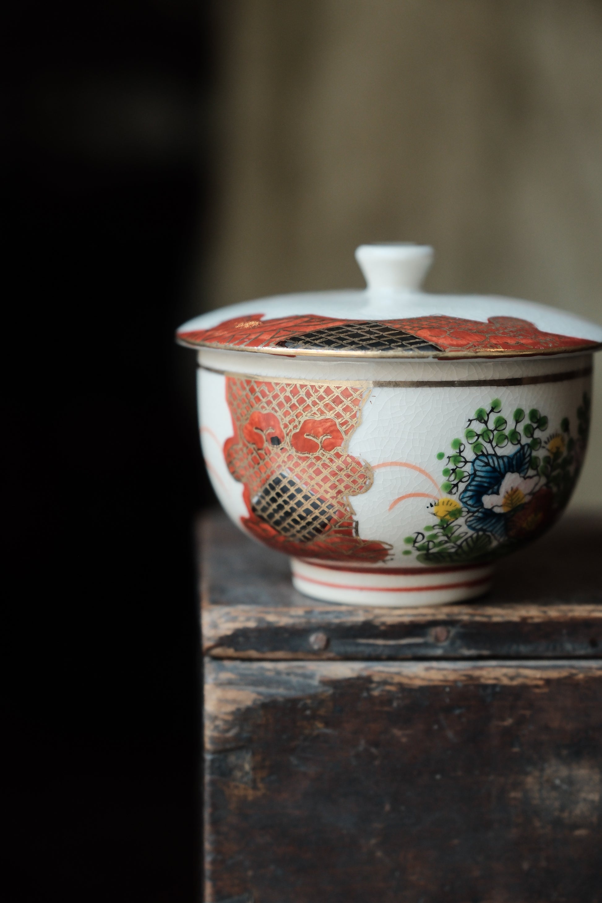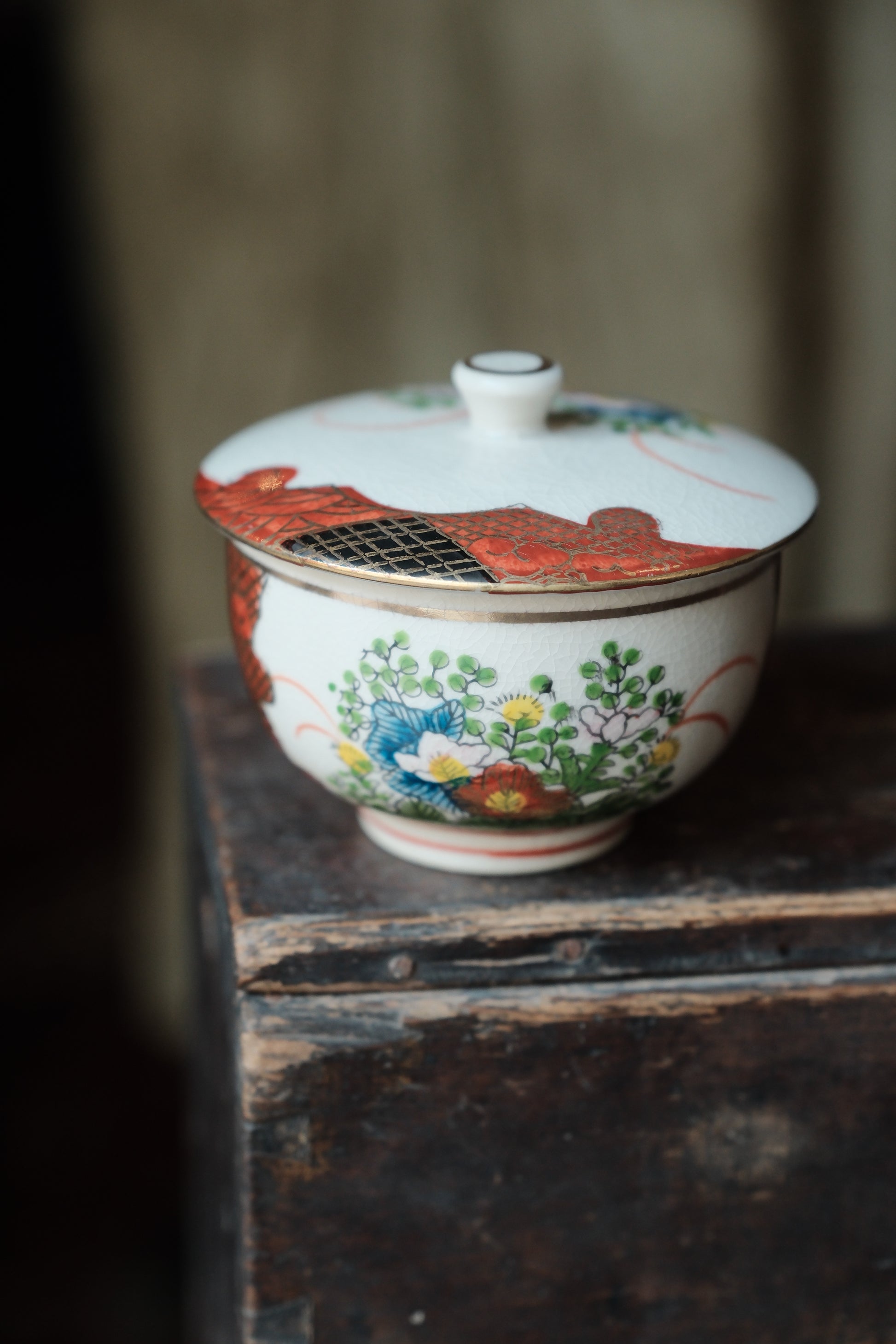 ($130)日本製九谷燒竹林山水描金蓋杯(160ml)