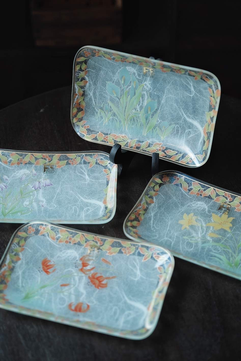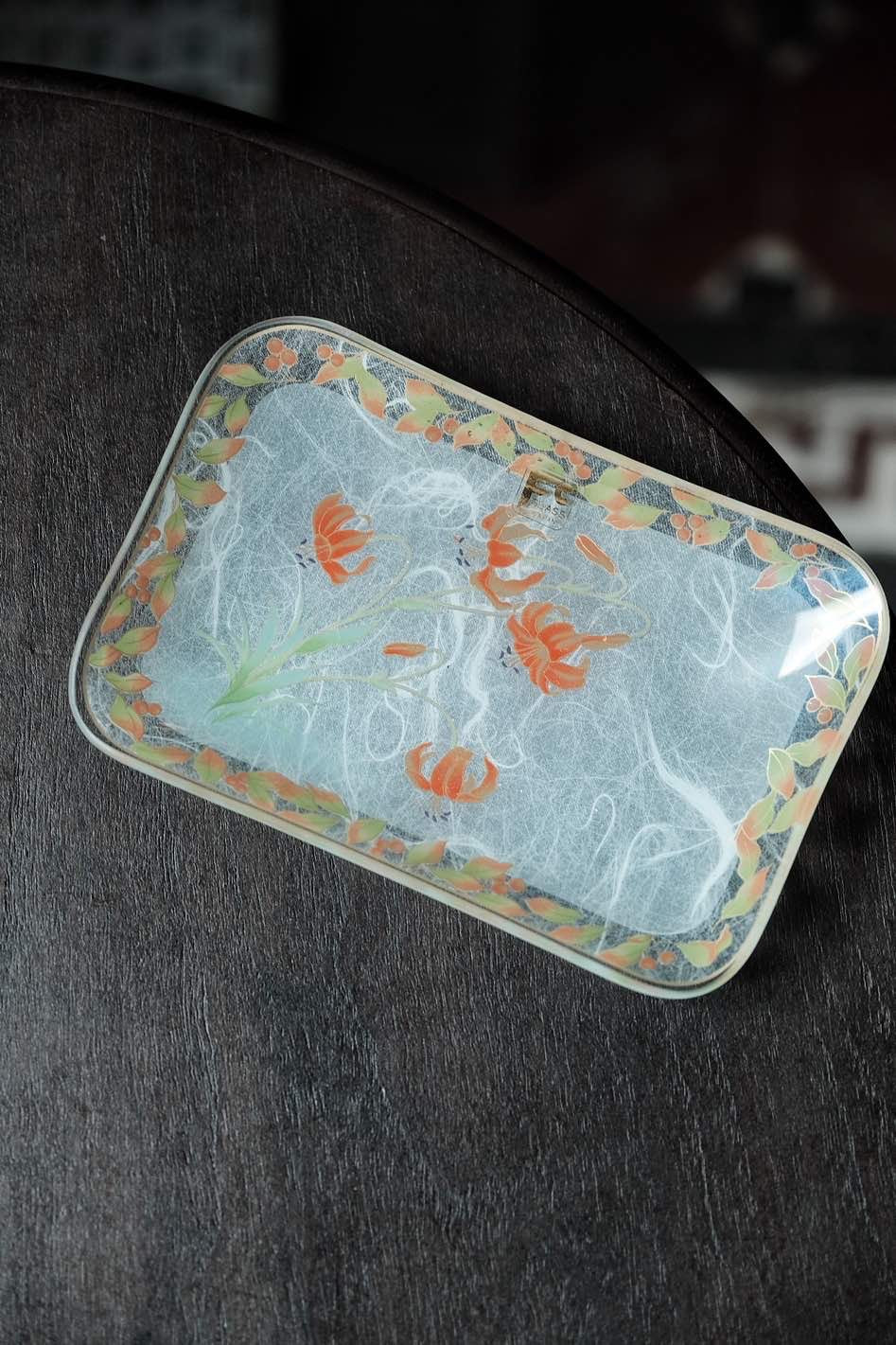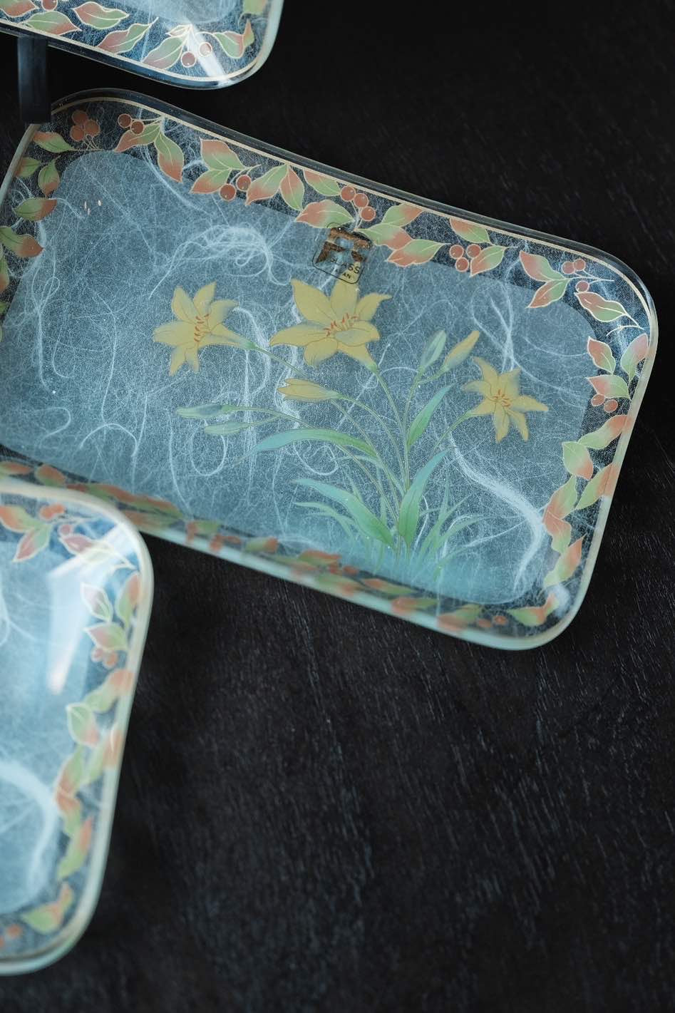 ($190)日本製•光琳繪四季花卉玻璃碟長型花邊描金