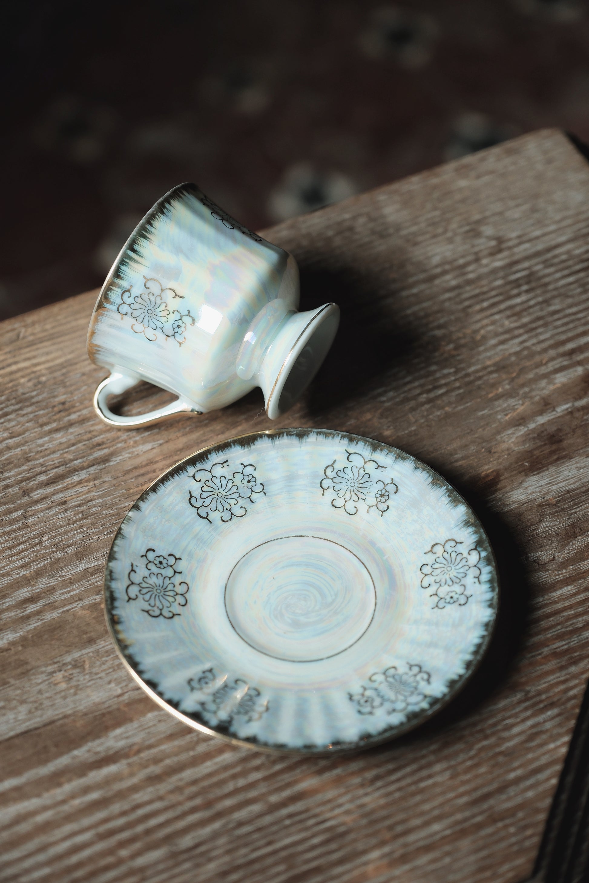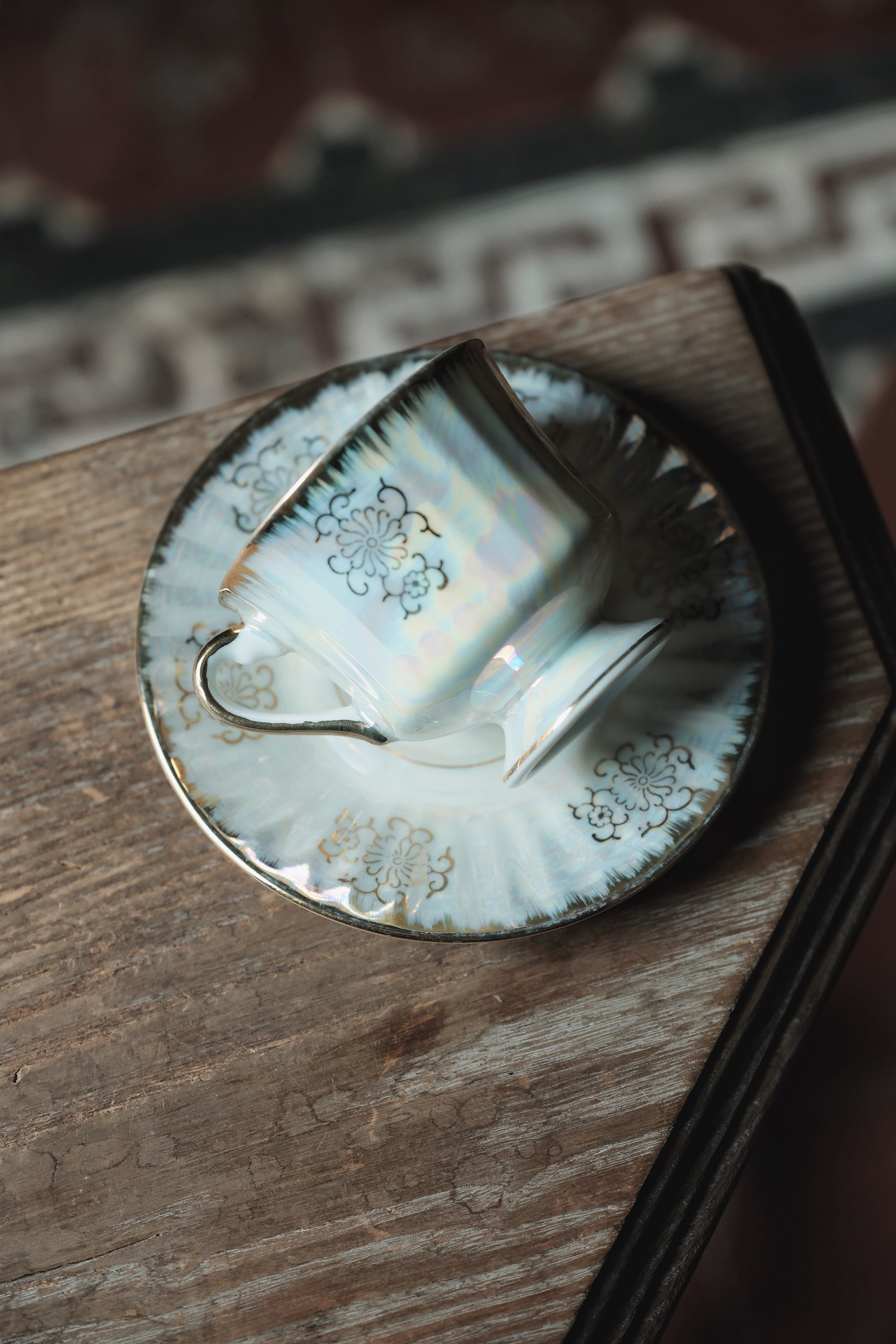 咖啡杯把手套有精緻描金,浮雕圖紋立體