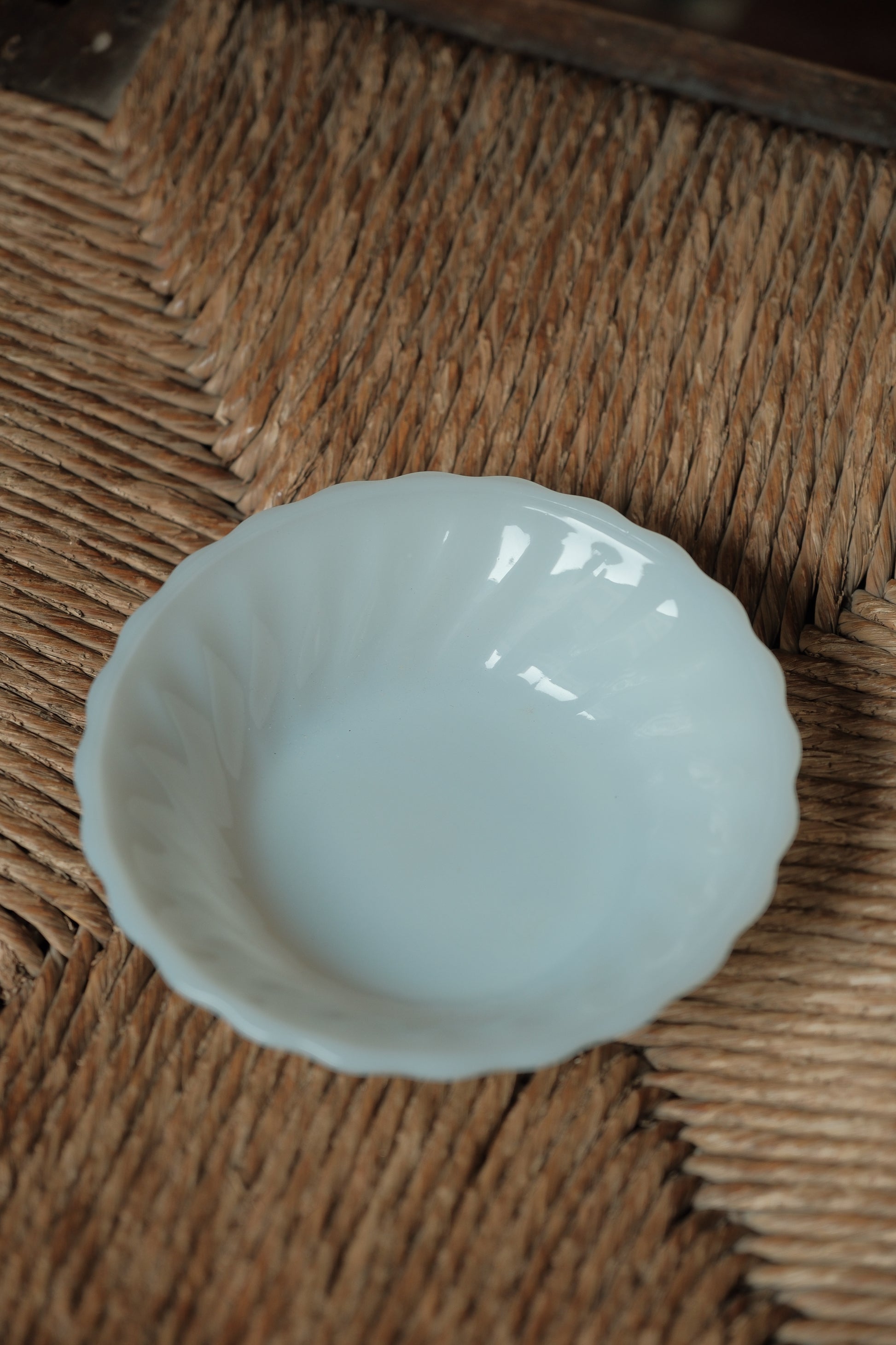 中古奶白玻璃深盤
