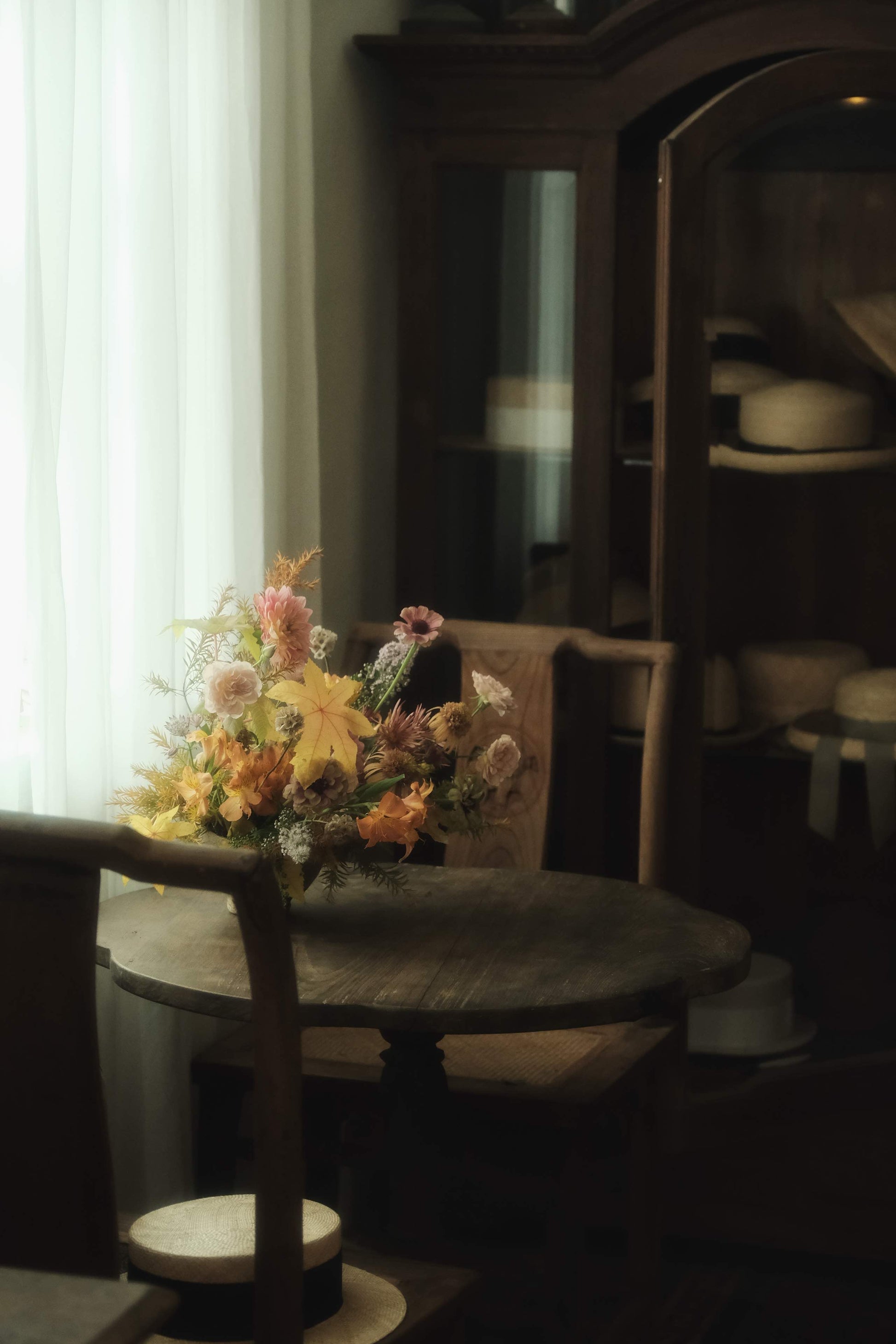 應Onka之邀,我們將於十月前往香港,在Onka美麗的空間舉辦為期兩天的花藝工作坊。課程圍繞「受自然啟發」主題展開,島上花事將呈現兩堂經典單品課程:「以自然為師 端景桌花」與「受自然啟發 婚禮捧花」。其中,捧花課程將結合Onka特別染製的莨染絲帶,透過花藝與染織工藝相連結,期待為大家帶來具啟發性的花藝體驗。