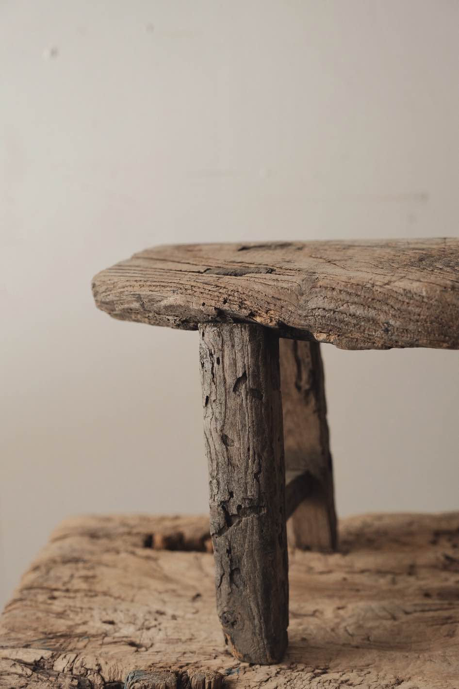 風化木質自然,侘寂古樸,非常適合空間配置,也可當作層架食物展示等用途,整體鞏固有重量。