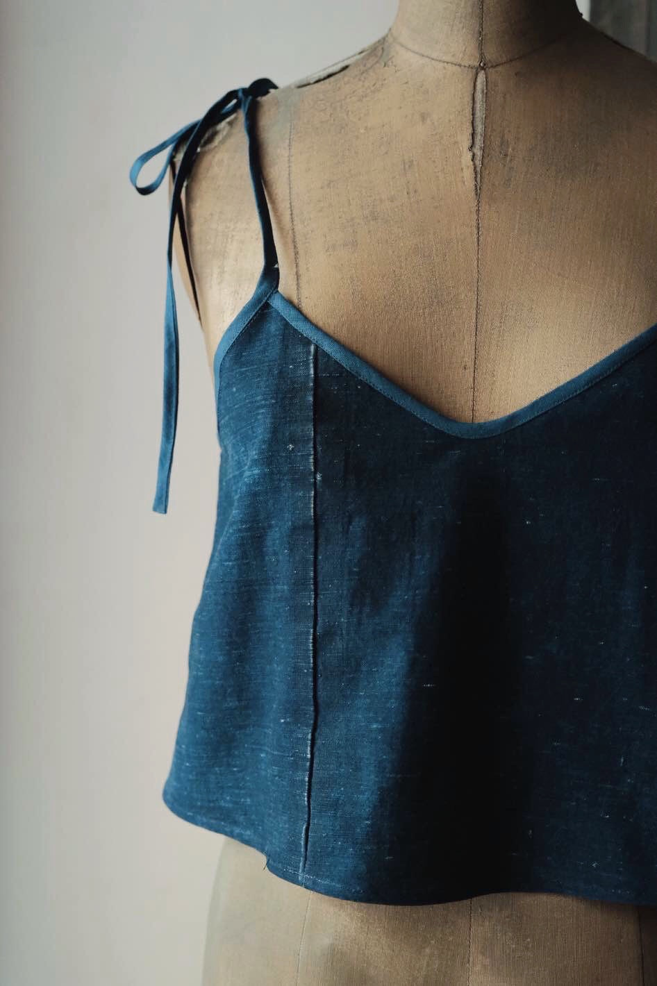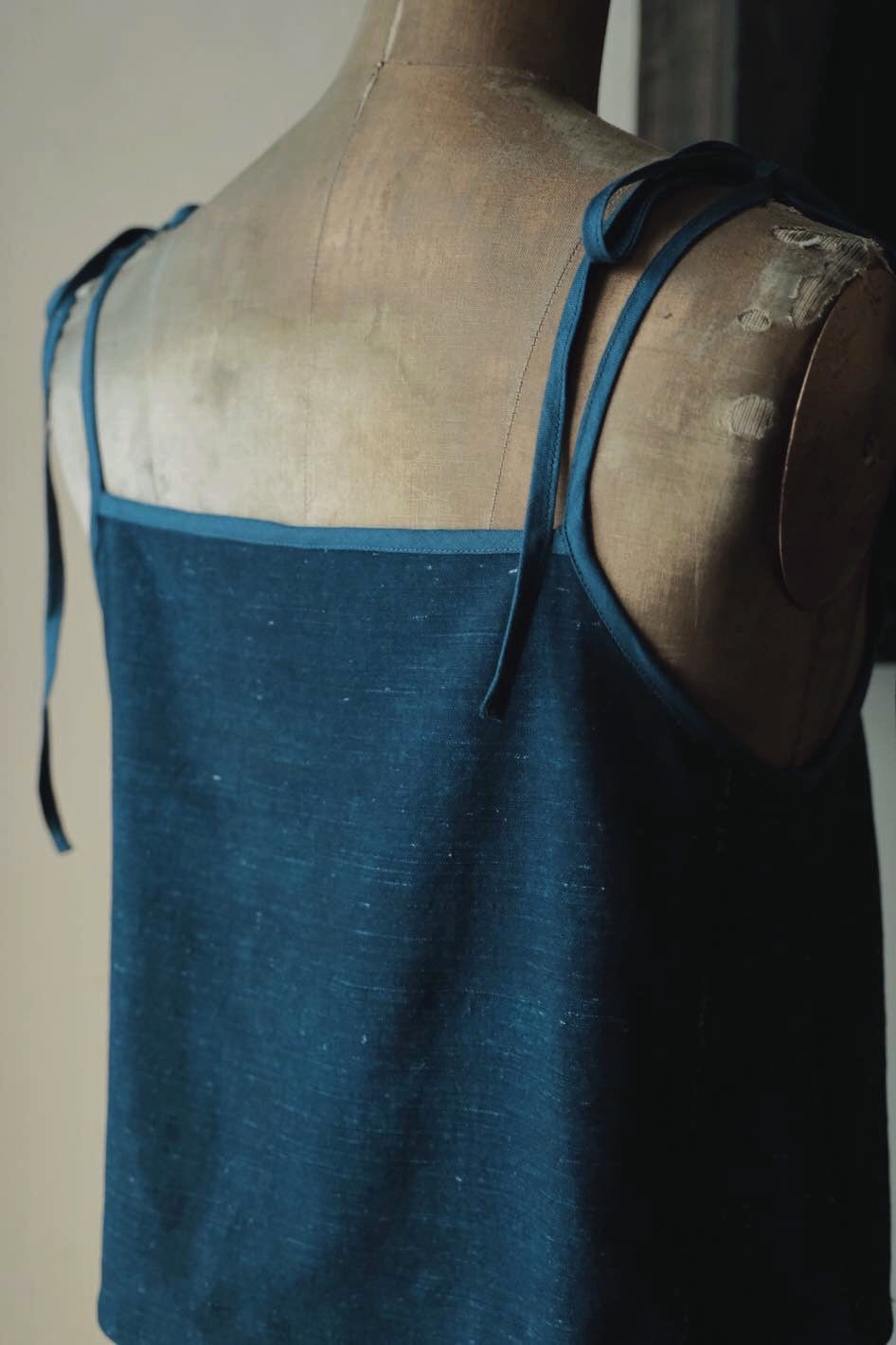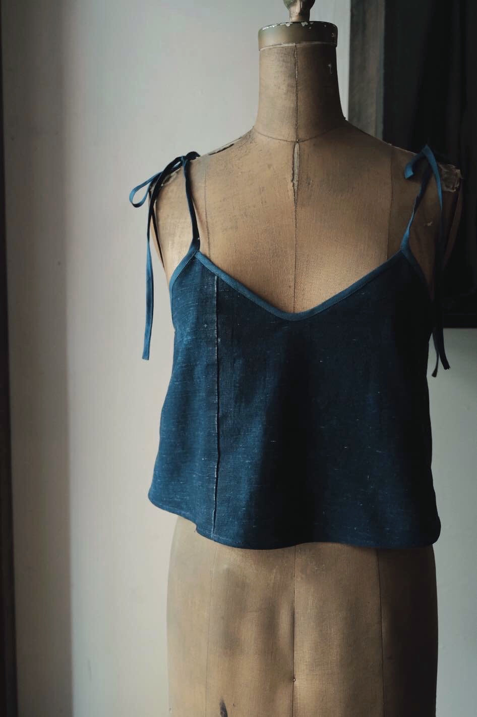 衣身用上手織布,包邊布為亞麻藍染