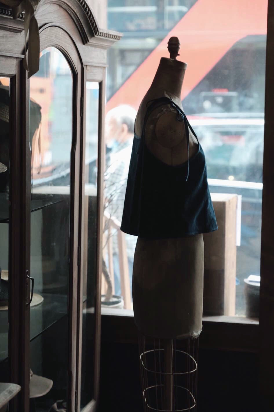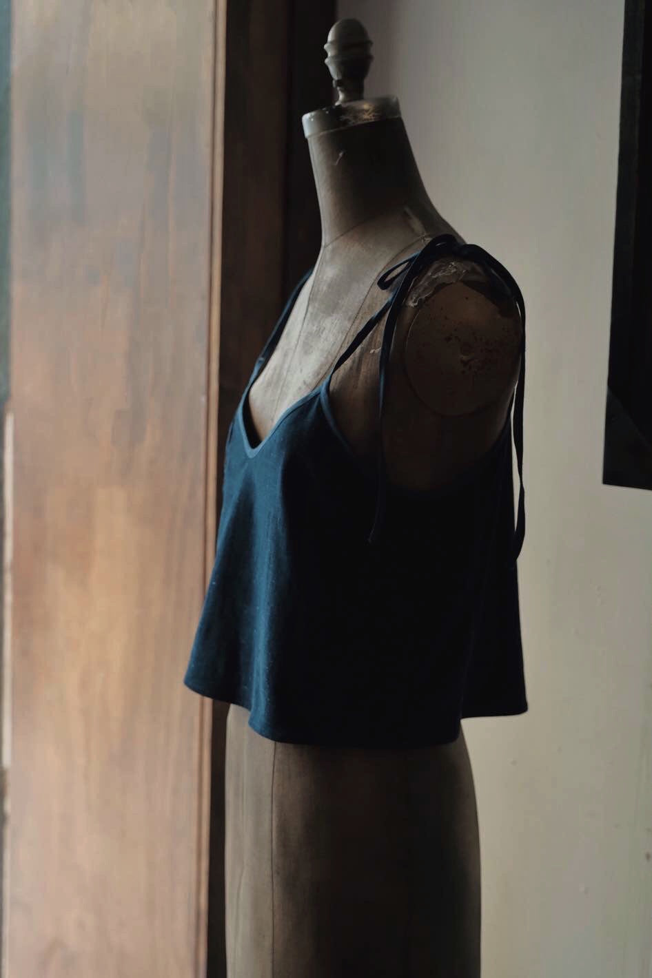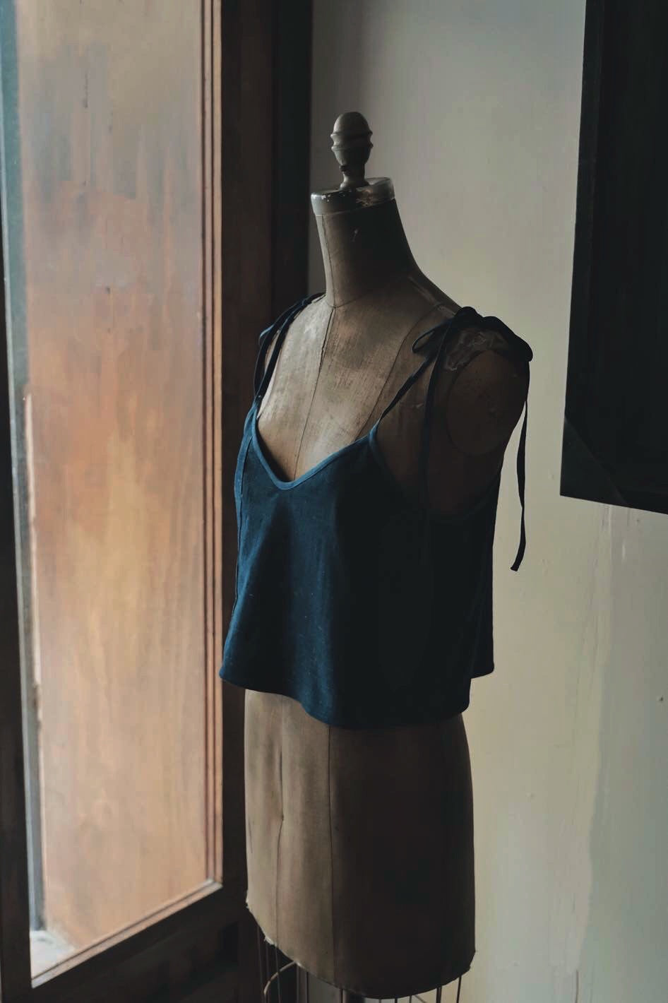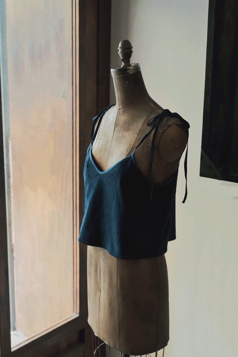衣身用上手織布,包邊布為亞麻藍染